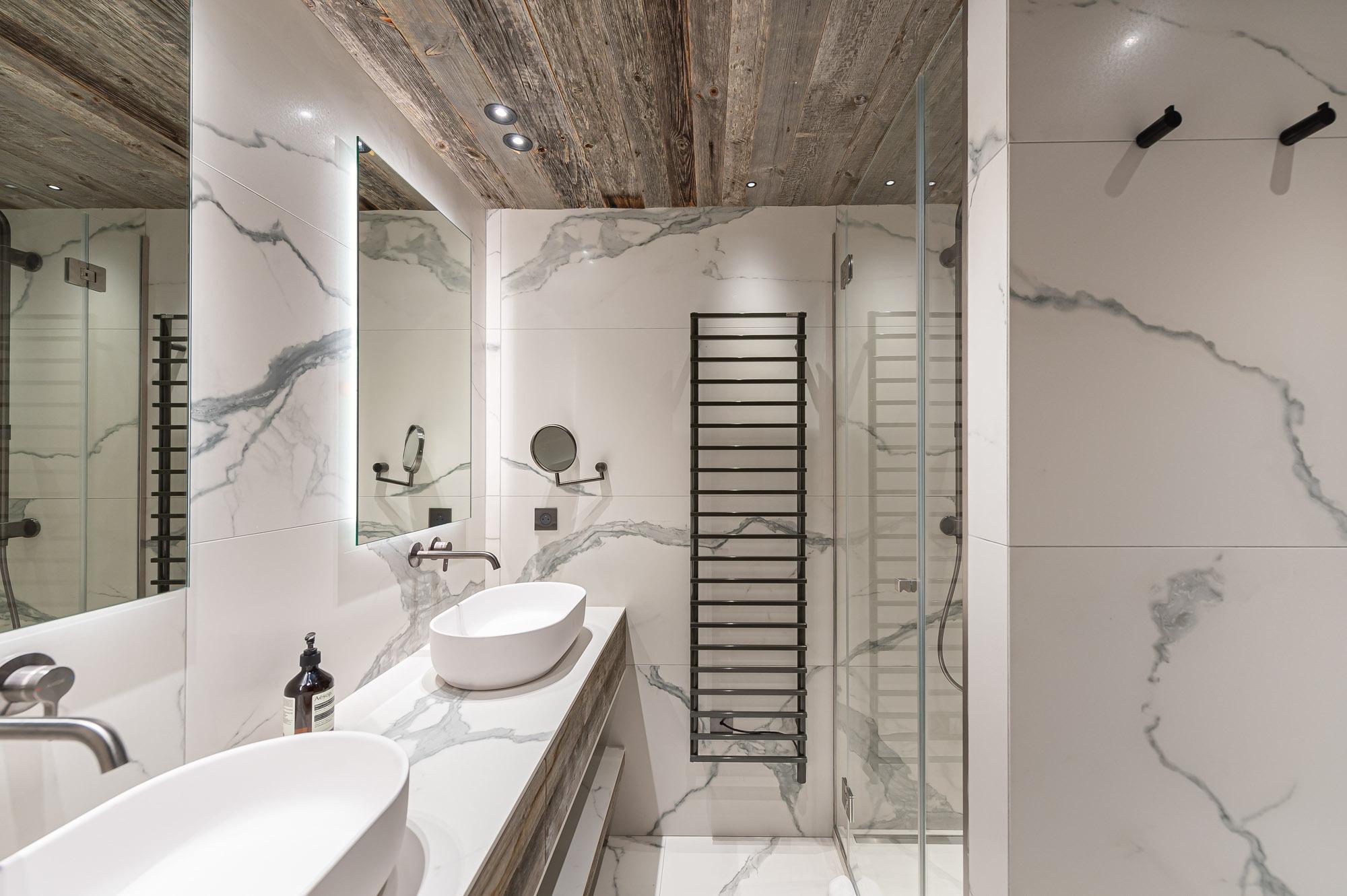 Ce chalet de 320 m² s’étend sur quatre niveaux, desservis par un ascenseur privatif. Il comprend quatre chambres doubles, une chambre dortoir et une somptueuse suite de maître, pour accueillir confortablement dix adultes et quatre enfants. Les matériaux nobles et les teintes naturelles rappellent la montagne tout en offrant un confort digne des plus beaux hôtels de luxe.