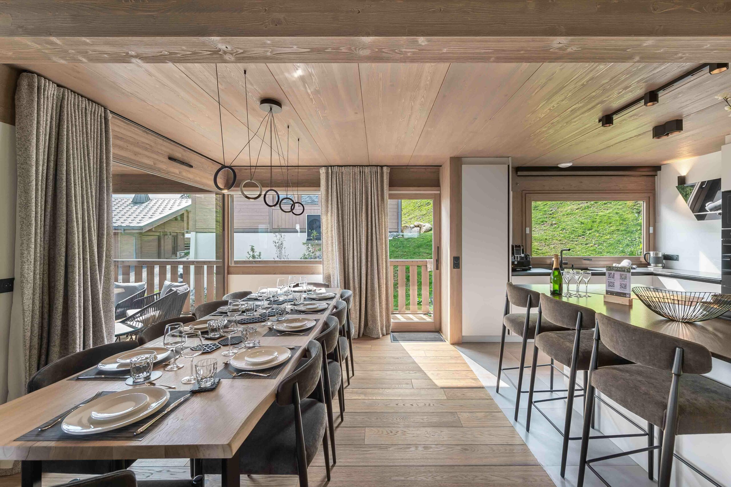 Les chambres sont équipées de draps et les salles de bains sont modernes et fonctionnelles, offrant une atmosphère chaleureuse et confortable. Le chalet dispose d’une cuisine entièrement équipée où vous pourrez préparer de délicieux repas montagnards, ainsi que d’un coin cuisine avec un lave-vaisselle pour une plus grande praticité.