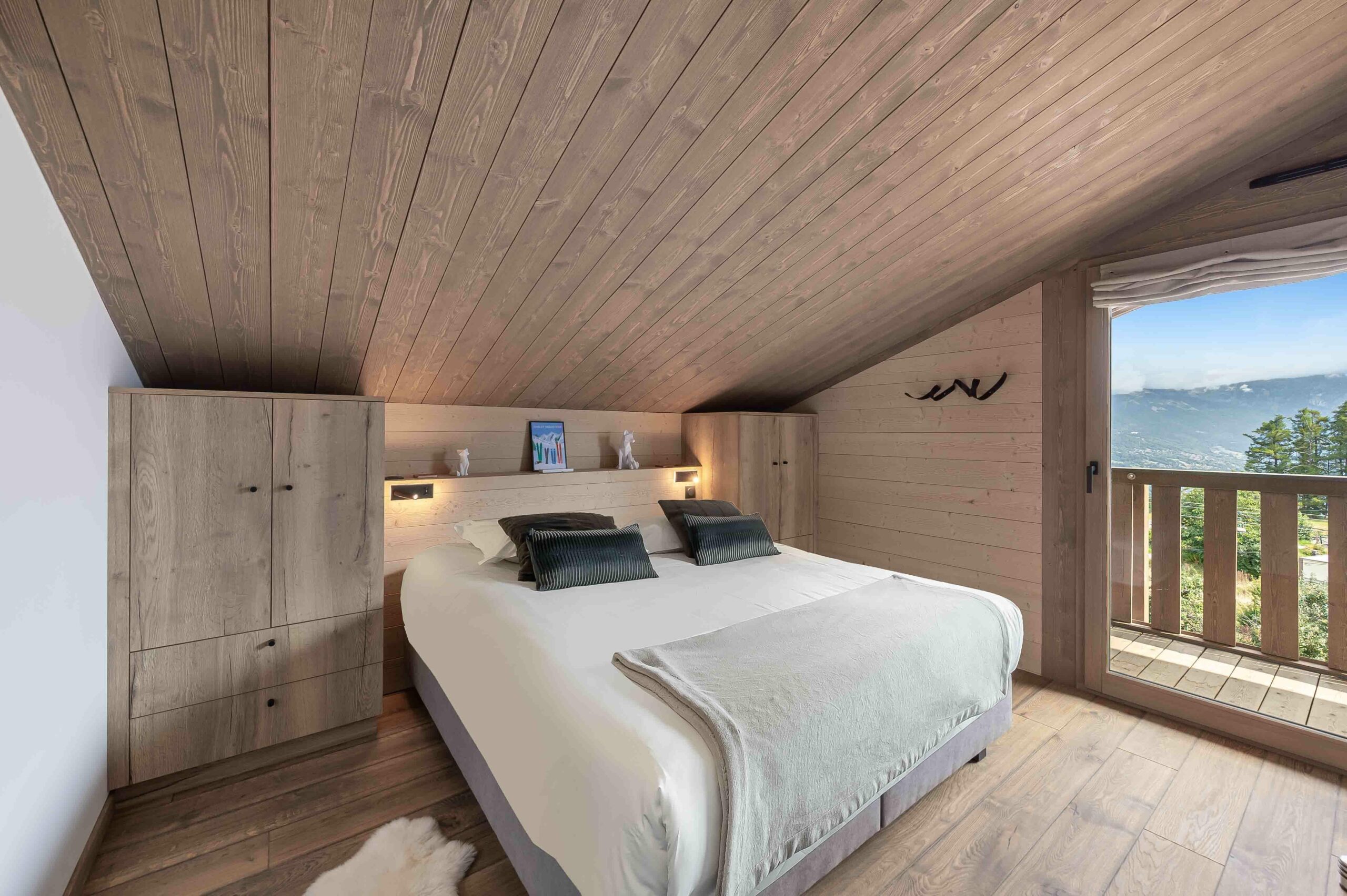 Un magnifique chalet en bois avec une vue panoramique imprenable sur le Mont-Blanc et les montagnes environnantes.