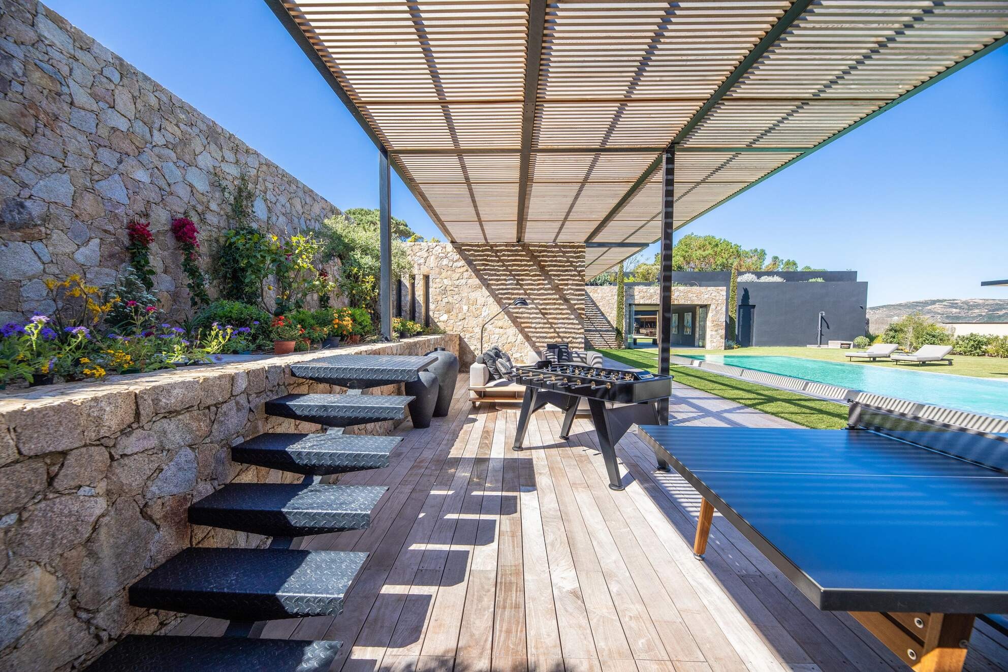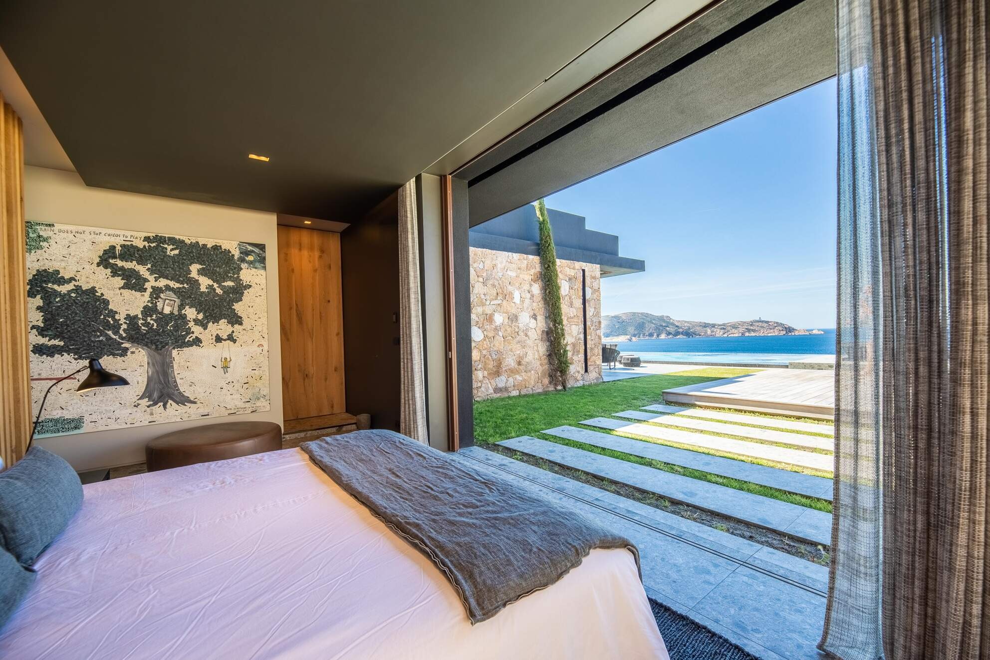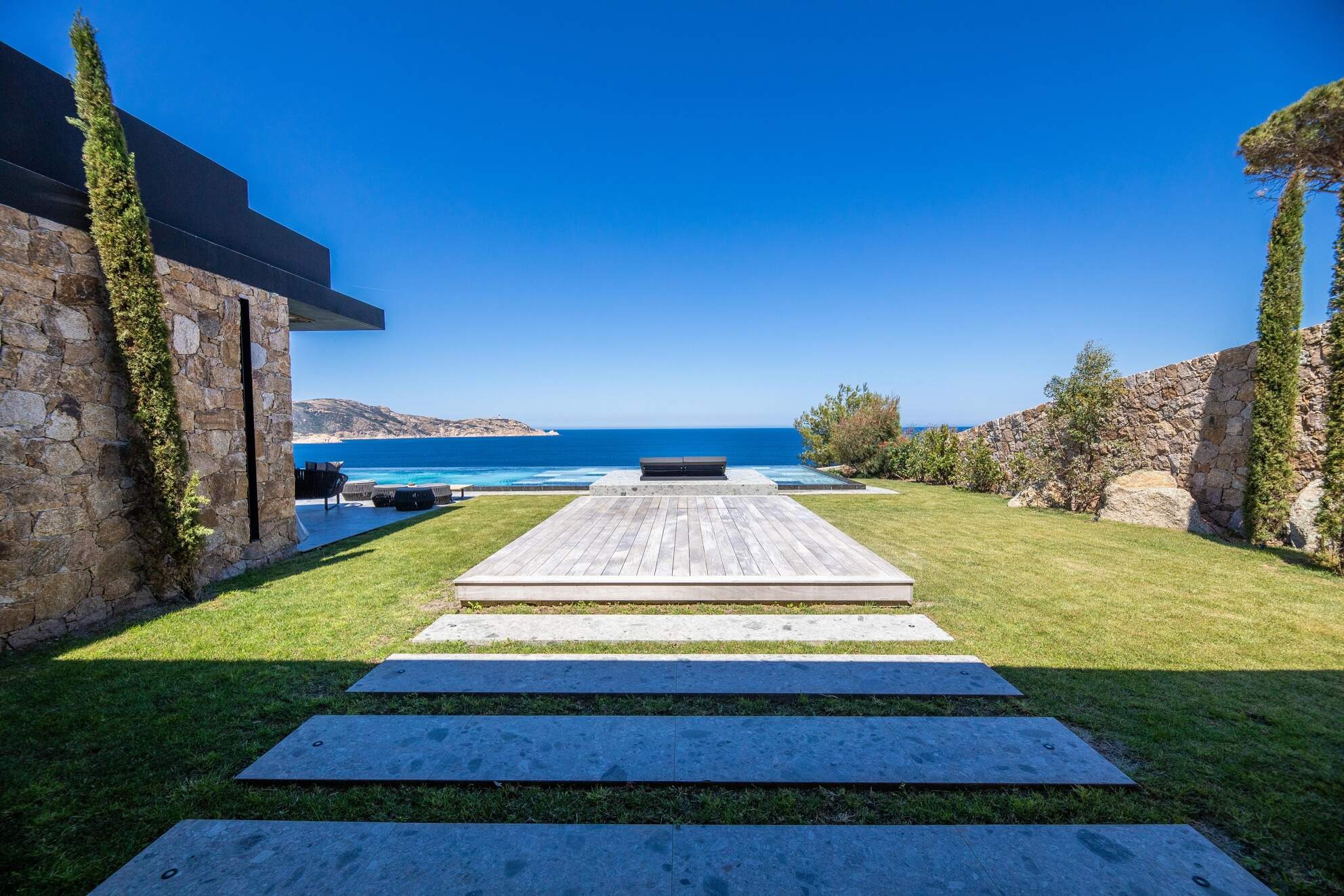 Les vacanciers pourront profiter d’une belle terrasse ensoleillée, d’un grand jardin bucolique et d’une piscine chauffée avec vue sur la mer.