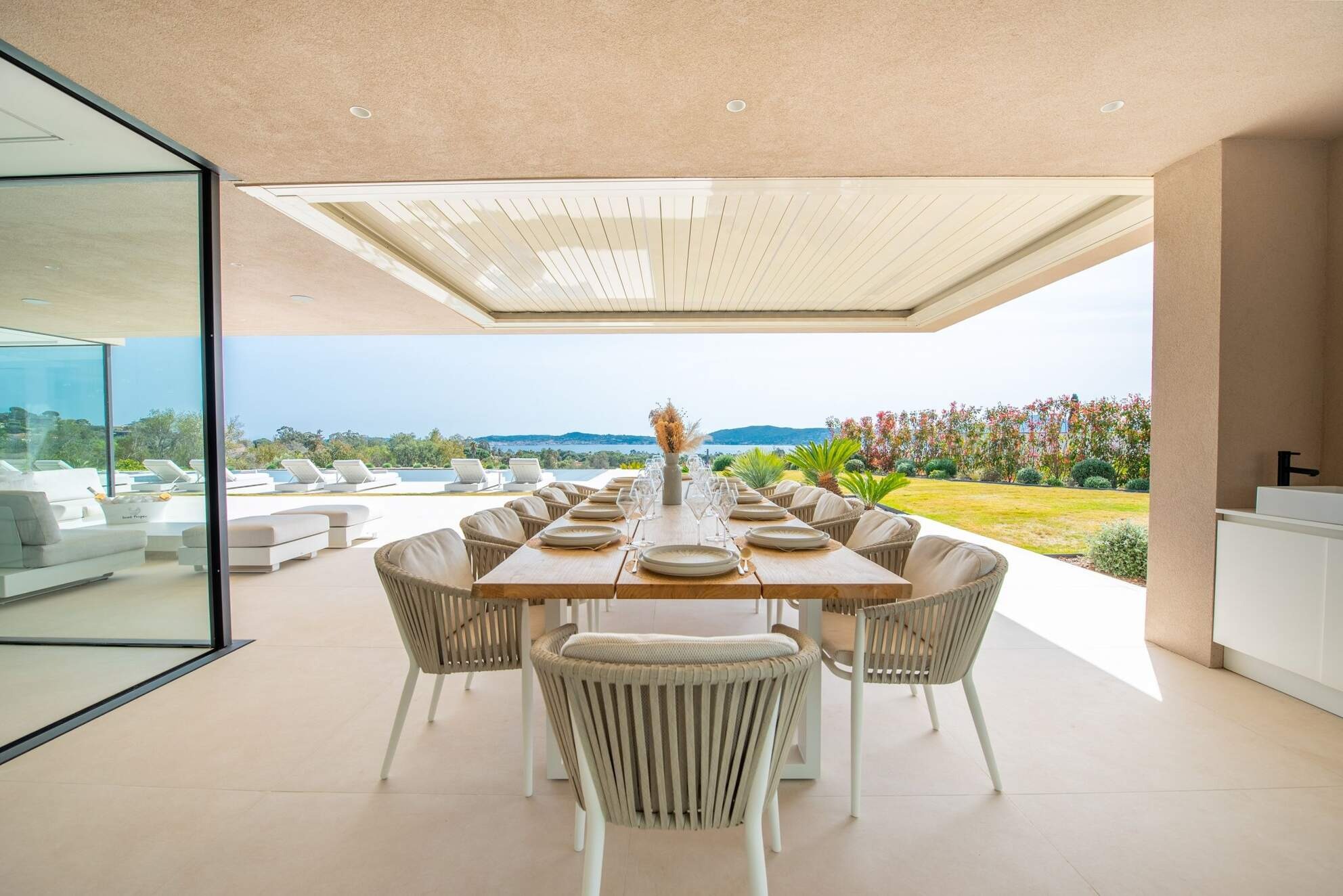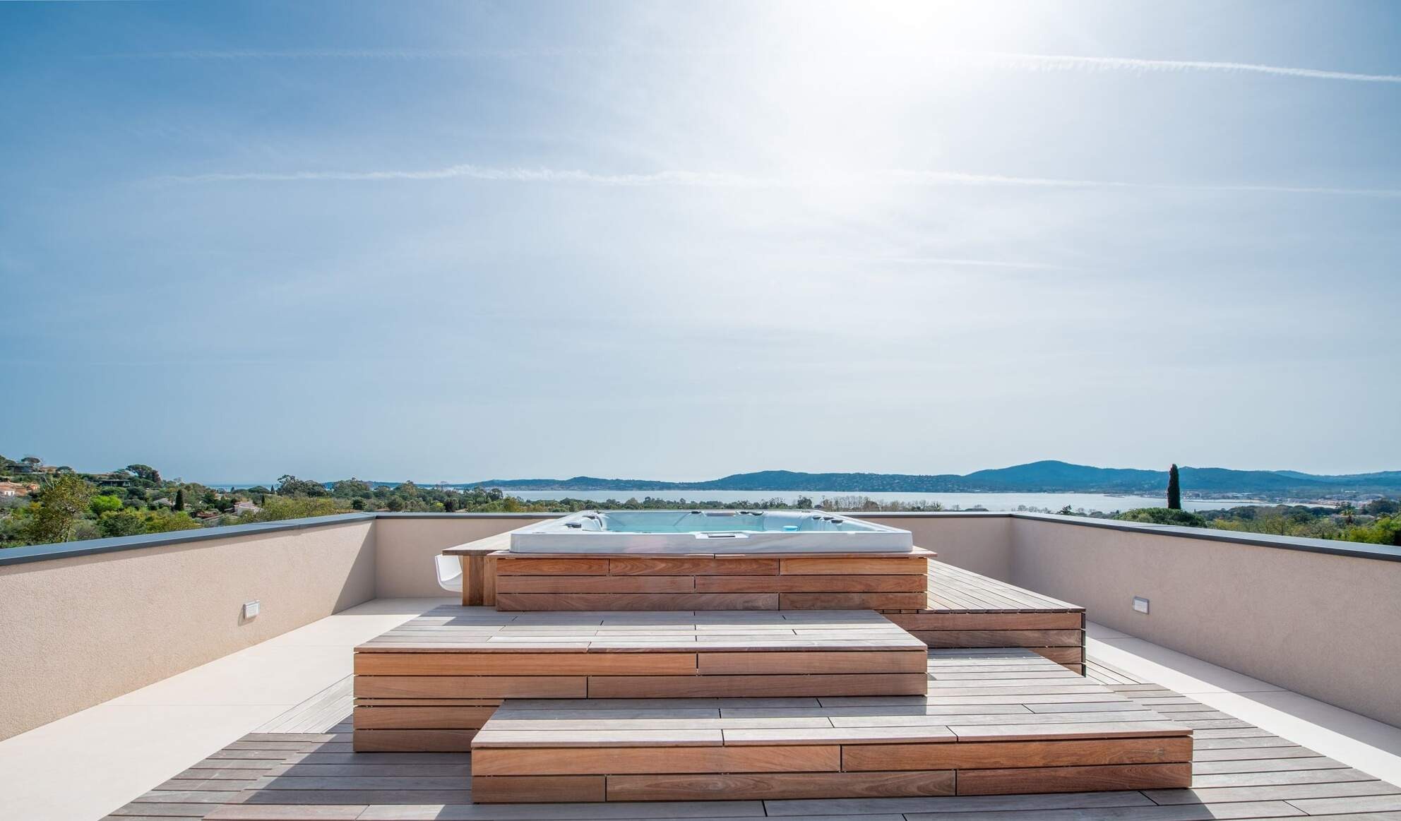 Avec sa vue panoramique, sa piscine chauffée, son Jacuzzi, son accès direct à la mer et ses prestations haut de gamme, cette villa de luxe à louer à Grimaud est le lieu idéal pour des vacances de rêve sur la côte d’azur.