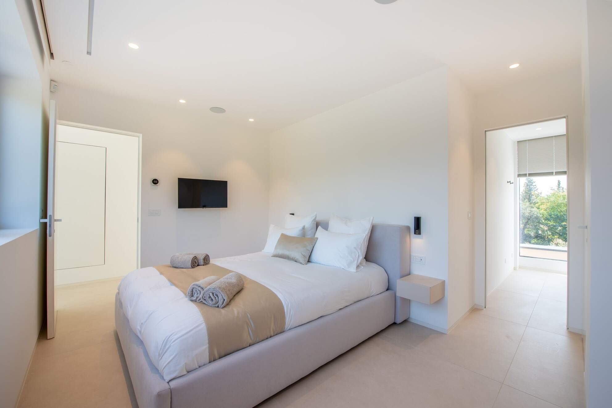 La suite parentale, située au rez-de-jardin, donne accès à une terrasse privative avec Jacuzzi.