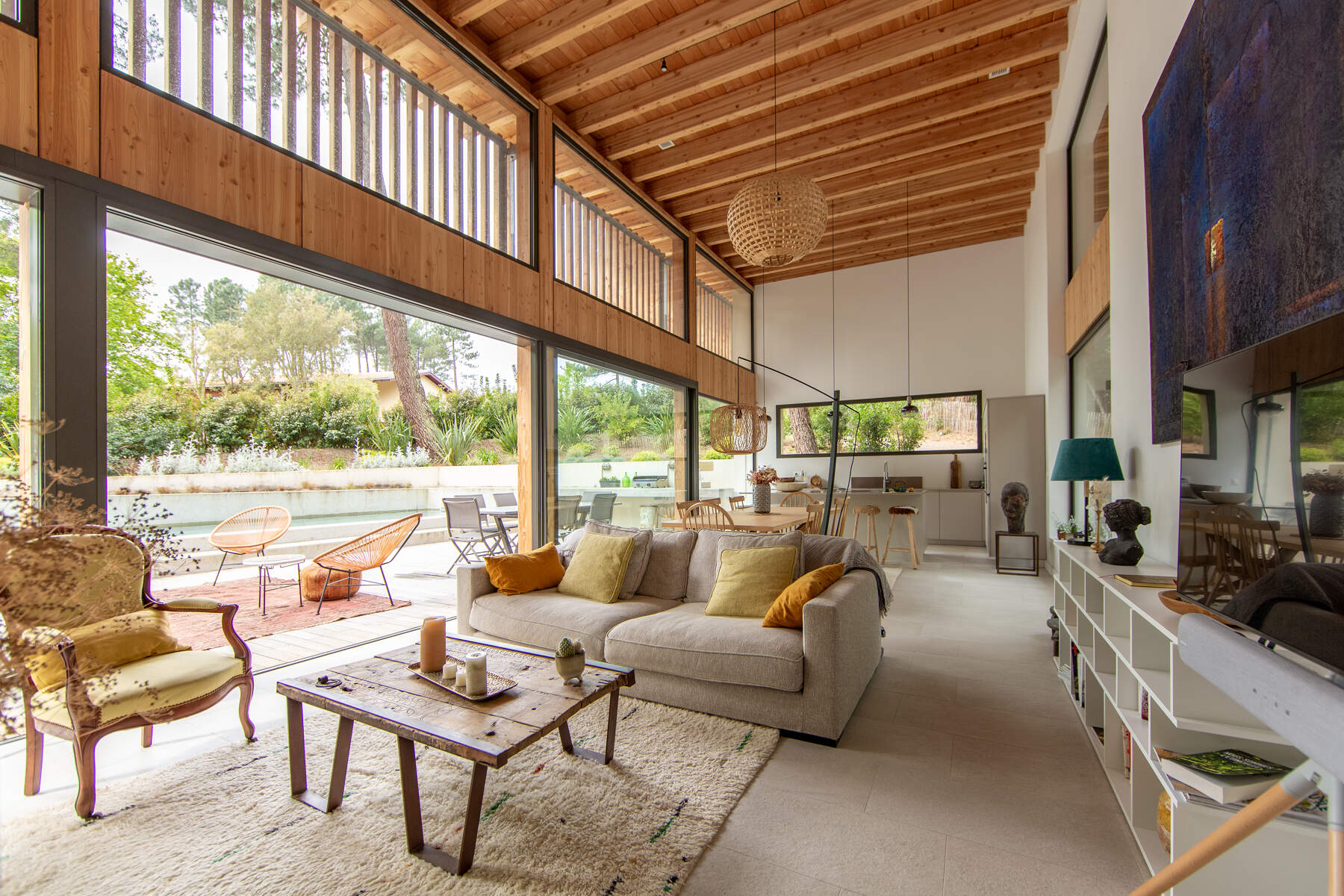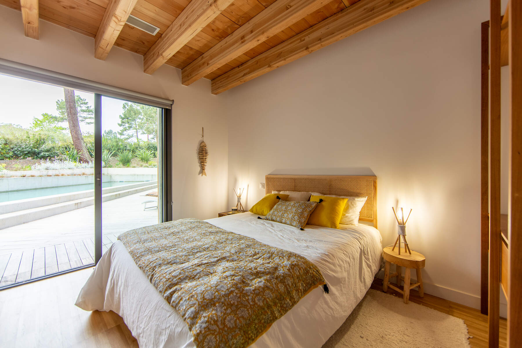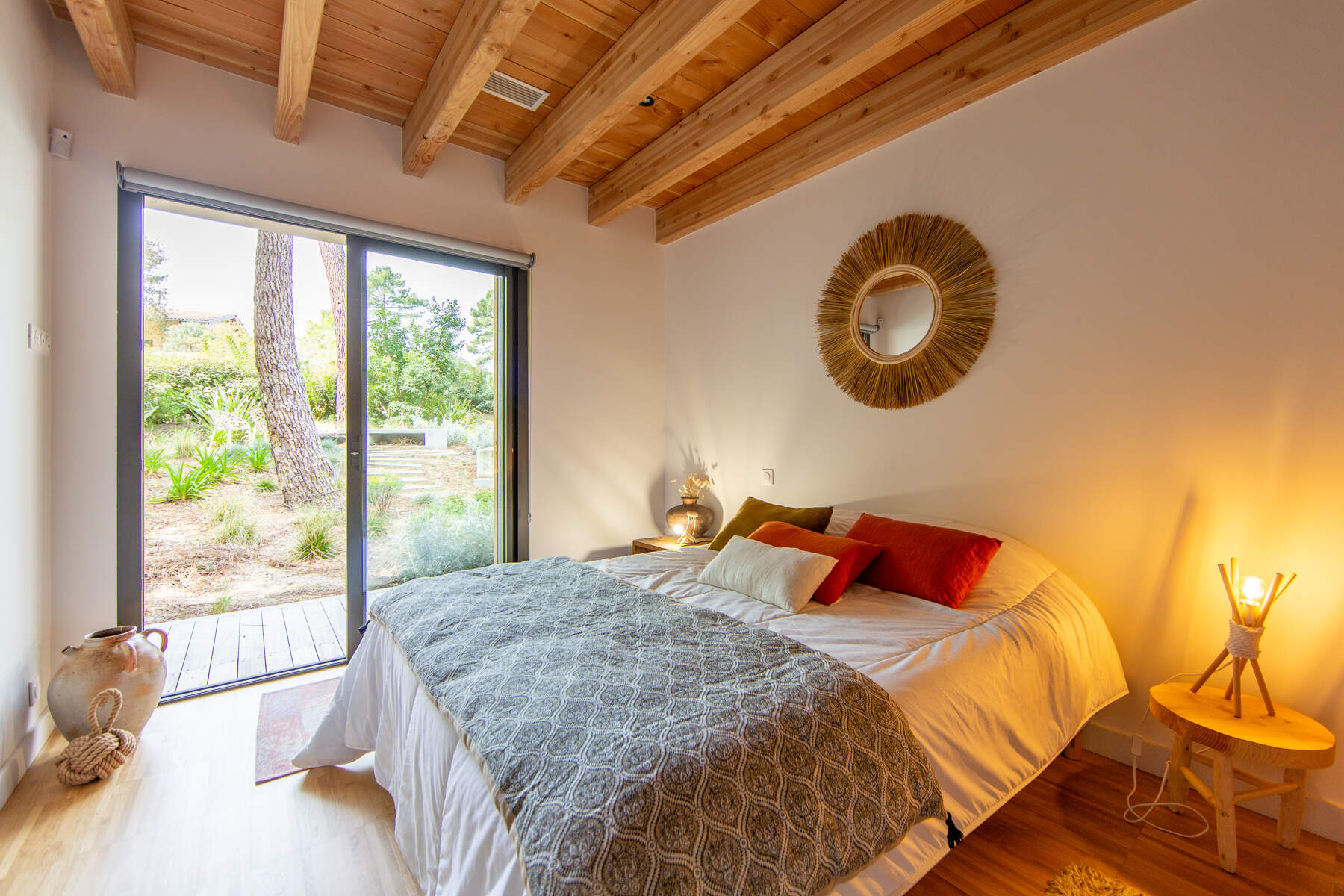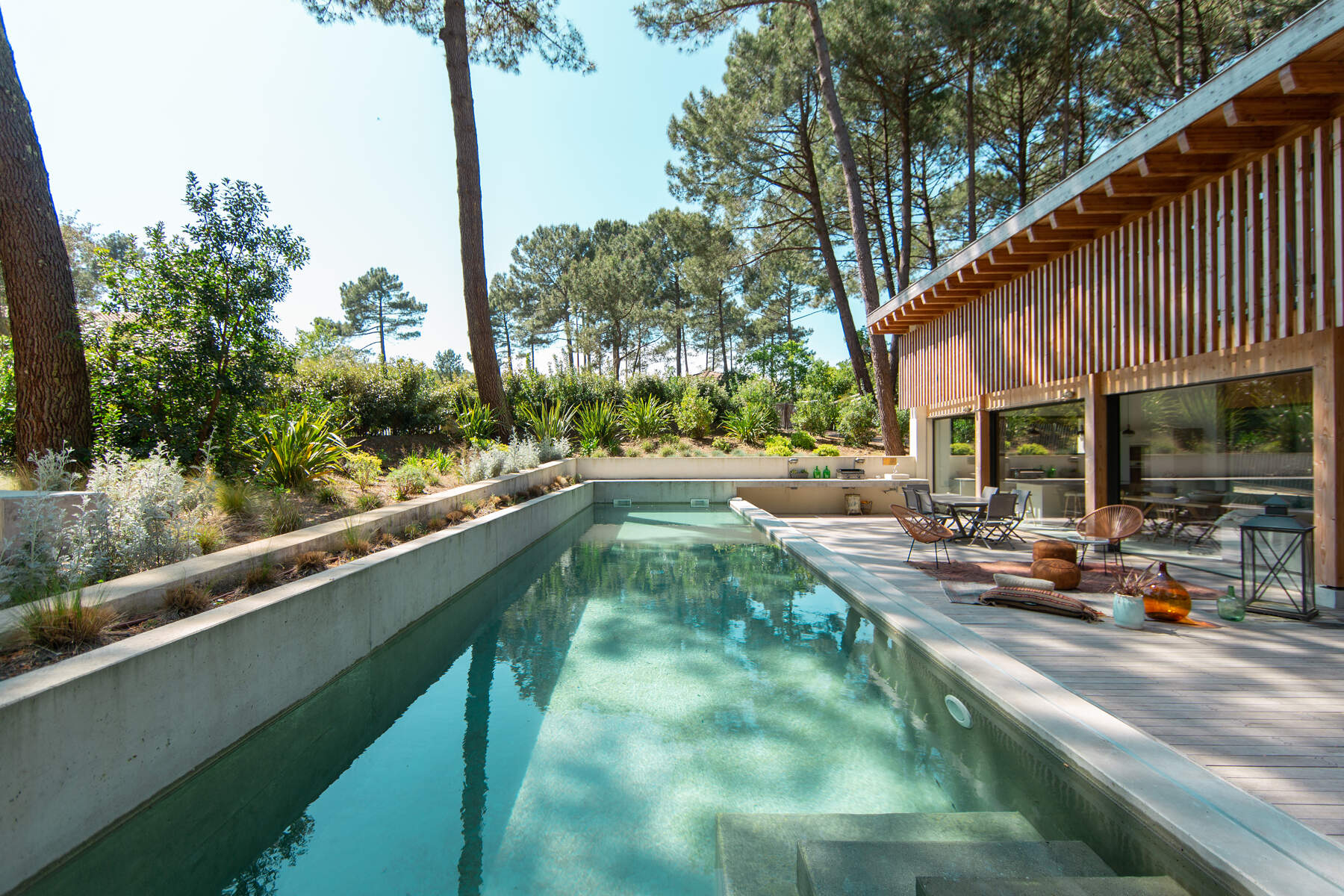 Cette magnifique villa cachée au cœur d’une nature environnante. La décoration sobre mais chic avec des matériaux naturels cous invite au calme. Vos vacances dans un cadre boisé bercé par la douce musique du feuillage dans les arbres. La piscine chauffée juste devant la terrasse est parfaite pour vos baignades et sécurisée par un volet pour les enfants. De plus, toutes les chambres ont un accès jardin pour le confort des vacanciers.
