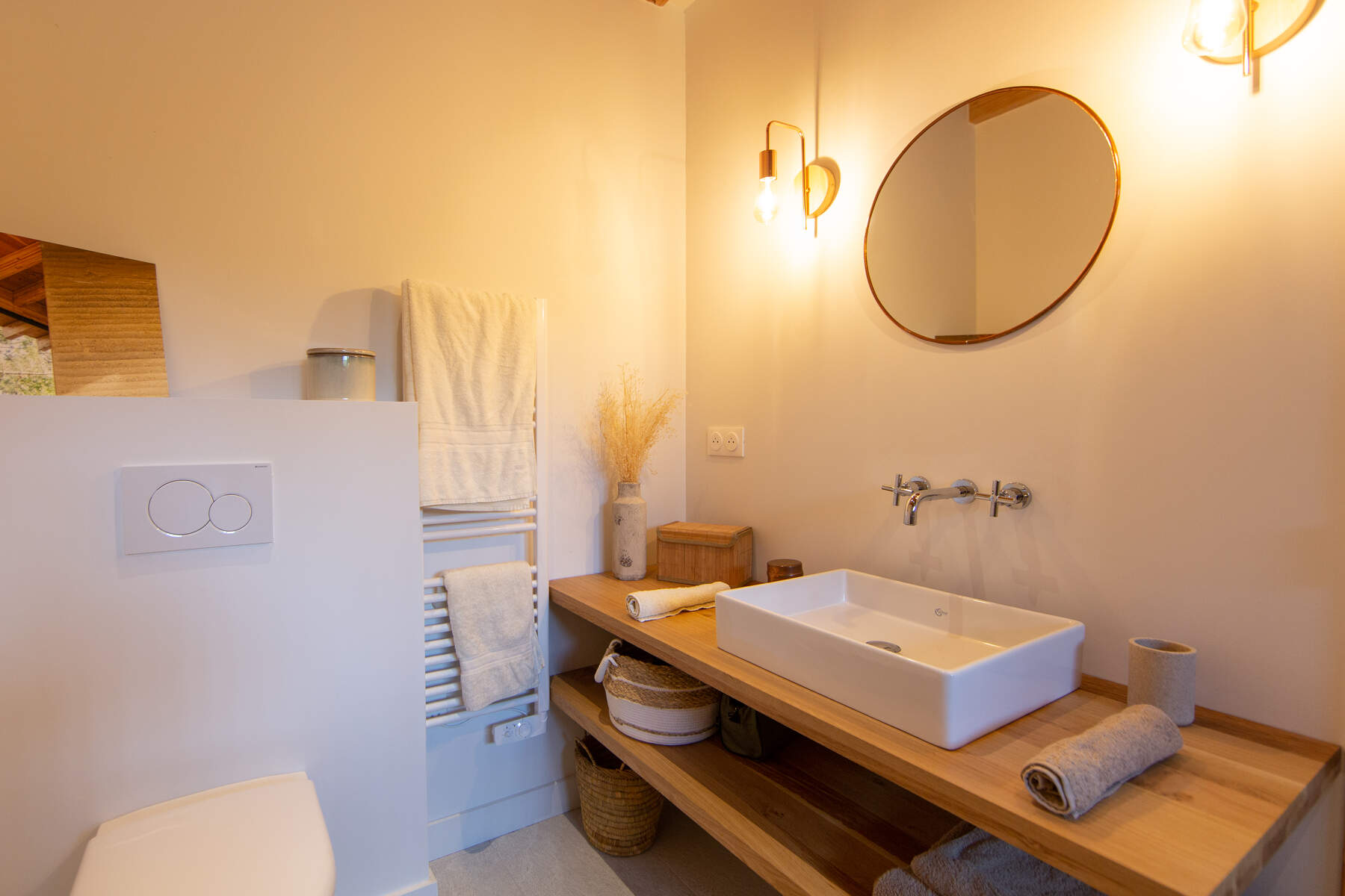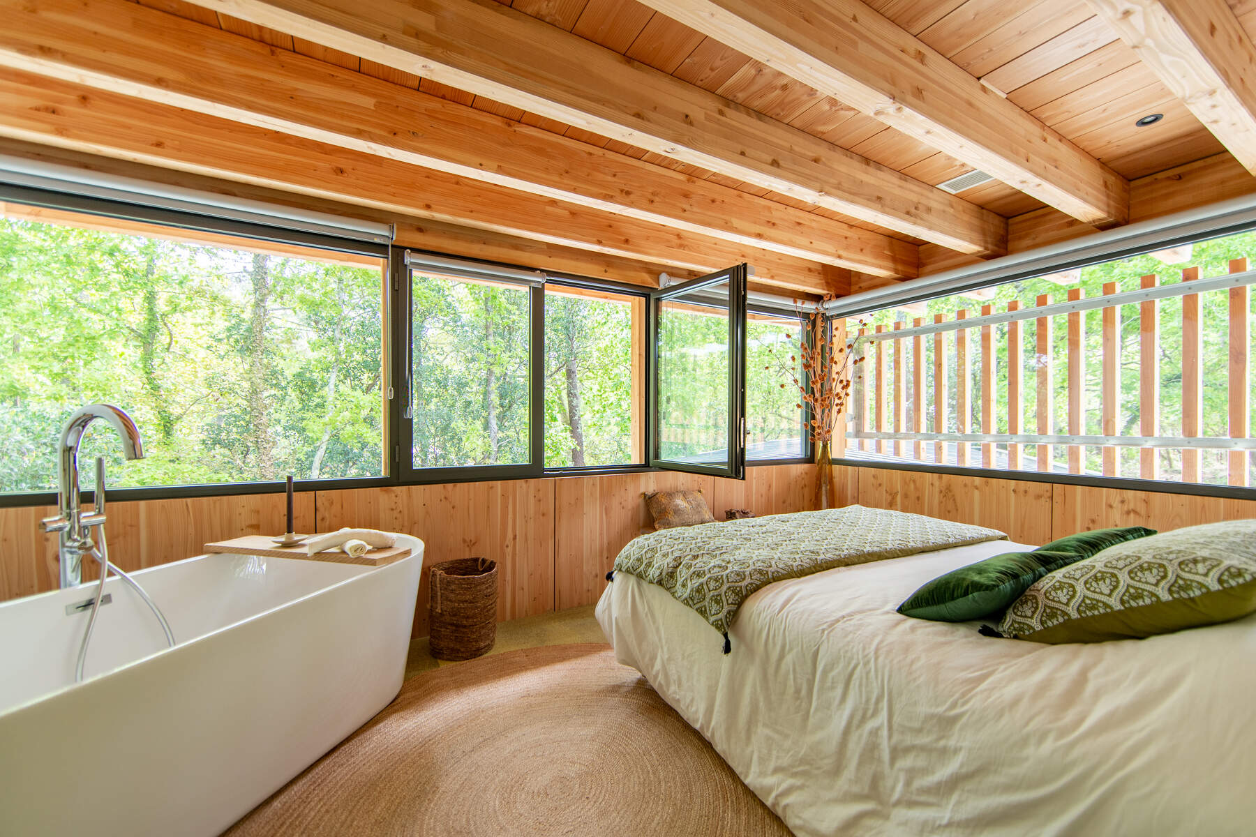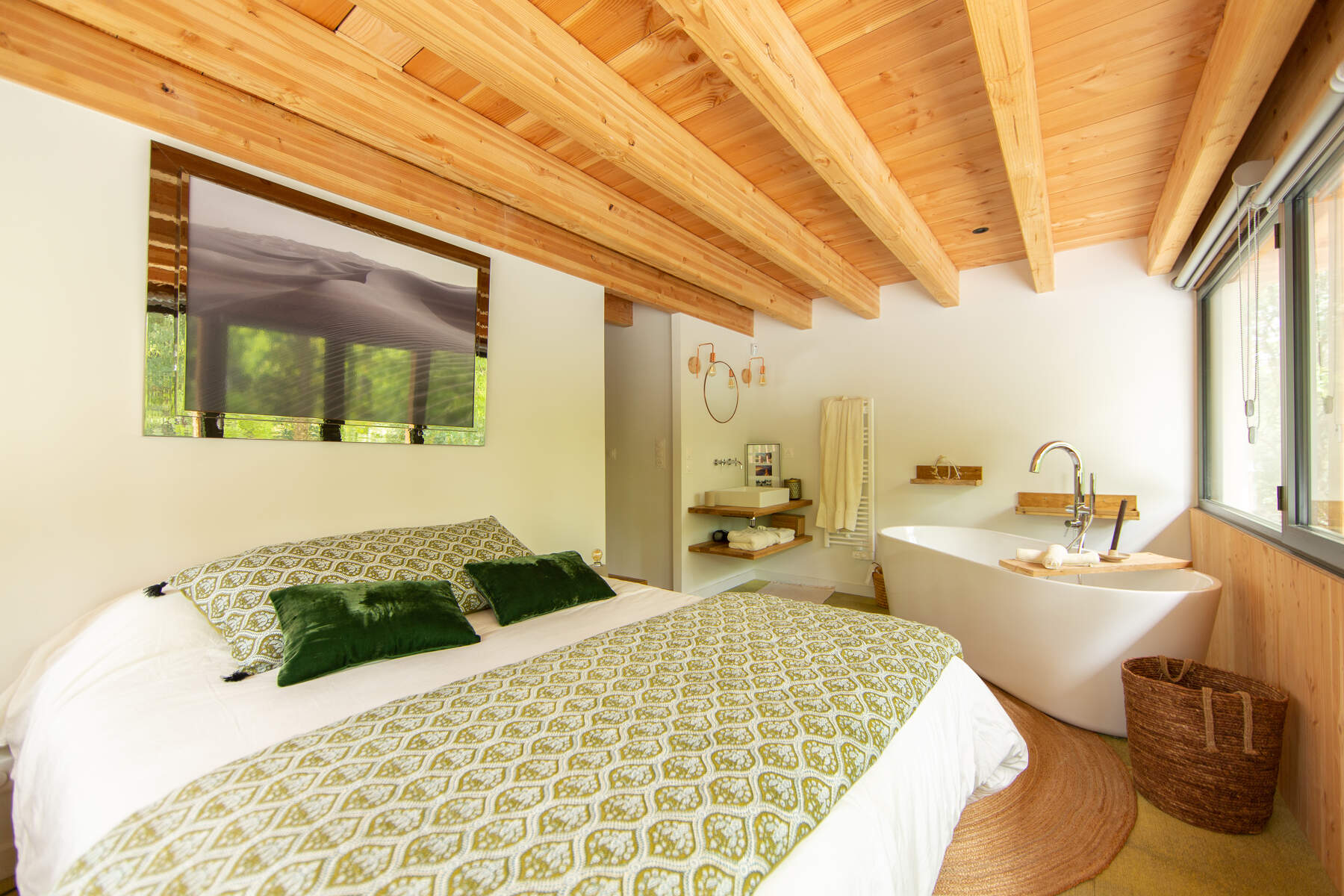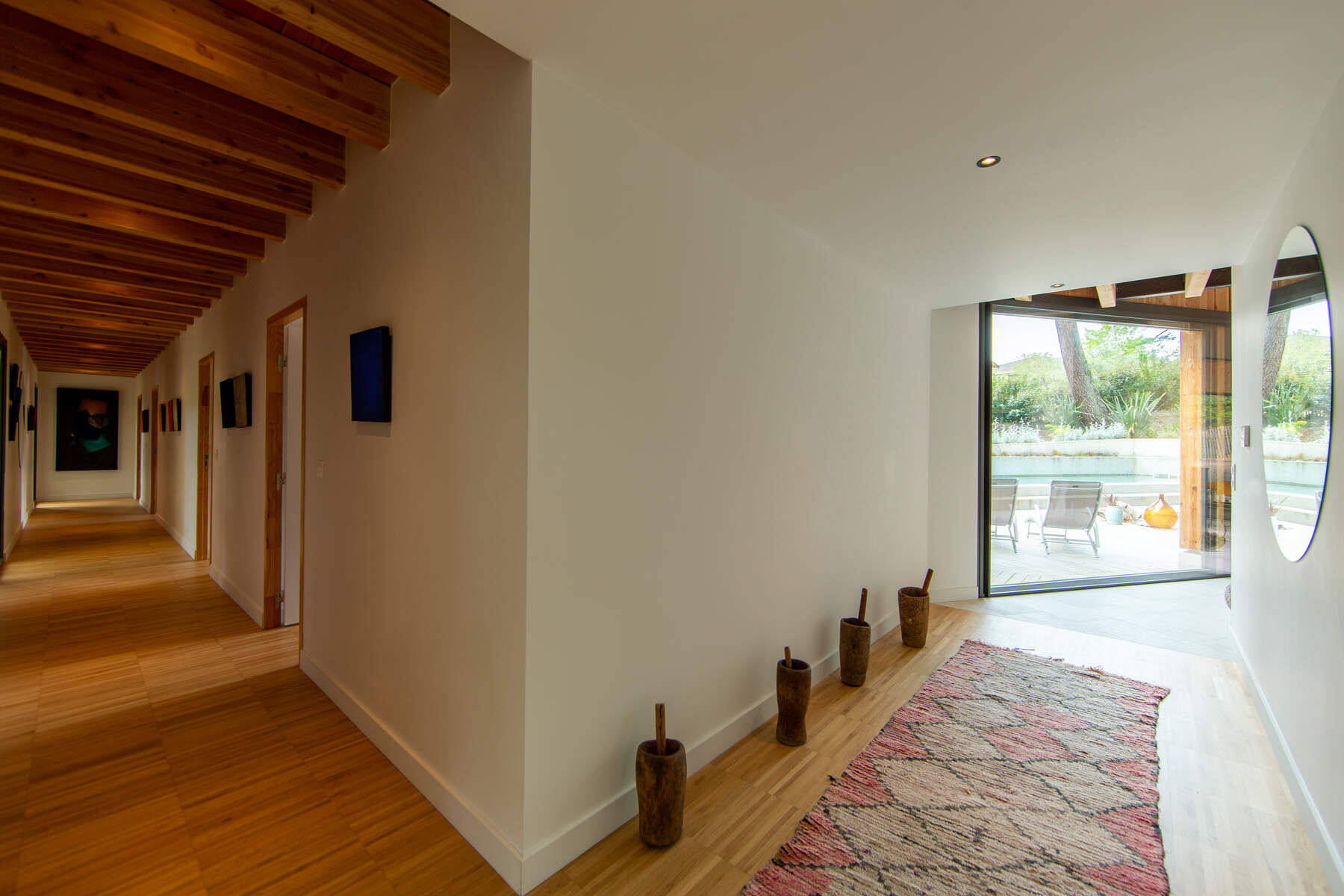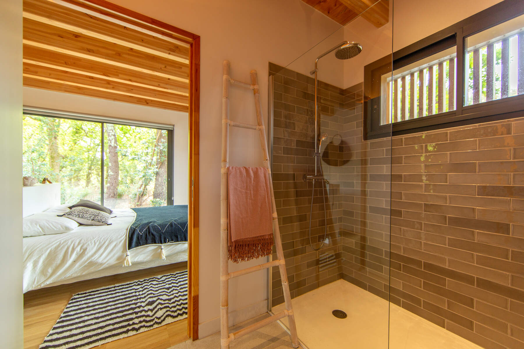 Cette magnifique villa cachée au cœur d’une nature environnante. La décoration sobre mais chic avec des matériaux naturels cous invite au calme. Vos vacances dans un cadre boisé bercé par la douce musique du feuillage dans les arbres. La piscine chauffée juste devant la terrasse est parfaite pour vos baignades et sécurisée par un volet pour les enfants. De plus, toutes les chambres ont un accès jardin pour le confort des vacanciers.