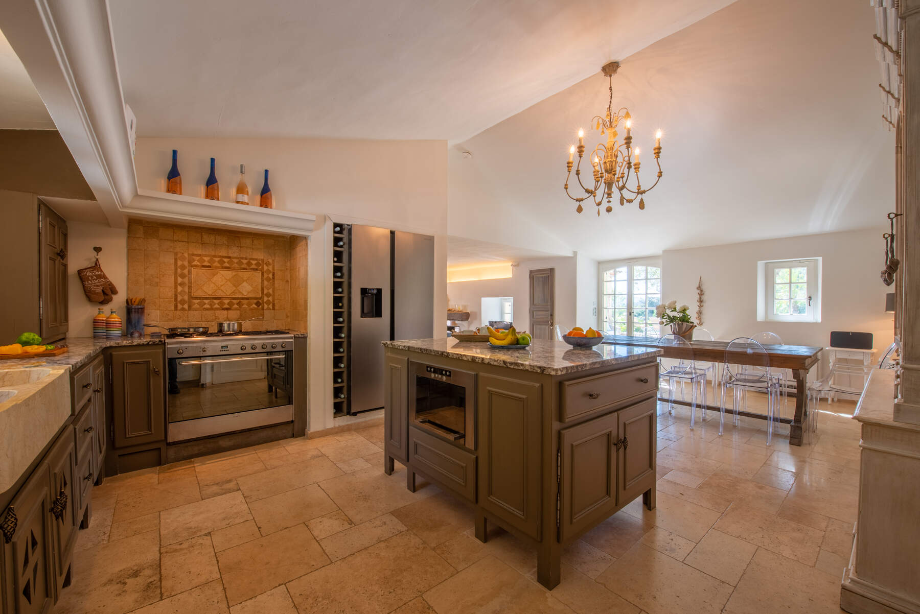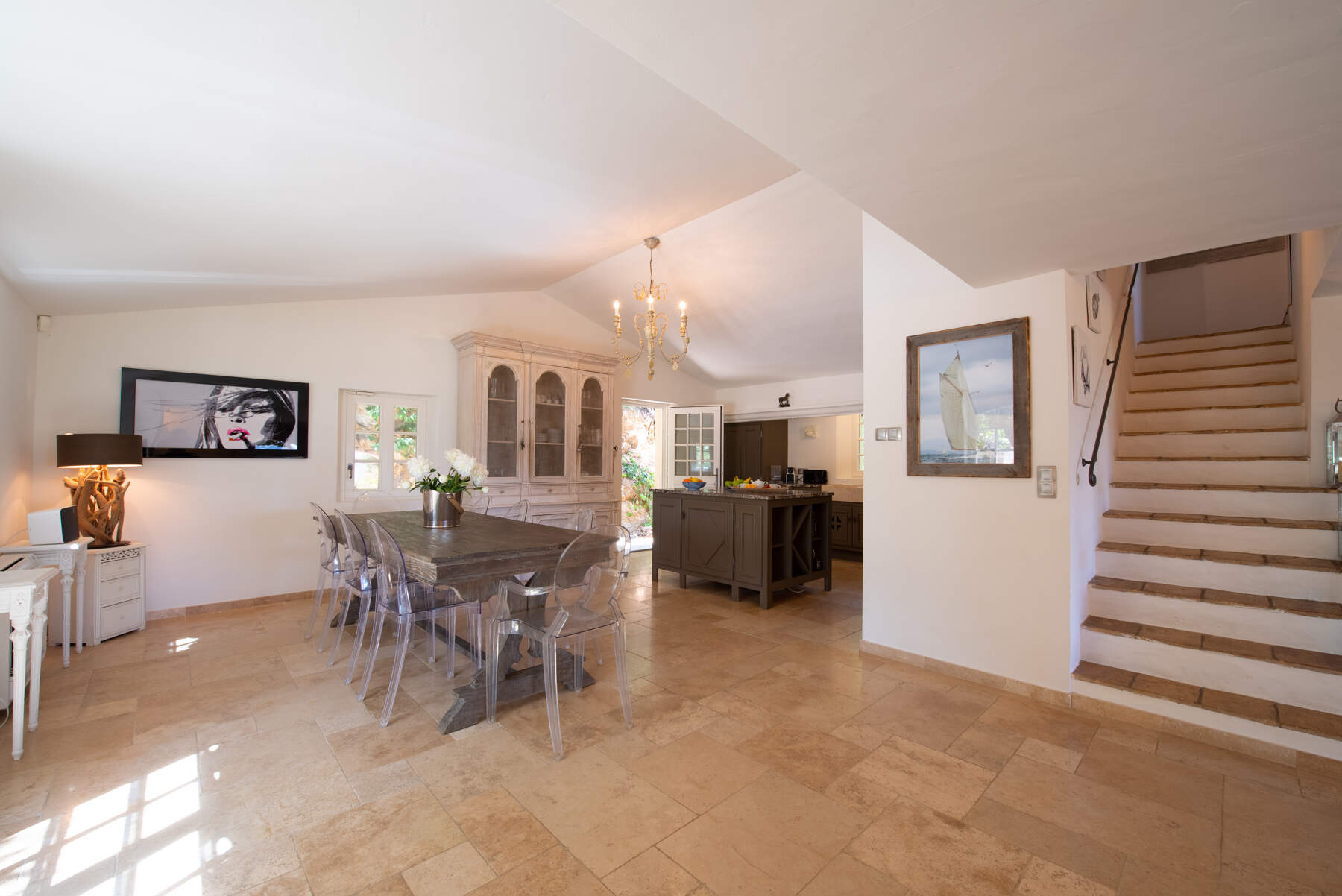 En effet, cette villa de charme a su garder son authenticité. Les pièces de vie sont spacieuses et bien meublées avec chic. Une grande cuisine familiale ouverte sur le coin repas, entièrement équipée pour toute la famille.