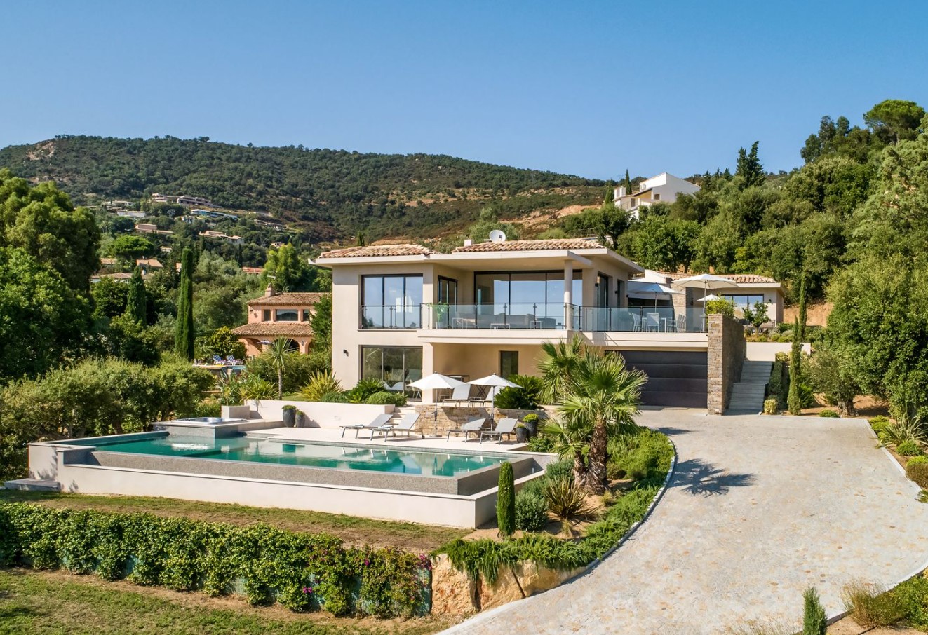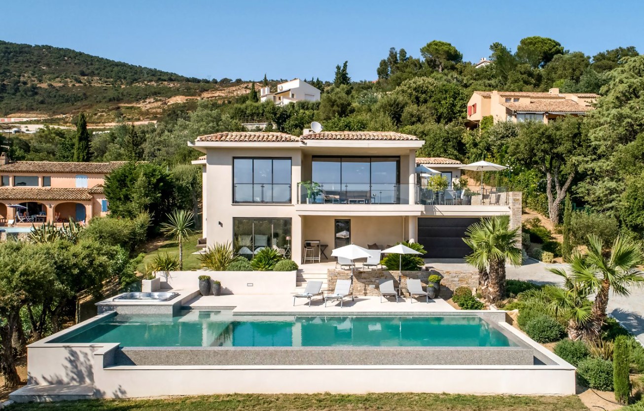 Cette villa Julia est situé dans le luxueux Domaine de Beauvallon sur un terrain de 3000 m². L’architecte René Claude Leandri a conçu cette villa tournée vers la mer avec de grandes baies. Puis, la villa Julia est complètement en harmonie avec la nature et s’intègre au paysage. En effet, une magnifique piscine à débordement entourée de jardins paysagés pour des vacances idéales.