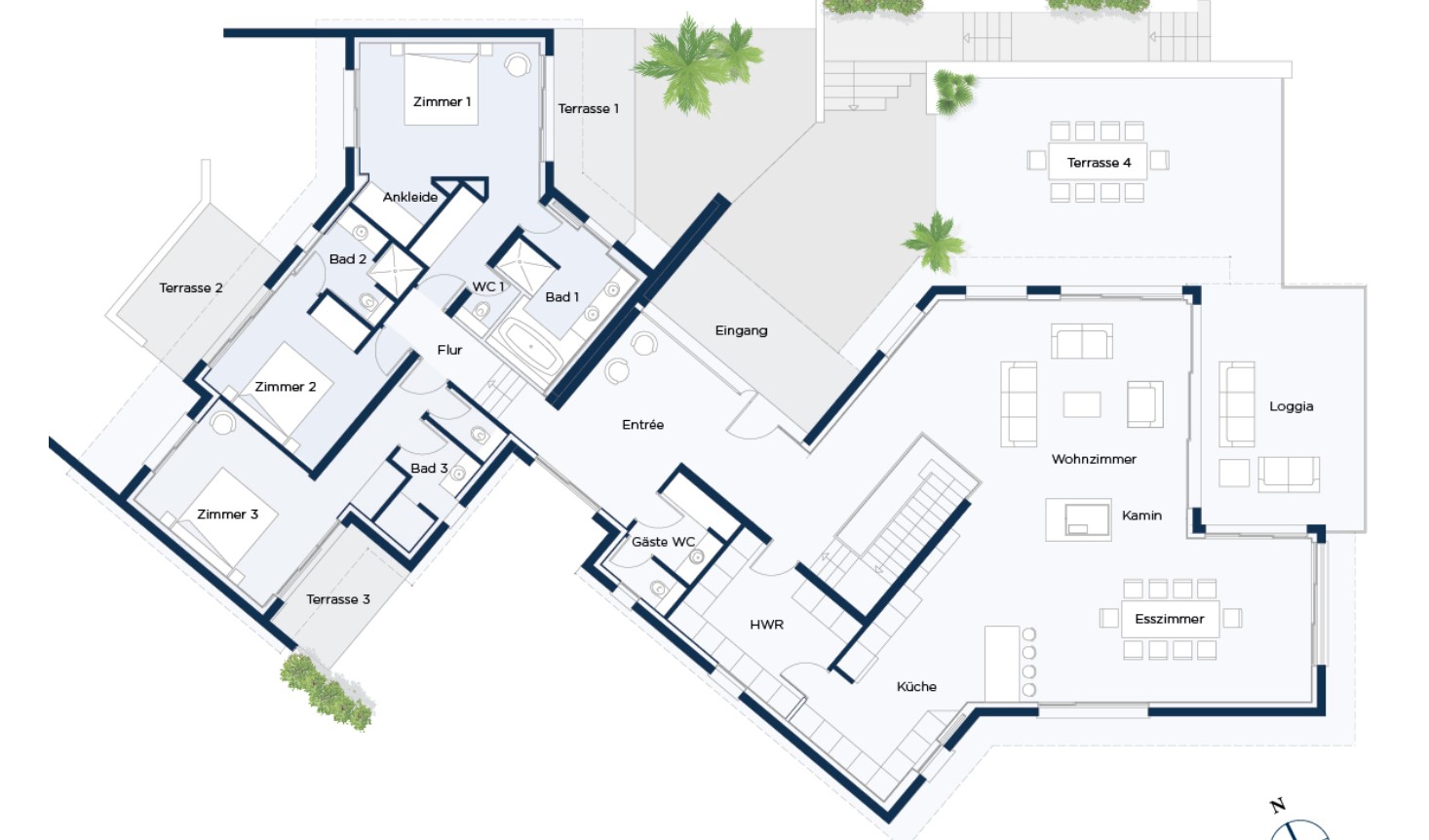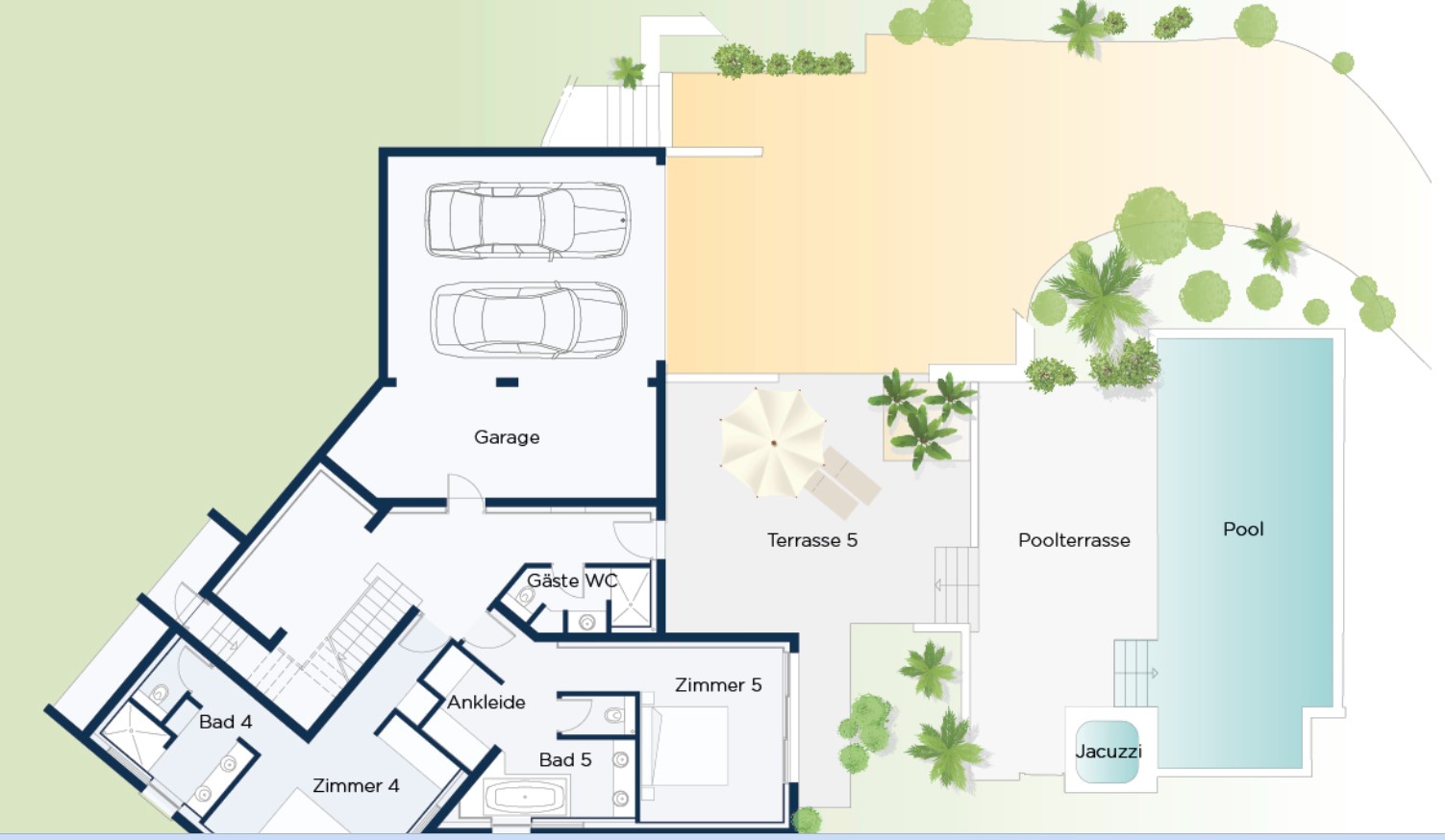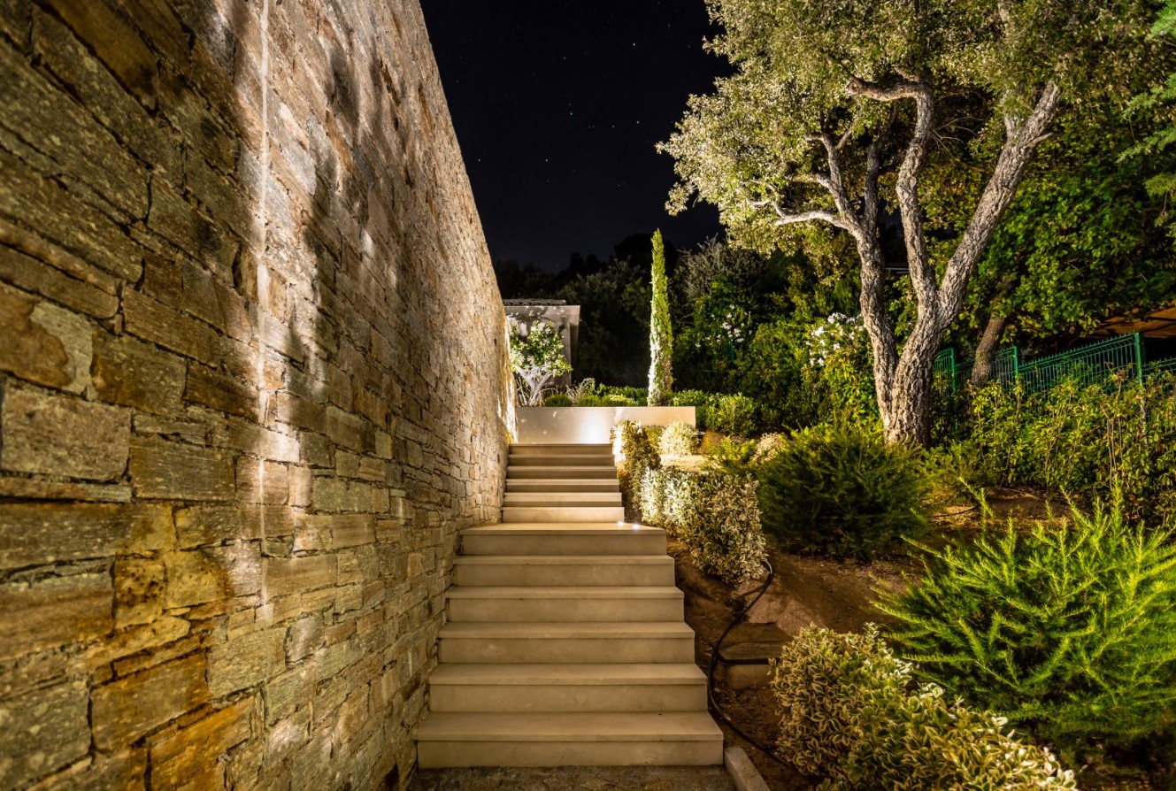 Les chambres spacieuses disposent chacune d’une petite terrasse avec une vue sur jardin ou sur la mer. En effet, de grandes baies vitrées inonde la villa de soleil. Puis, la terrasse devant le salon offre une vue spectaculaire sur la méditerranée pour vos petits déjeuners en famille au levé du soleil.