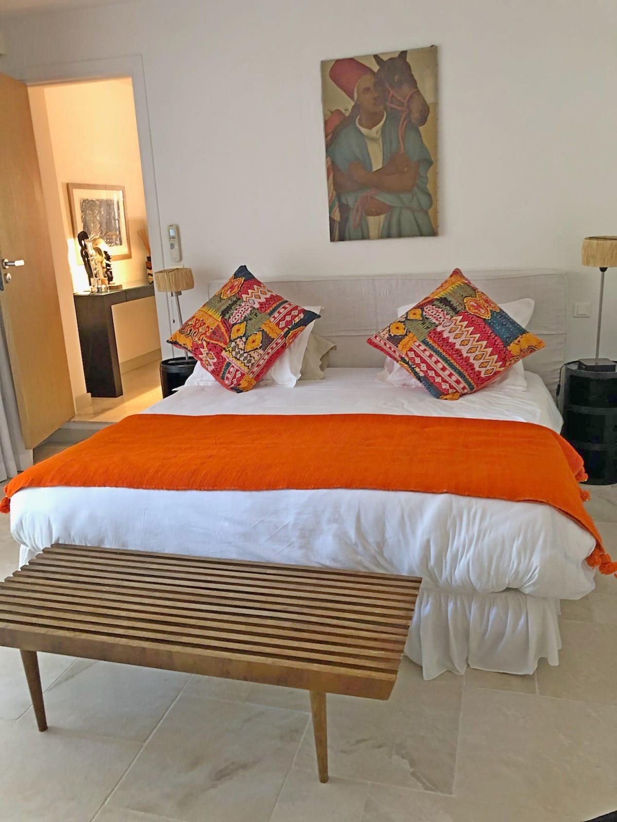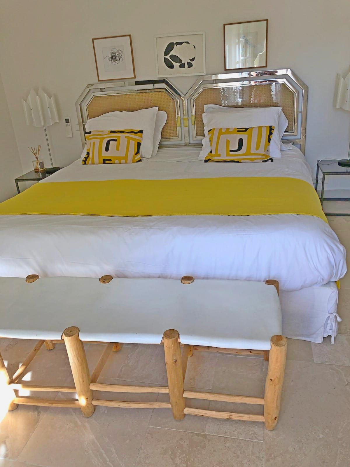 Cette villa est disposée en 2 parties avec 4 chambres en suite. En fait, 2 chambres doubles en suite avec terrasse se trouvent dans la maison principale. Puis, 2 autres chambres doubles en suite dans l’annexe. Cette villa est très fonctionnelle avec TV, climatisation et wifi. Une belle piscine au cœur de la propriété. De plus, pour vos moments de détentes entres amis ou en famille un terrain de pétanque est à votre disposition.