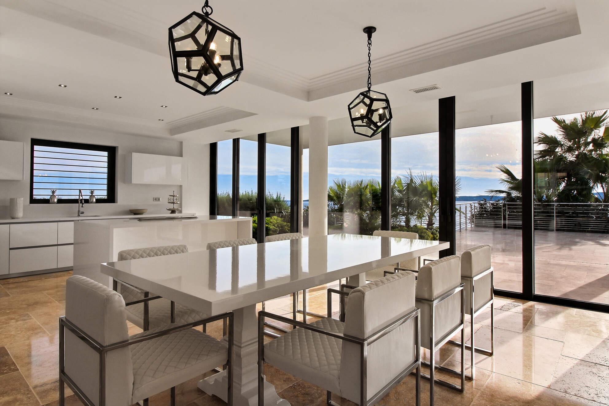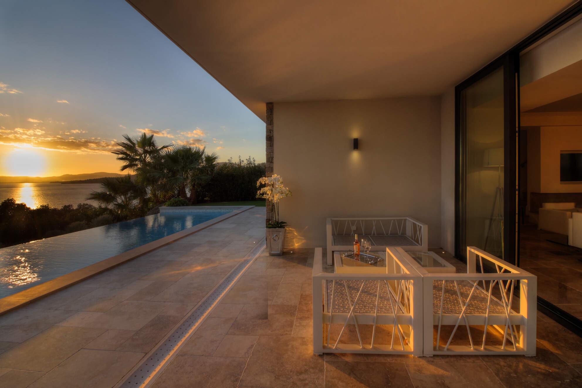 La villa de prestige contemporaine à Sainte Maxime est une propriété haut-de-gamme offrant une vue panoramique panoramique imprenable sur la mer Méditerranée.
