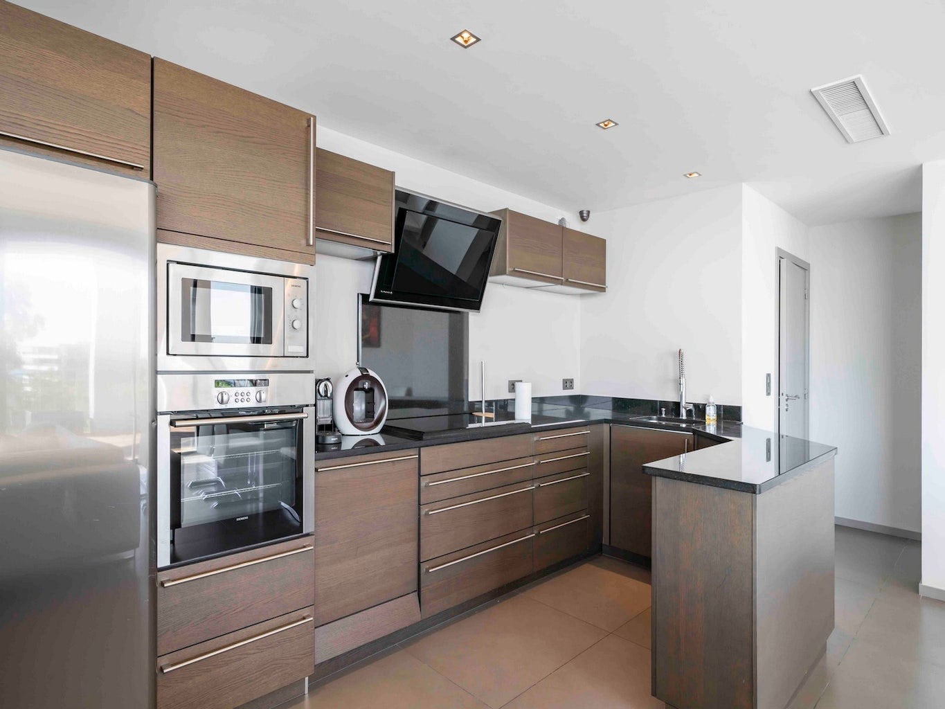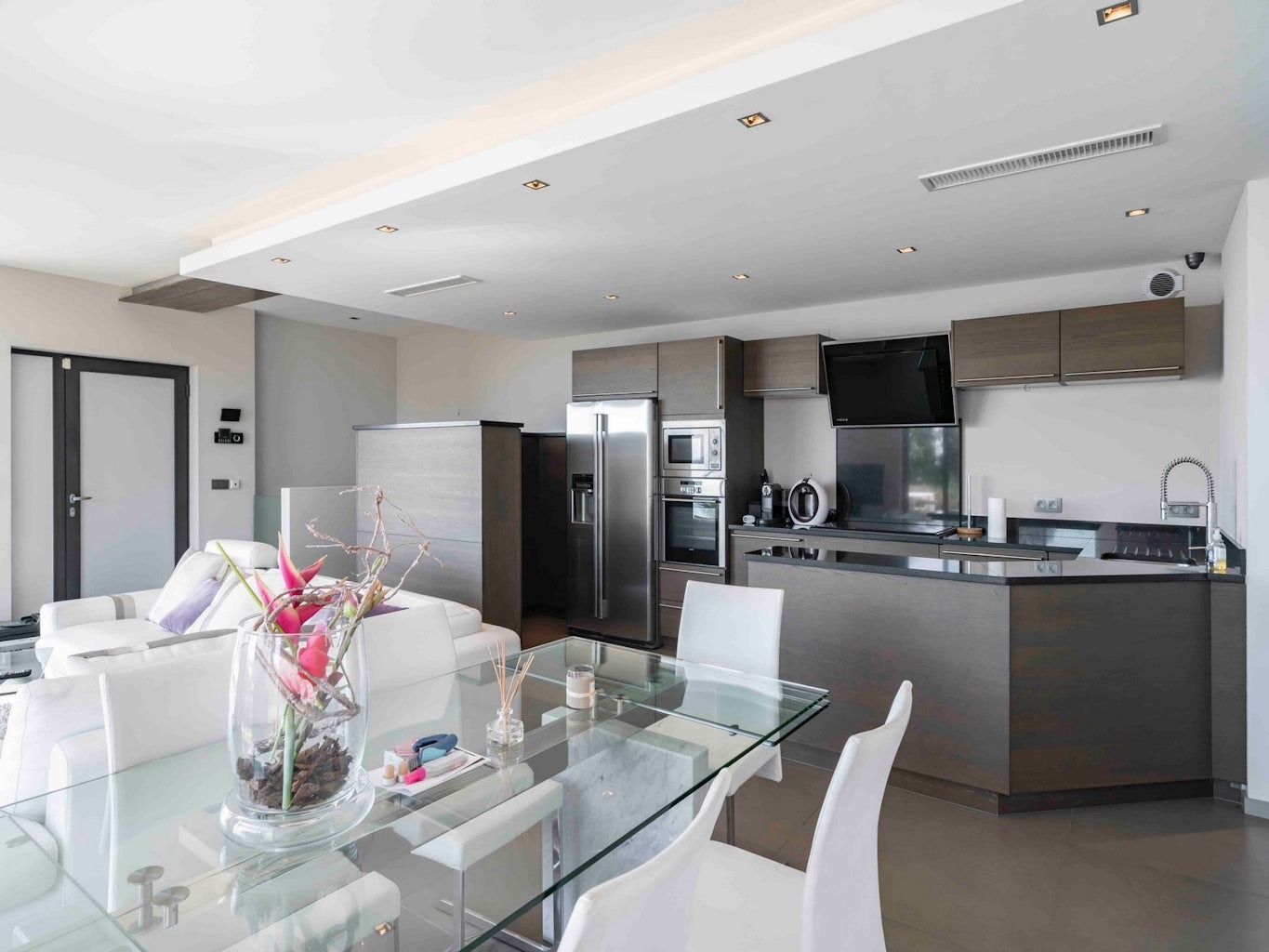 La villa Madeline est composée de 2 étages avec une magnifique terrasse sur le toit. La villa est moderne mais reste néanmoins chaleureuse. La lumière est exceptionnelle grâce aux baies vitrées dans les pièces de vie. La grande cuisine ouverte sur le salon invitent les convives à des moments de partage. En effet, le mobilier est confortable avec des canapés cosy et une grande table de salle à manger pour recevoir tous les convives. Pour vous détendre devant un bon film la TV est un grand écran.