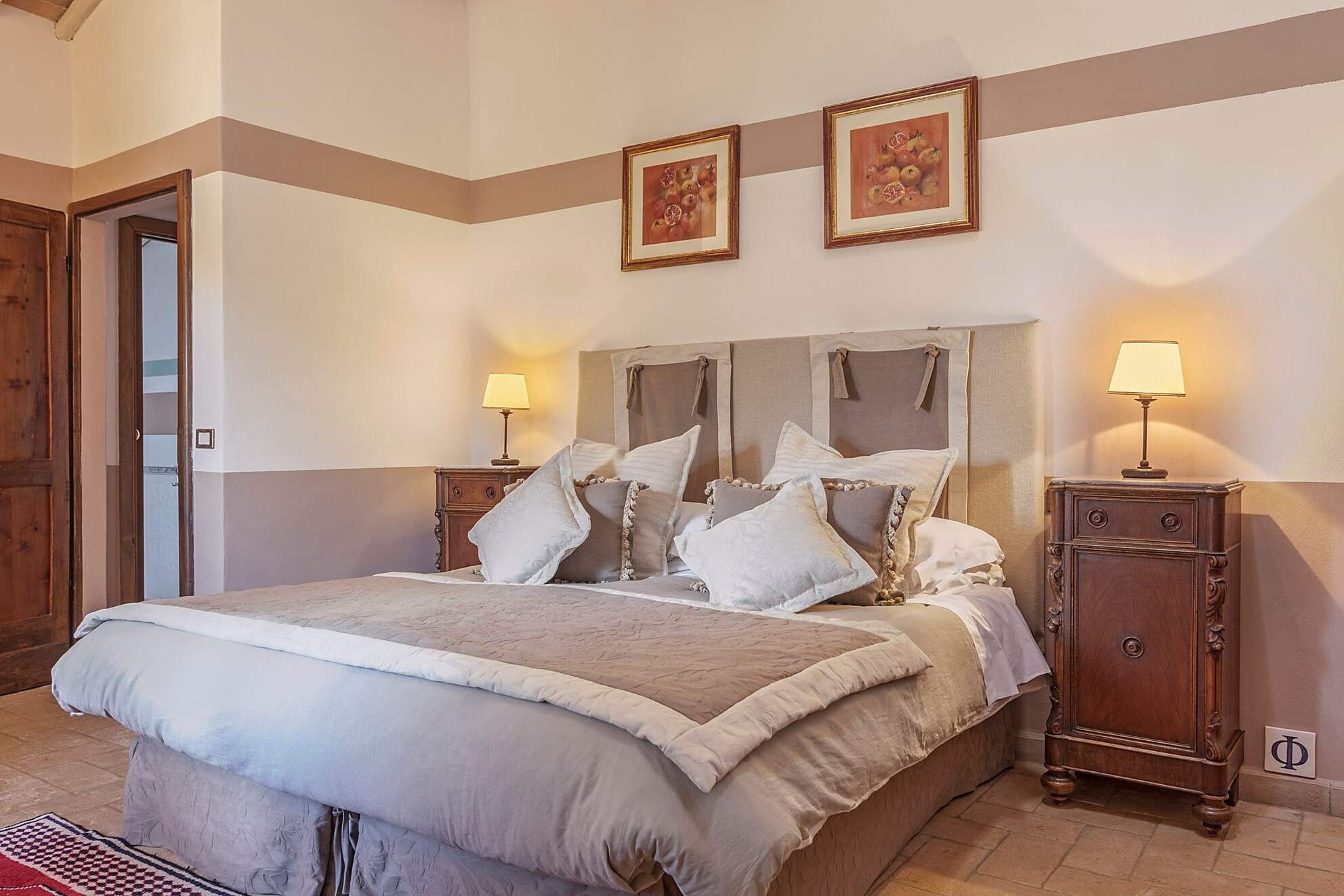 Cette belle propriété est dotée d’un grand jardin arboré, rempli d’oliviers et de vignes, offrant ainsi un cadre paisible et relaxant. Vous pourrez vous détendre au bord de la piscine chauffée à débordement, qui offre une vue panoramique sur les collines environnantes.