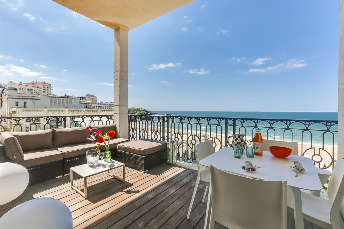 Ouvrez les portes-fenêtres et respirez l’air marin. Prenez le petit déjeuner devant les célèbres vagues de Biarritz, puis traversez la route jusqu’à la plage pour votre première baignade. Le soir, admirez le coucher de soleil sur l’océan depuis votre terrasse, un verre à la main…. C’est un rêve tout à fait réalisable dans ce magnifique appartement au premier étage, dans une résidence de standing en front de mer, à deux minutes à pied du Casino Barriere et du centre ville.