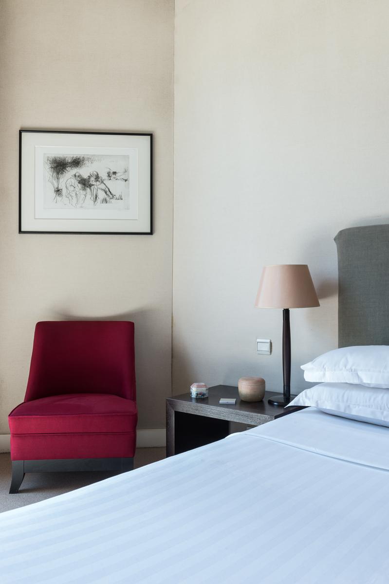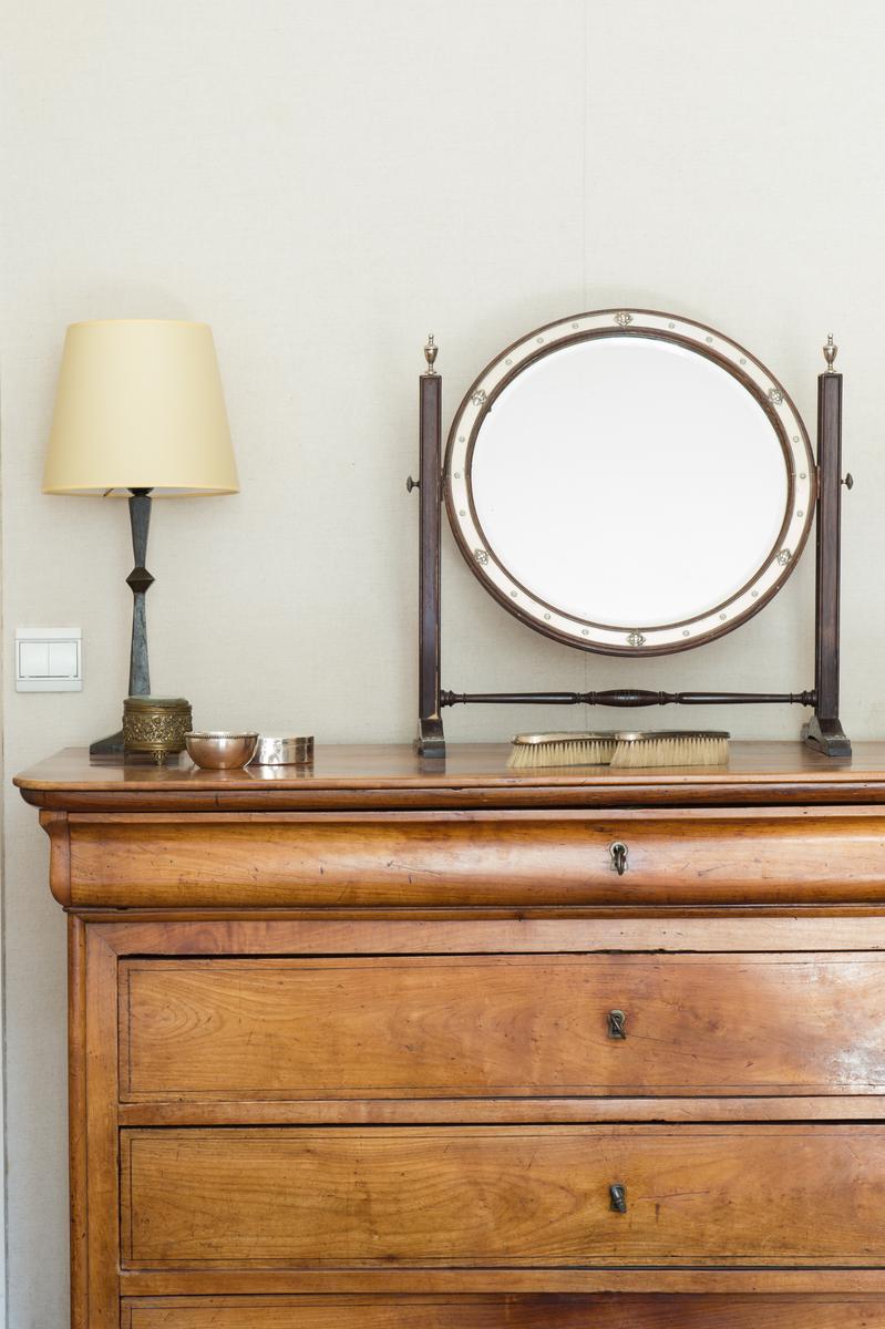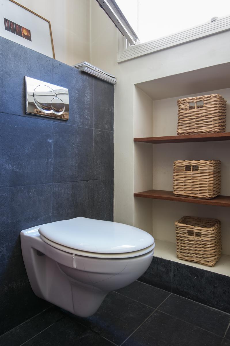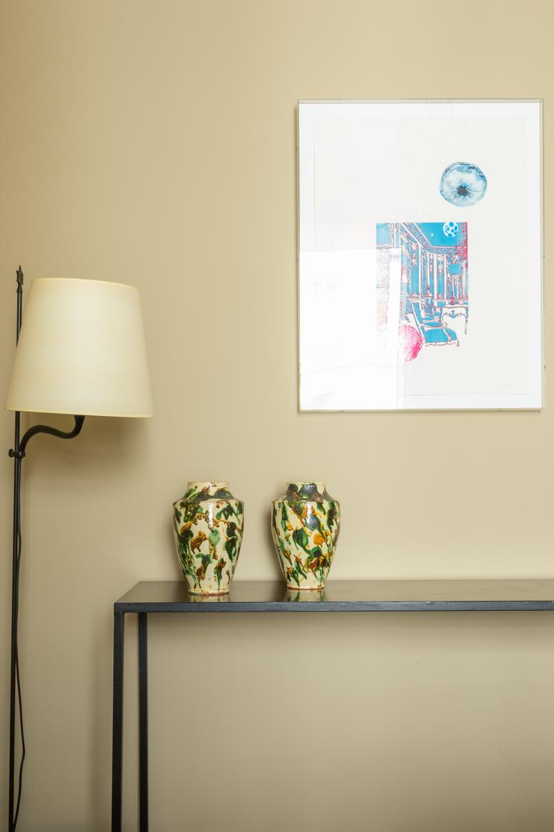 Proche de l’autre côté de la Seine et des commerces de La Défense, cette maison neuilly est paisible et calme. En entrant au quatrième étage, vous trouverez le salon sur la gauche – avec des portes-fenêtres, de grandes bibliothèques et un groupe de canapés gris. Un bureau contemporain est posé sur le parquet, et à droite, la cuisine a un aspect champêtre, avec des carreaux au sol et une table à manger en bois.
