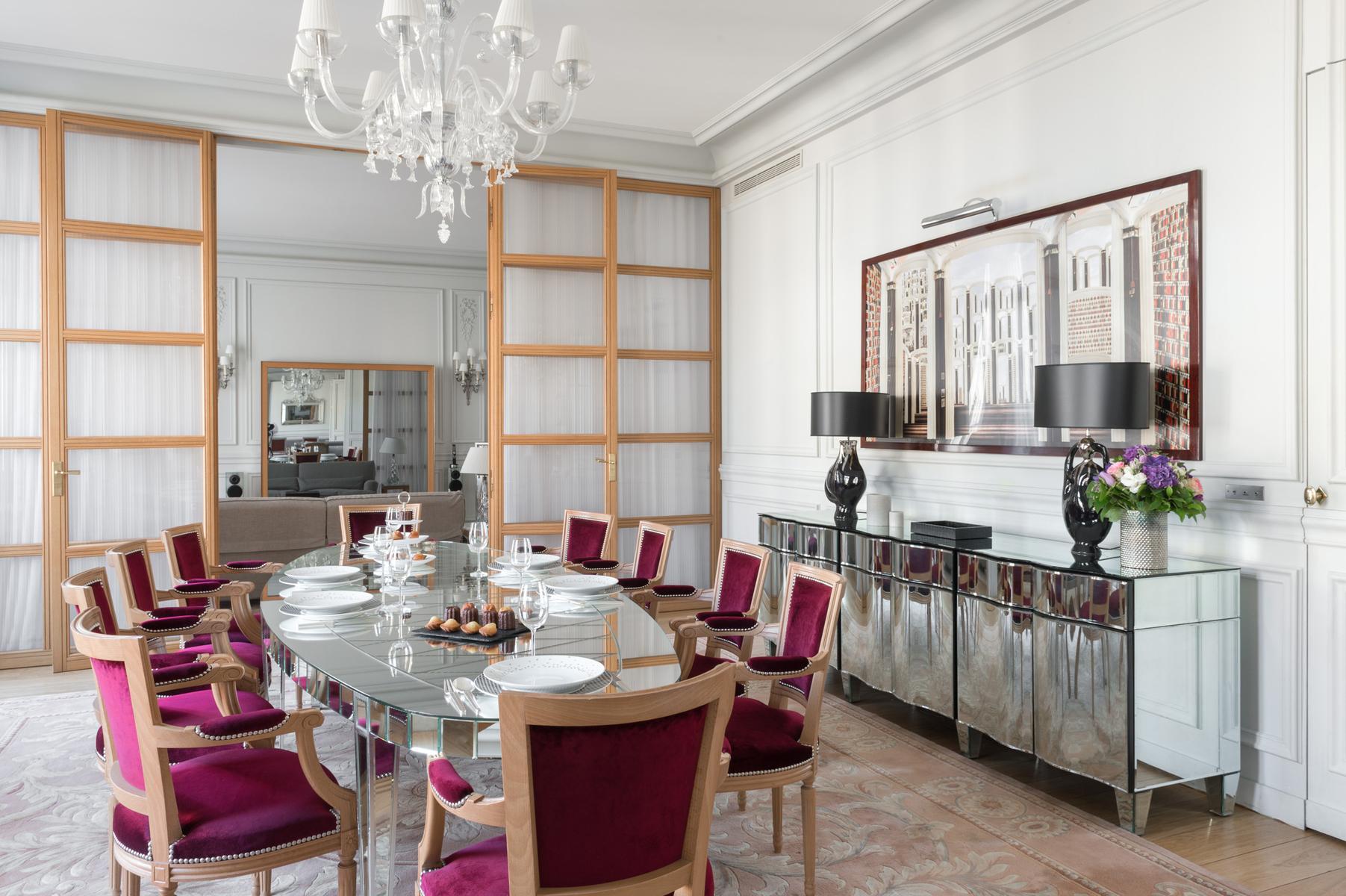 Avenue Hoche est un appartement de trois chambres à coucher, trois salles de bains à l’intérieur de la résidence privée exclusive rattachée à l’un des hôtels les plus prestigieux de la ville avec, distingué comme l’un des rares palais de Paris. Les chambres de l’appartement sont généreuses et somptueuses, avec une vaste pièce décorée dans le style parisien du début du siècle et meublée de pièces de Philippe Starck. L’accès se fait par une entrée privée. Ce quartier est connu pour ses boutiques et ses restaurants exclusifs, et vous êtes très près de la célèbre avenue des Champs-Élysées. Le Grand Palais et le Petit Palais sont également à proximité, à cinq minutes à pied de la station de métro Charles de Gaulle Étoile.