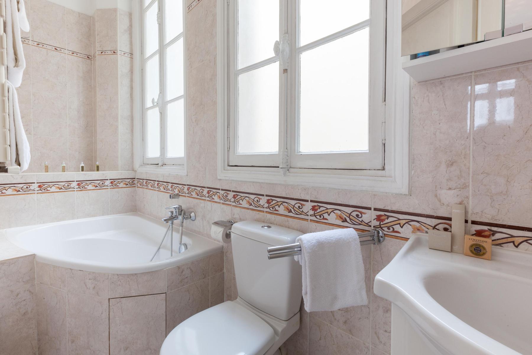 Bien que cette maison soit décorée avec art, il y a aussi beaucoup de confort. La cuisine est bien équipée et la salle de douche étincelante et la salle de bains carrelée sont calmement huilées. Trouvez la chambre à coucher adjacente au salon coloré, avec de larges fenêtres et un miroir à cadre doré au sommet de la cheminée. Vous pouvez vous lever tôt pour une promenade le long de la Seine à proximité, ou partir à la recherche de café et de croissants sur les places historiques du Marais.