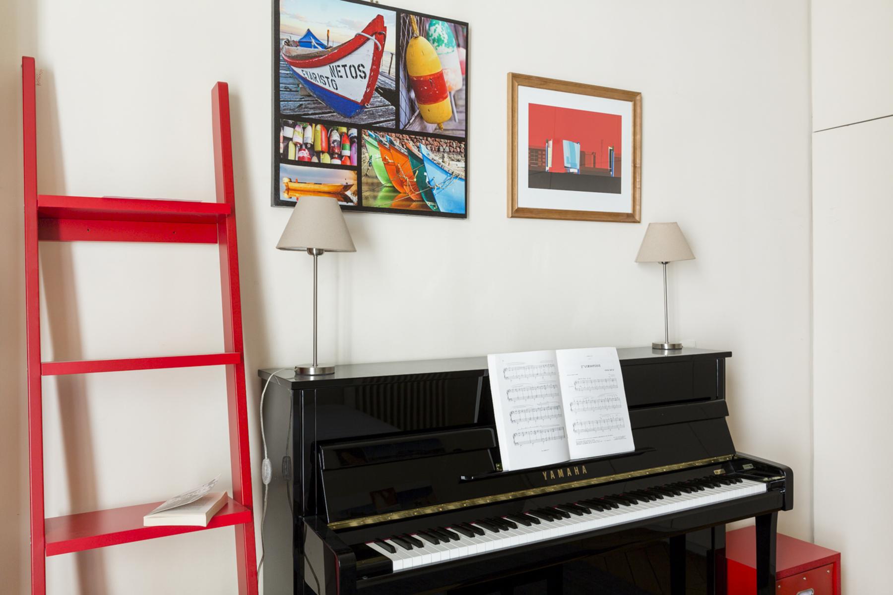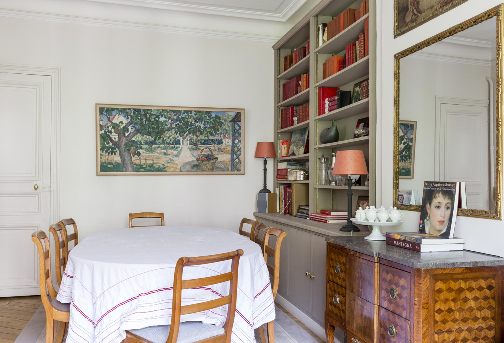 Sur une avenue haussmannienne typique du Parc Monceau, vous trouverez cette maison de famille. Vous entrez dans le Boulevard Malesherbes III par un couloir au deuxième étage, où deux chambres (une chambre double sereine et une chambre simple colorée avec piano) et une salle de bains sont juste à gauche. A droite, la cuisine d’accueil, sa table drapé jaune et ses chaises bleues sont un point culminant. La chambre principale est ici aussi, accessible par sa salle de bain en pierre, avec des œuvres d’art classiques et une échelle de bibliothèque.