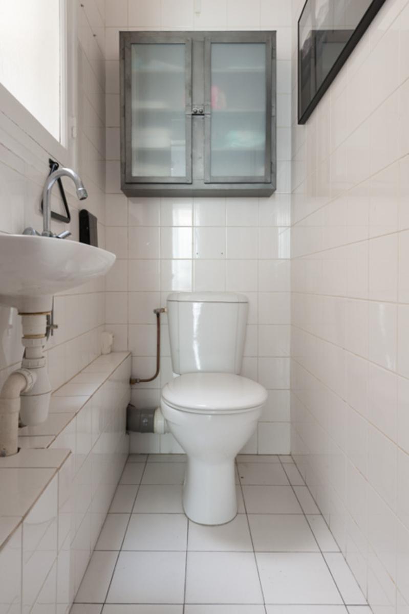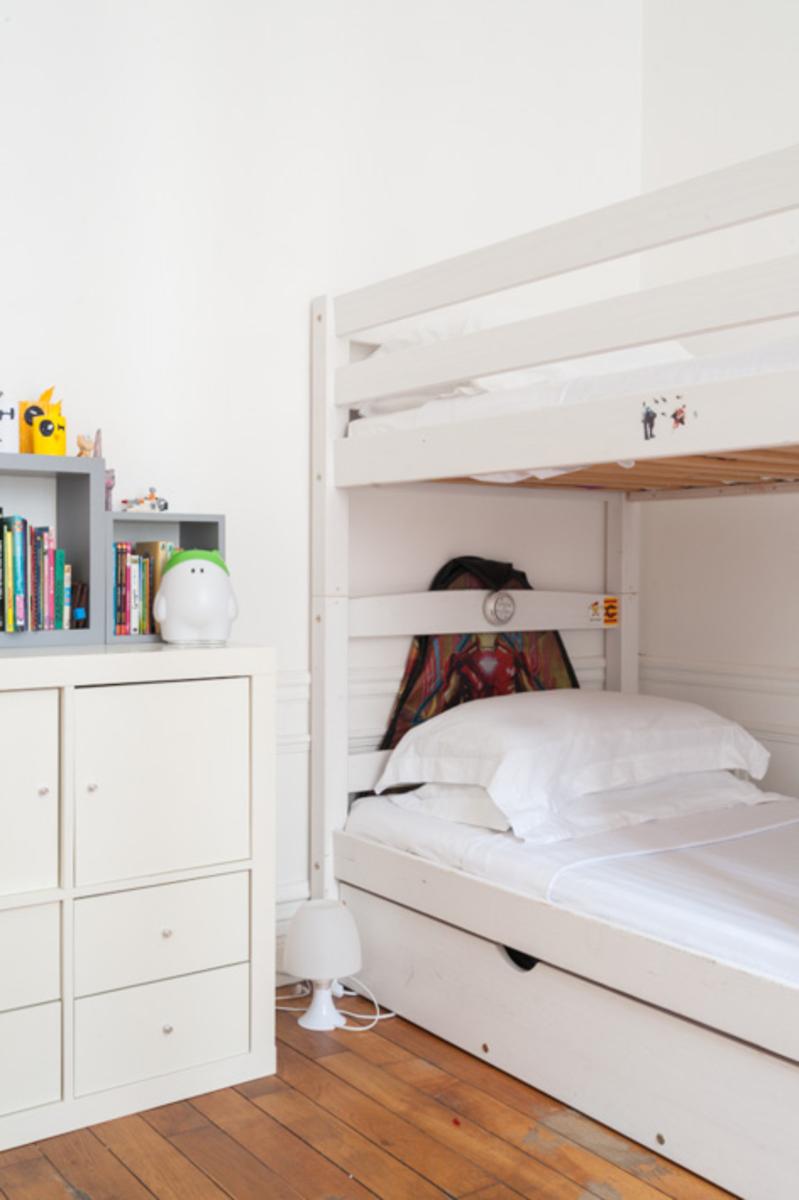 De l’autre côté du hall se trouvent la cuisine et une salle de toilette, au-delà de laquelle se trouve un bureau calme avec un canapé-lit, un mur abritant un portrait contemporain inhabituel (l’un de vos hôtes est photographe). A droite se trouve la chambre principale – pâle et paisible – et une salle d’eau turquoise. Au coin de la rue, il y a une autre salle de bain, une salle de toilette séparée et, enfin, le domaine des enfants – une chambre à coucher superposée blanche et croustillante, les livres dans la bibliothèque offrant une touche de couleur.