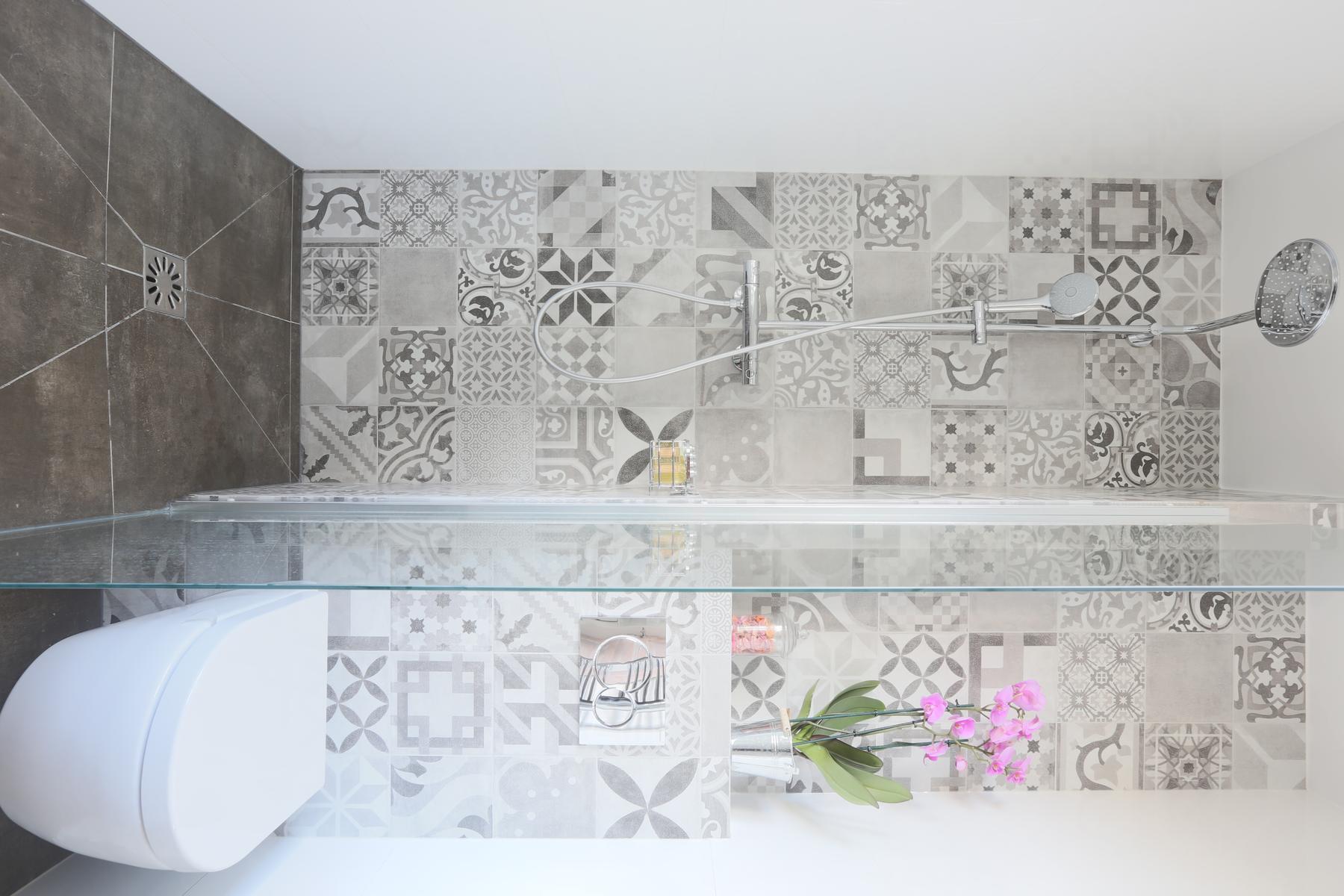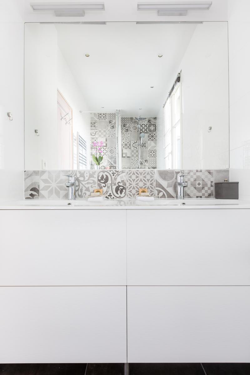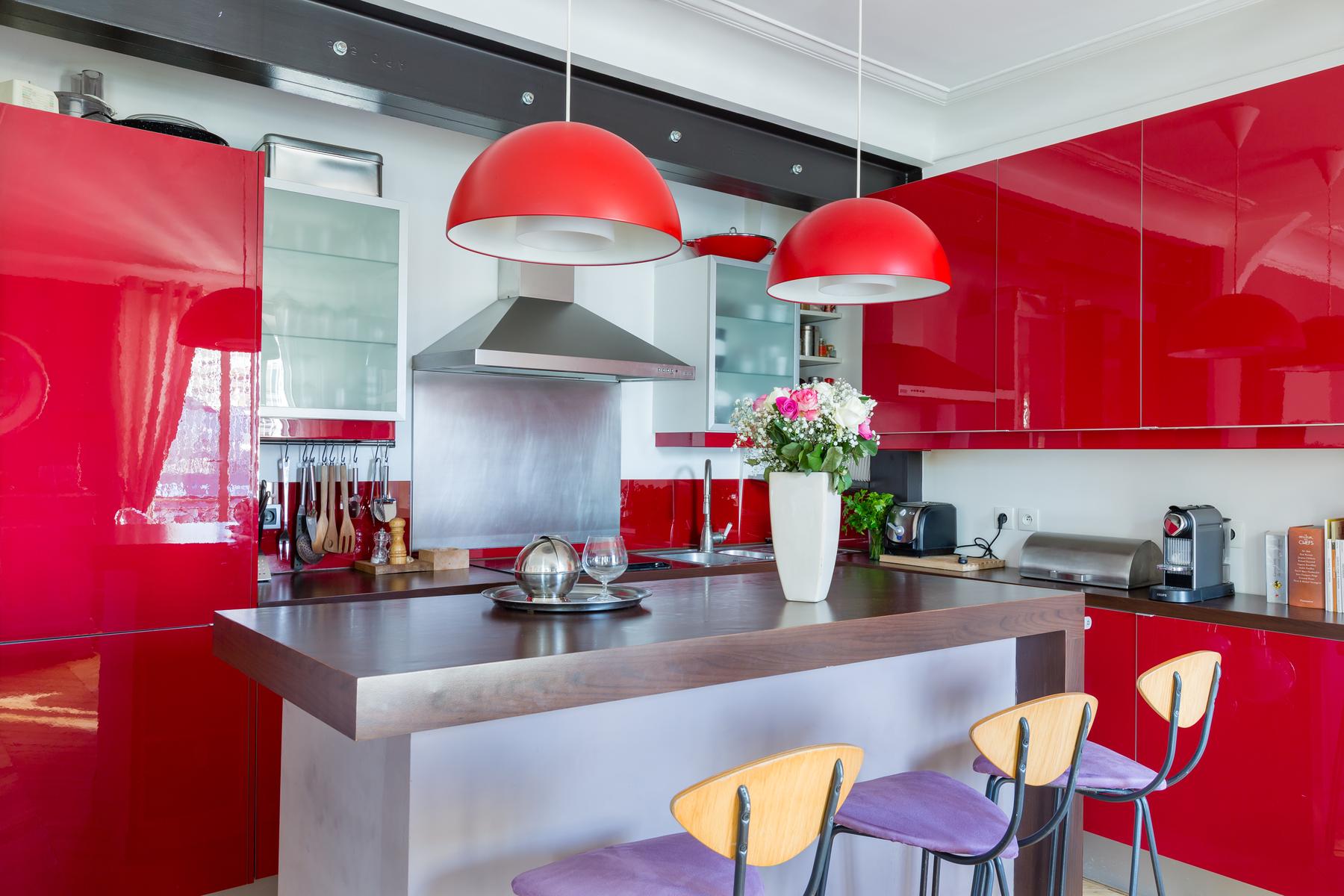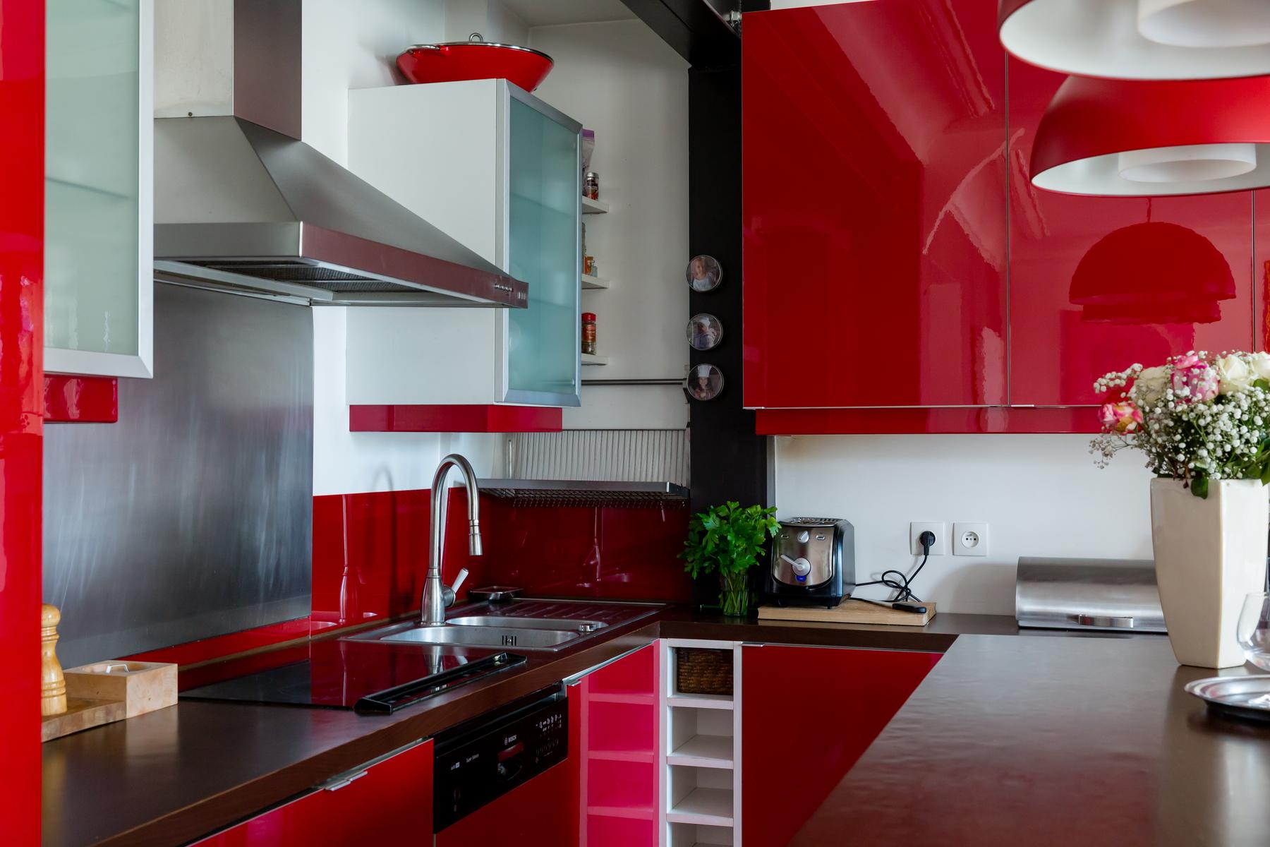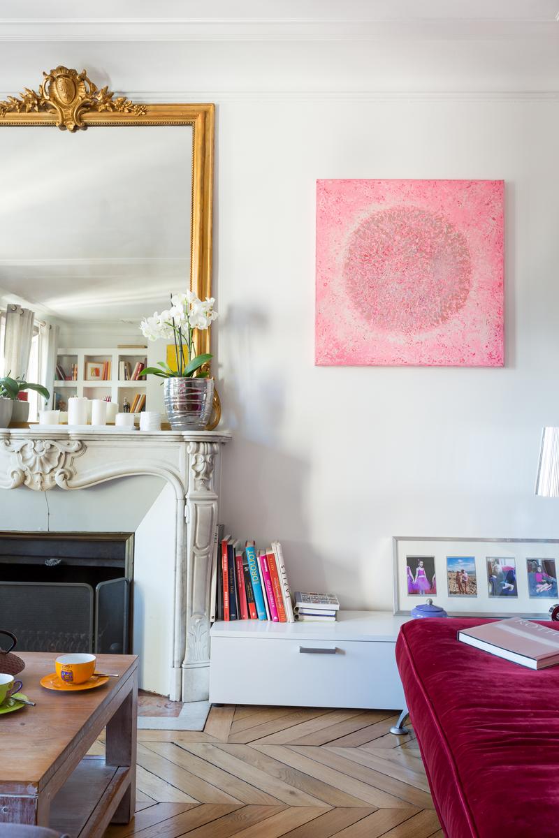 Le joli Jardin du Luxembourg, les grandes boutiques de Saint-Germain-des-Prés, la Closerie des Lilas, la Closerie des Lilas, tout est là pour stimuler l’imagination à Montparnasse. A l’intérieur de Place Bienvenüe, les œuvres d’art abstrait complètent l’ameublement – des peintures roses et des chaises en velours longues dans le salon à la dramatique toile orange à côté des armoires rouges de la cuisine. Vous trouverez la table de salle à manger entre les deux – elle est disposée avec quatre chaises en plexiglas et se trouve à côté des étagères modulaires empilées avec la collection de titres de vos hôtes.