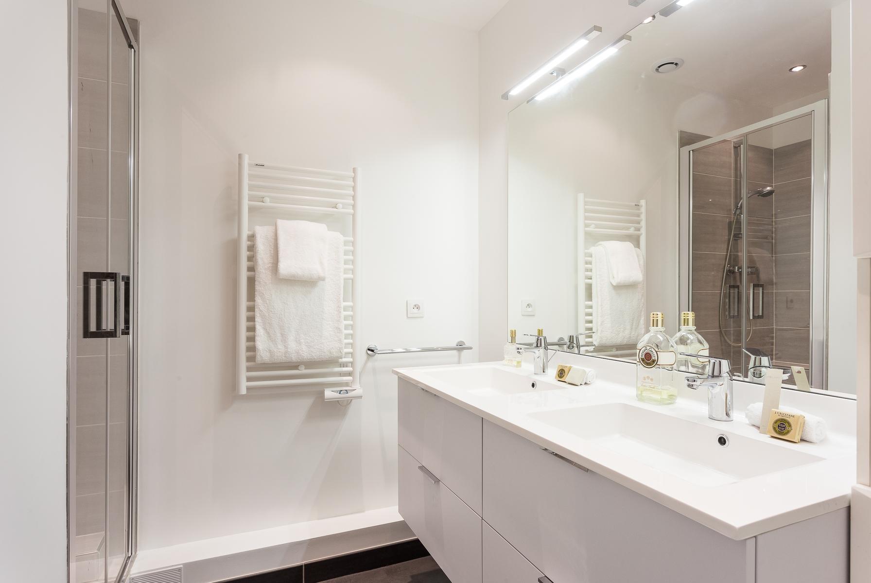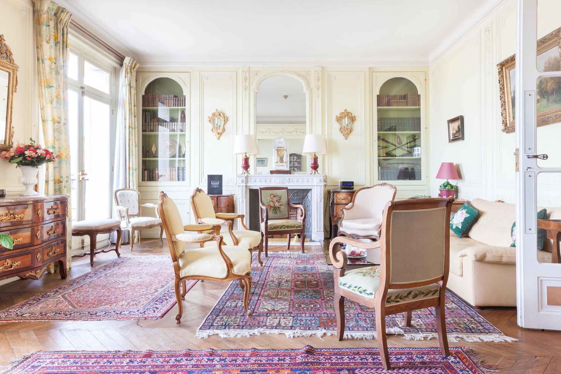 Dans ses hauts plafonds, ses fenêtres sur toute la longueur et ses guirlandes et guirlandes moulées, cet appartement incarne le panache patricien de son voisin, le Sénat, la chambre haute du Parlement français. La statue de marbre dans la salle parle de la jurisprudence classique aux chaises Louis XV et aux escritoires en bois foncé. Et les tapis persans sous des armoires en verre avec des tomes en cuir reliés en cuir bordent les murs entre les miroirs et les portraits peints à l’huile. Juste derrière votre porte, vous trouverez le beau Jardin du Luxembourg et les délices de Sèvres-Babylone et de Saint-Germain-des-Prés.
