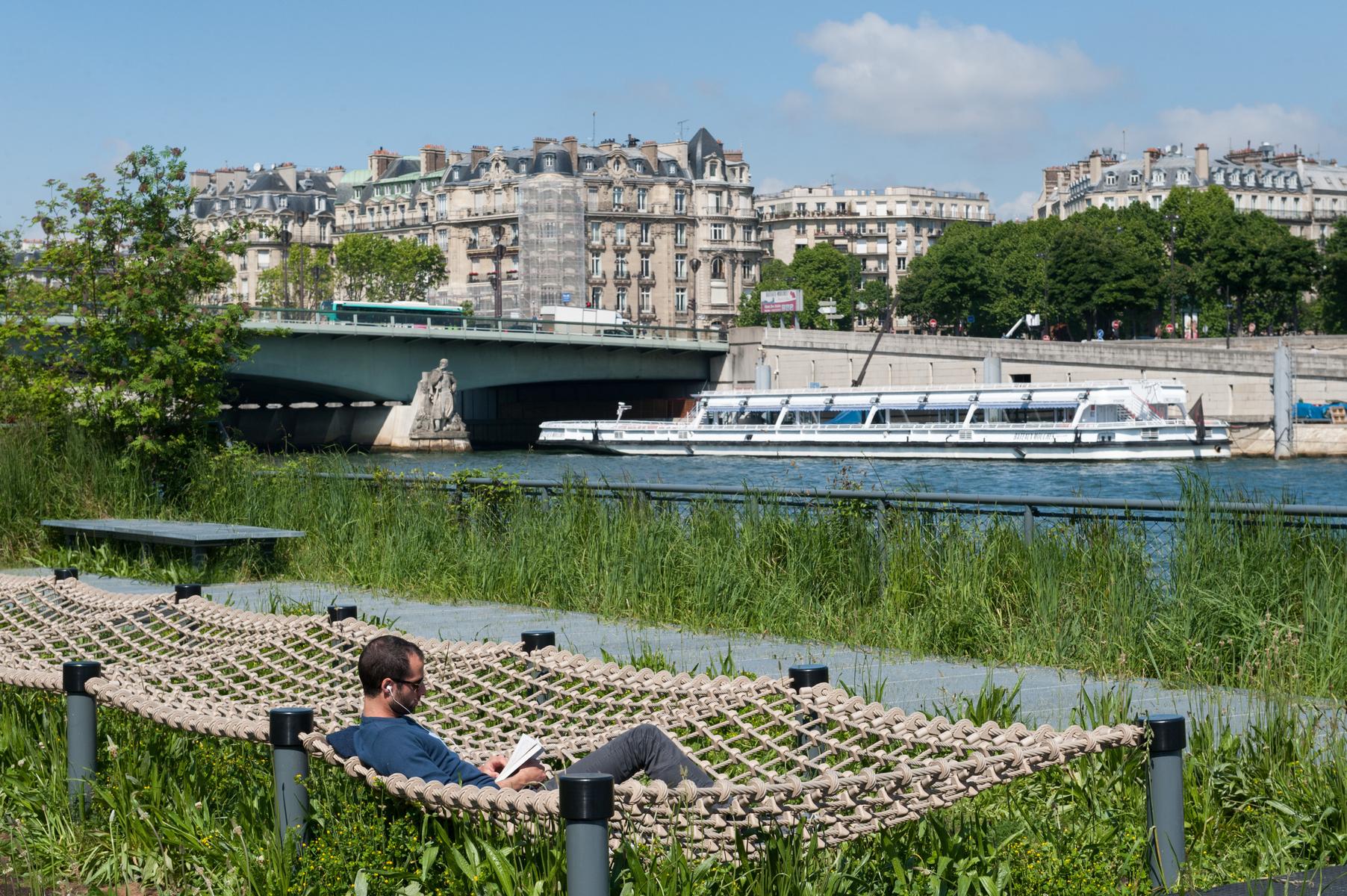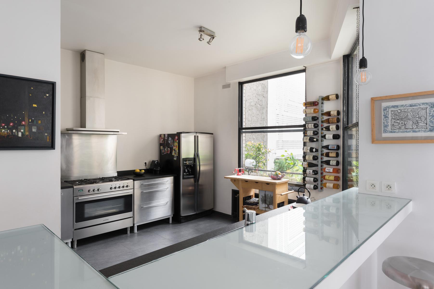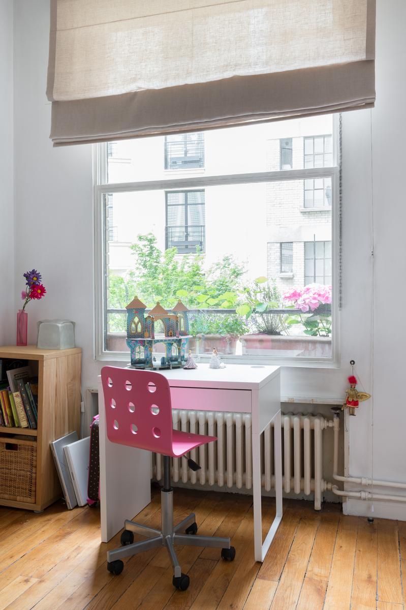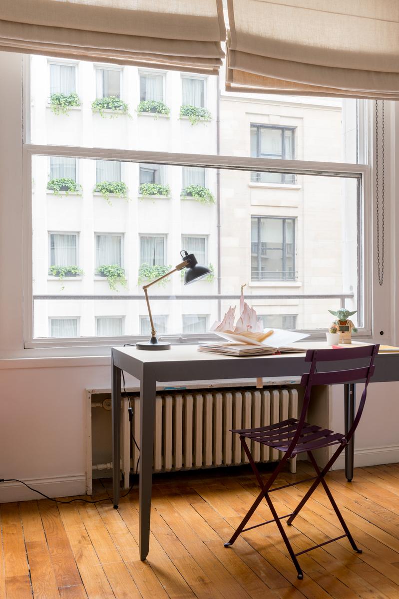 Cette maison au bord de la Seine a l’air décontracté. Vous entrez dans un couloir, où vous trouverez la chambre principale sur la gauche. Elle dispose d’un lit king size (sur lequel est suspendue une toile de bord de mer), de deux fauteuils roses et d’une salle de bain super-style. Ensuite, tout droit devant la porte, se trouve un confortable coin bibliothèque qui s’ouvre sur le salon. À l’extrémité proche, des canapés et des fauteuils discrets sont entourés d’œuvres d’art absorbantes. Il y a aussi une table à manger antique à côté des fenêtres, avec des chaises et des bancs colorés. Dans le coin le plus éloigné, vous apercevrez la cuisine attenante, avec son bar à déjeuner vitré et ses armoires argentées aux lignes épurées.