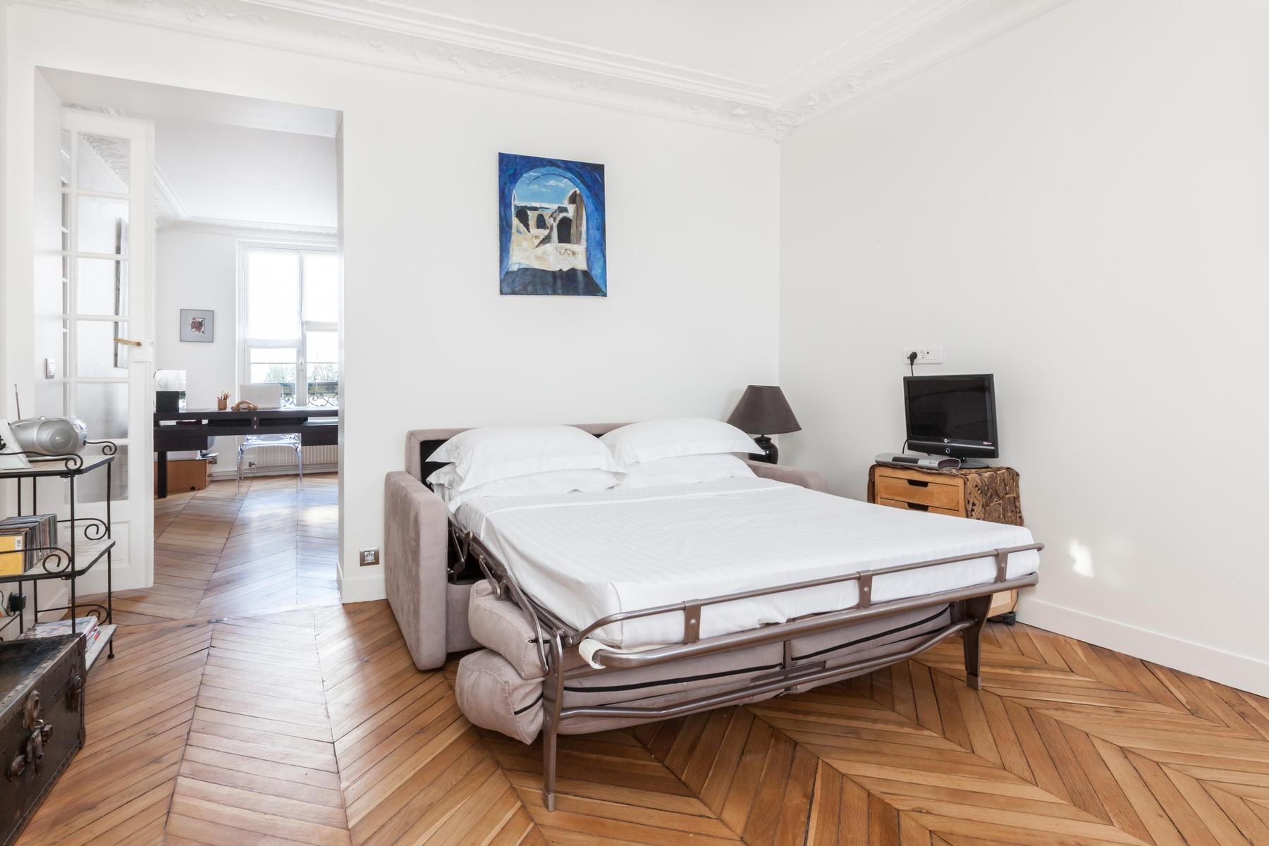 When you set out across crystal oceans, who knew you’d arrive where the breeze is balmy and flowers bloom bright whether it’s December or July. Rue d’Amsterdam is a cheerful hideaway on the fourth floor, where sprawling rooms are filled with luminous art, shelves of books and colourful objets that have travelled from afar. And Batignolles is an equally dynamic area of the city, a walk from the wistful alleyways of Montmartre and close to the cafés that cluster around Gare Saint-Lazare. But don’t stray too far –in this apartment all the glories of the world are spread before you in dazzling, infinite array.