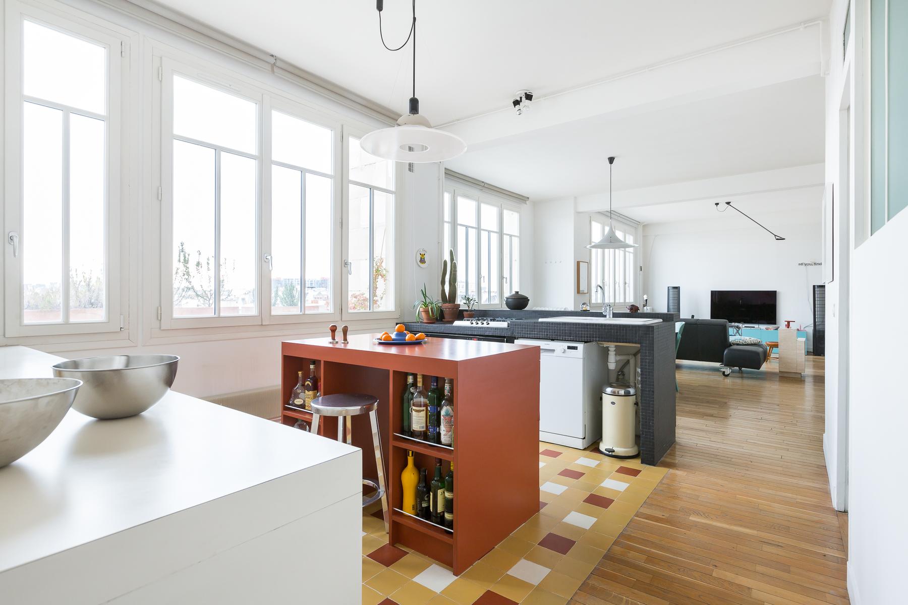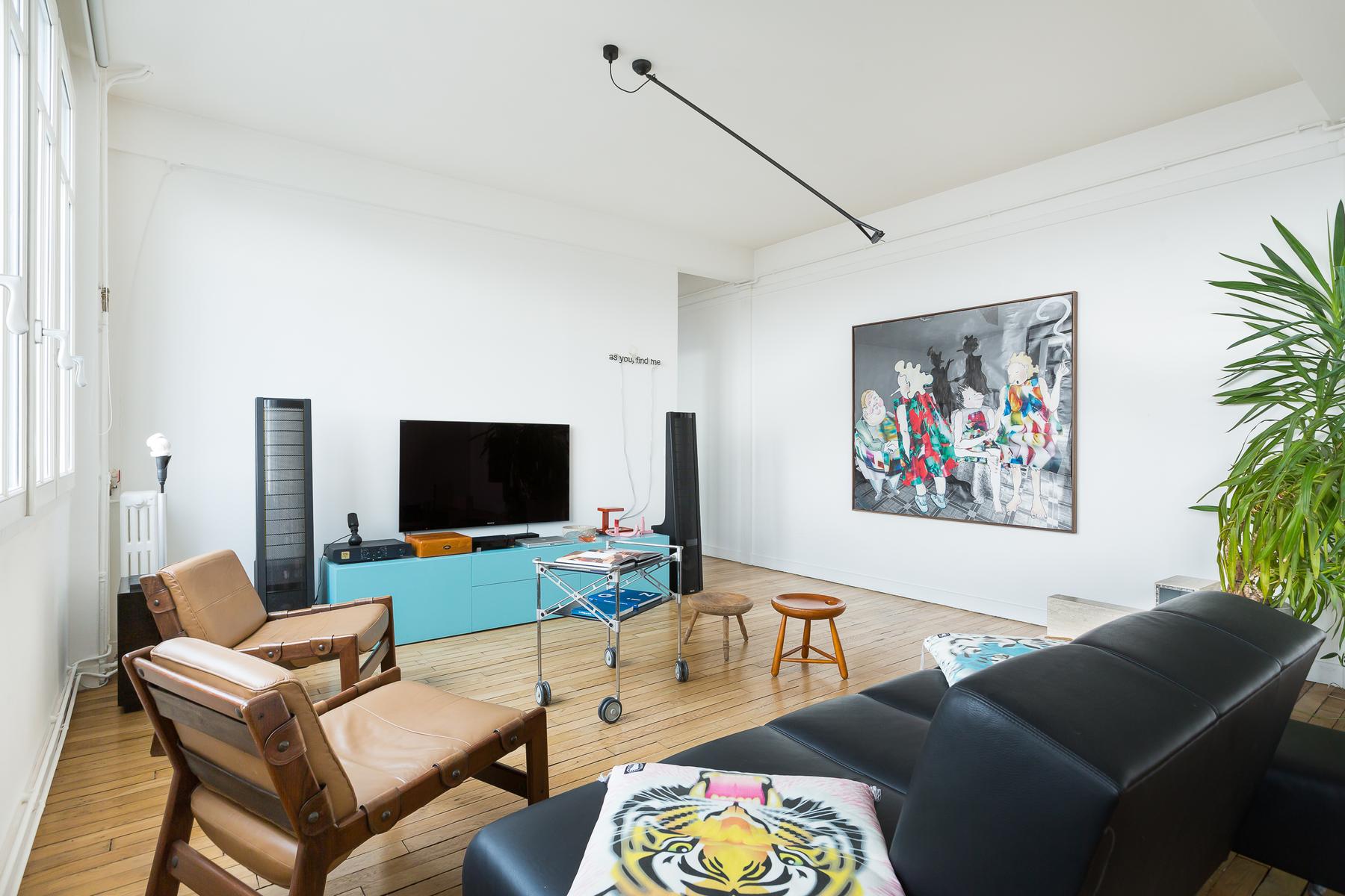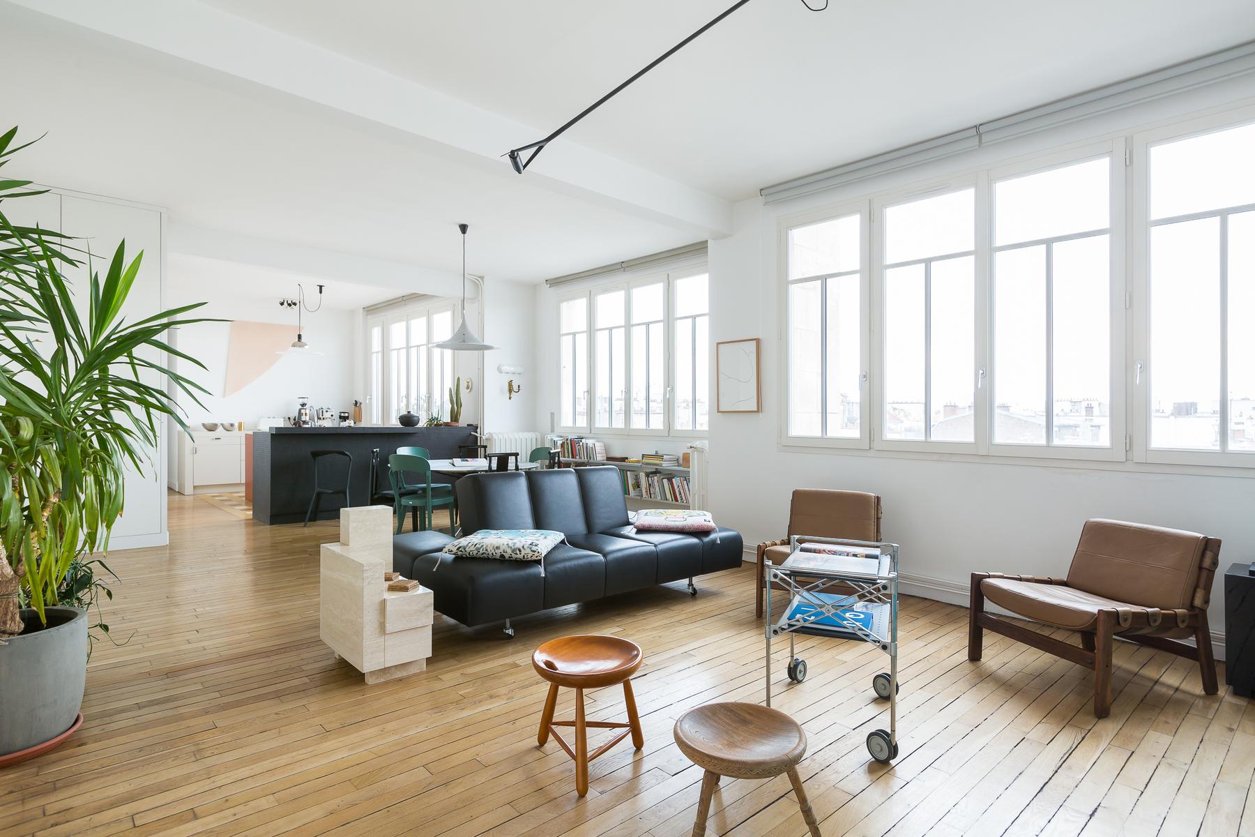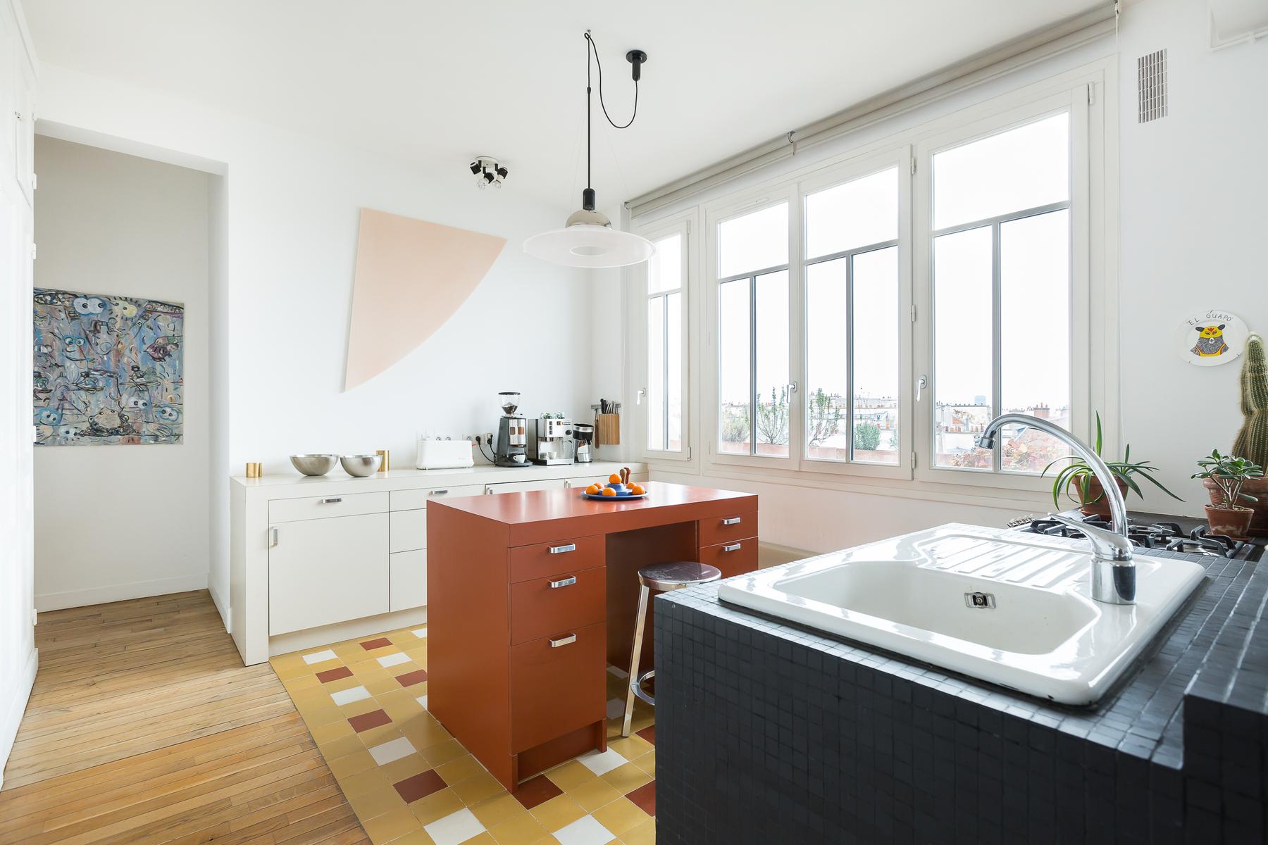 Rue de Bretagne II est un appartement de deux chambres à coucher, une salle de bain au Marais. De grandes fenêtres avec vue sur les toits parisiens s’étendent le long de la cuisine ouverte et du salon, où il y a un canapé en cuir noir, des œuvres d’art contemporain et une table à manger de sept places. Dans la chambre principale, il y a un lit king et de grandes fenêtres et la deuxième chambre a un lit double flanqué d’étagères bien empilées. La salle de bains est équipée d’une douche intégrée et d’une salle de toilette séparée. Au cœur du quartier juif historique, cette maison est proche des stands delis et falafel, ainsi que du plus ancien marché couvert de Paris. Des boutiques de mode vintage et haut de gamme sont également à proximité. Le 2ème arrondissement, qui abrite l’Opéra de Paris doré et le quartier japonais animé, est à l’est et une marche rapide vers le sud vous emmène sur les rives paisibles de la Seine. La station de métro Filles du Calvaire est à environ cinq minutes à pied.