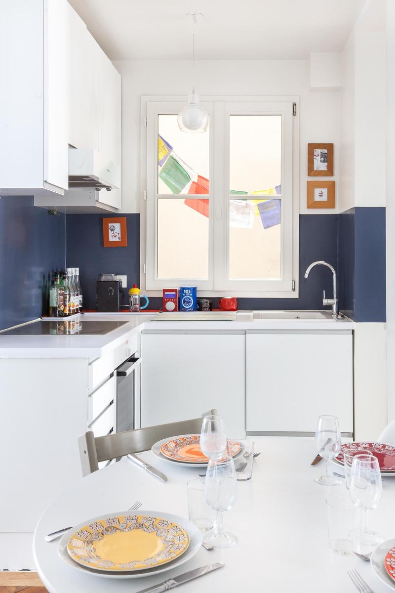 Parquet, murs de craie et linge de maison en albâtre – vos premières impressions de la rue de l’Abbé Grégoire sont d’un calme neutre. Puis plongez plus profondément et vous découvrirez des pops de couleur primaire – jaune vif, rouge vif et bleu frais avec les drapeaux de prière tibétains apaisants qui pendent au-dessus de la fenêtre de la cuisine. Ici, il y a un mélange de moderne et de rustique – les chaises design entourent une table à manger blanche et croustillante, contre des poutres originales peintes et des étagères débordantes de vaisselle. Et sur le canapé du salon, avec un verre de quelque chose de rafraîchissant, pourrait être la meilleure façon de profiter de l’ambiance.