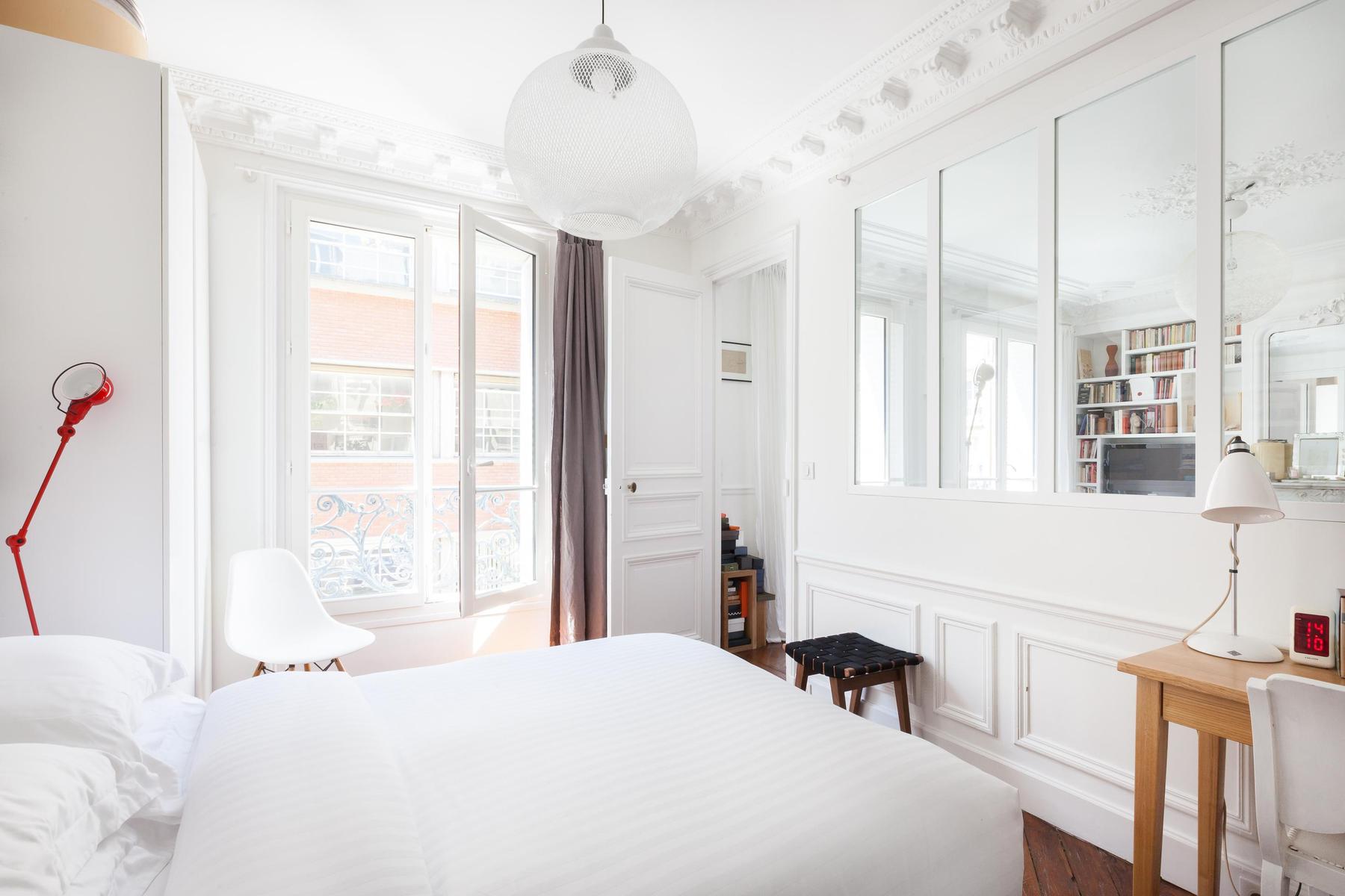 Un mélange enchanteur de styles définit l’esthétique de cet espace lumineux – des éléments d’époque côtoient les lampes en étain vintage. Des bibelots comme un masque tribal, un capteur de rêves et des assiettes en porcelaine peintes racontent des histoires de voyages exotiques, mais vos propres aventures peuvent se dérouler juste après la porte de cette maison. Vous êtes à deux pas de l’élégante et avant-gardiste rive gauche, célèbre pour ses magasins branchés et ses musées bien conservés. Prenez une gorgée de café surplombant la Seine, puis rentrez chez vous dans le calme de la pâle chambre des maîtres.