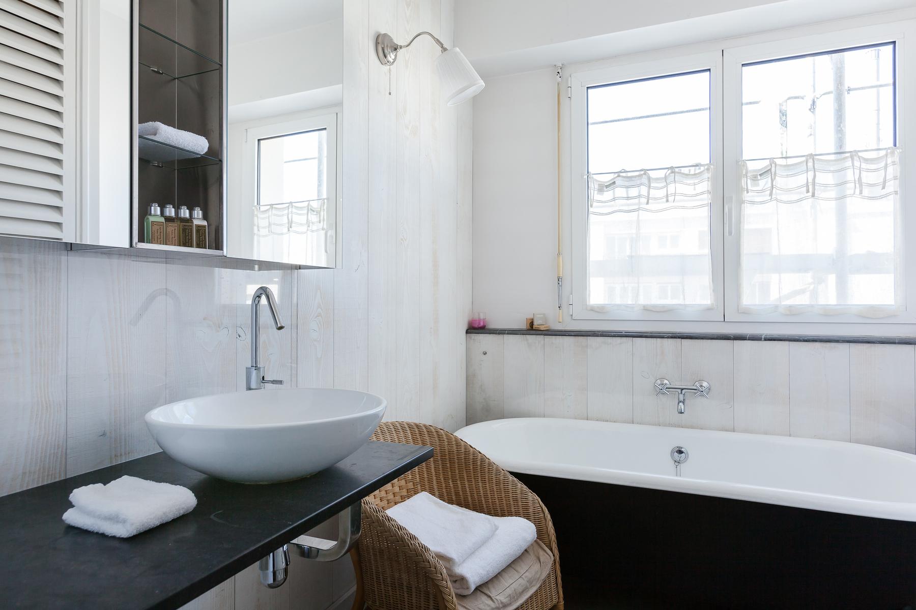 Les chambres à coucher de la maison sont situées le long du couloir à gauche du salon. Il y a d’abord une douce chambre à coucher superposée, puis une élégante salle de bain (avec un bain à roulettes) et une salle de toilette. La dernière à gauche est la chambre à coucher principale, qui est gris pâle et agréablement paisible.