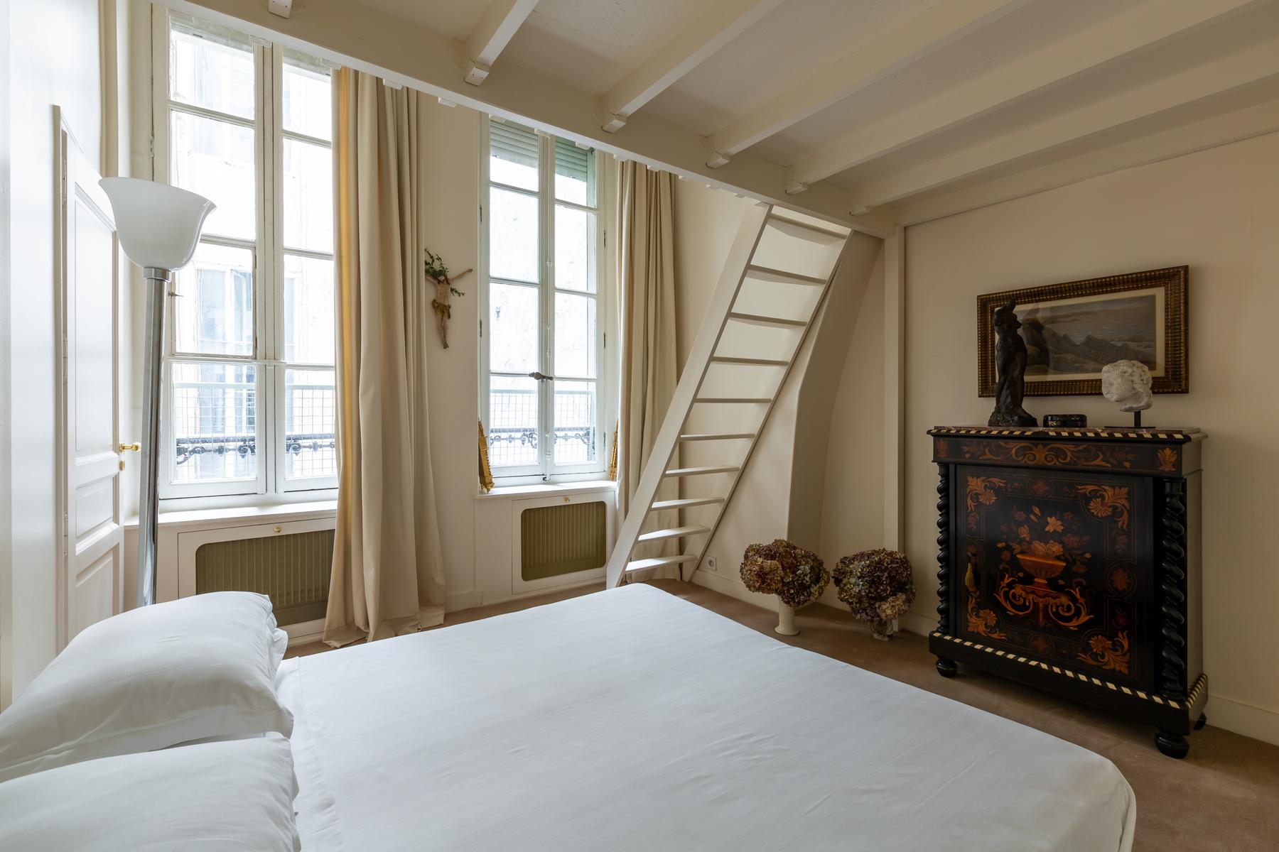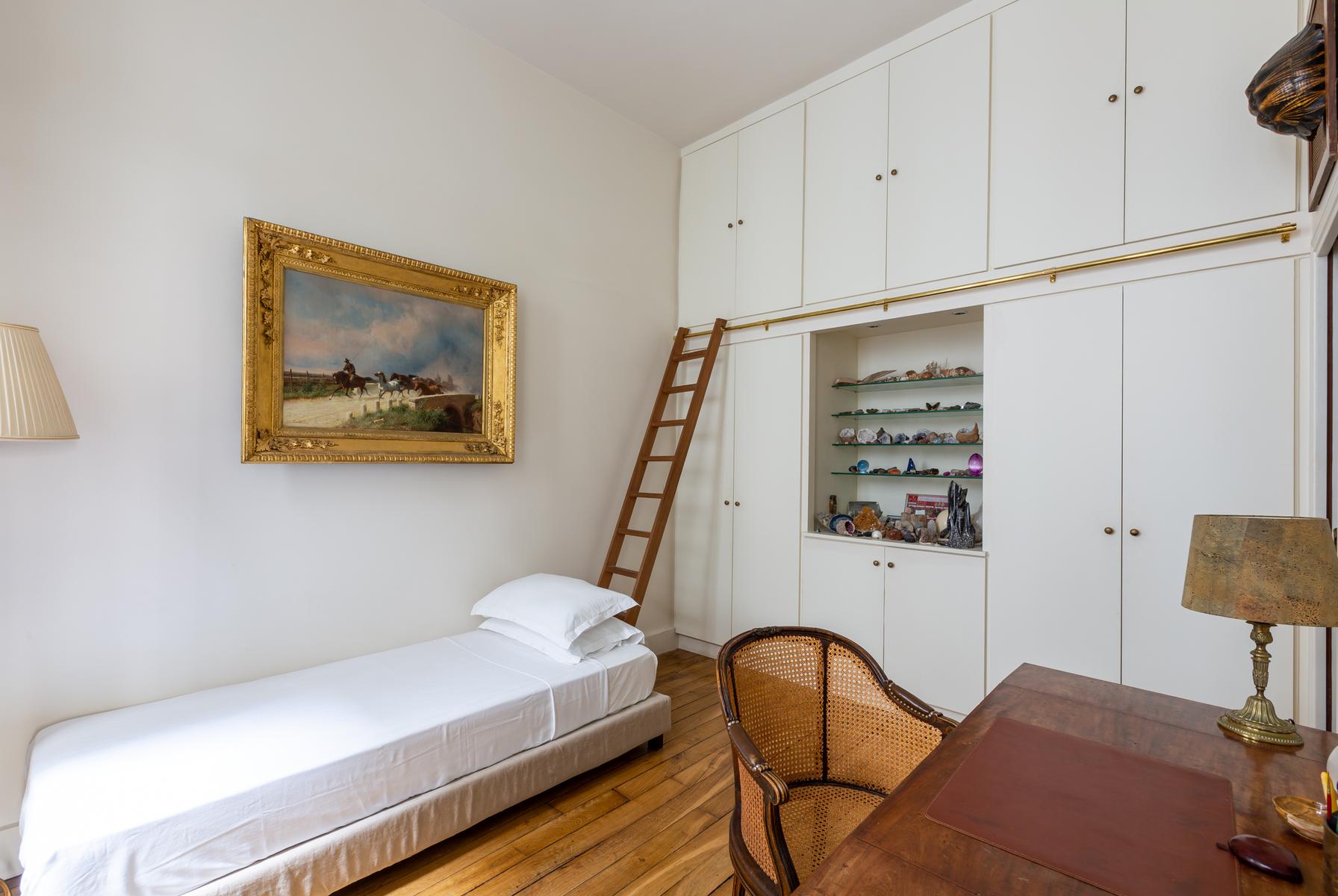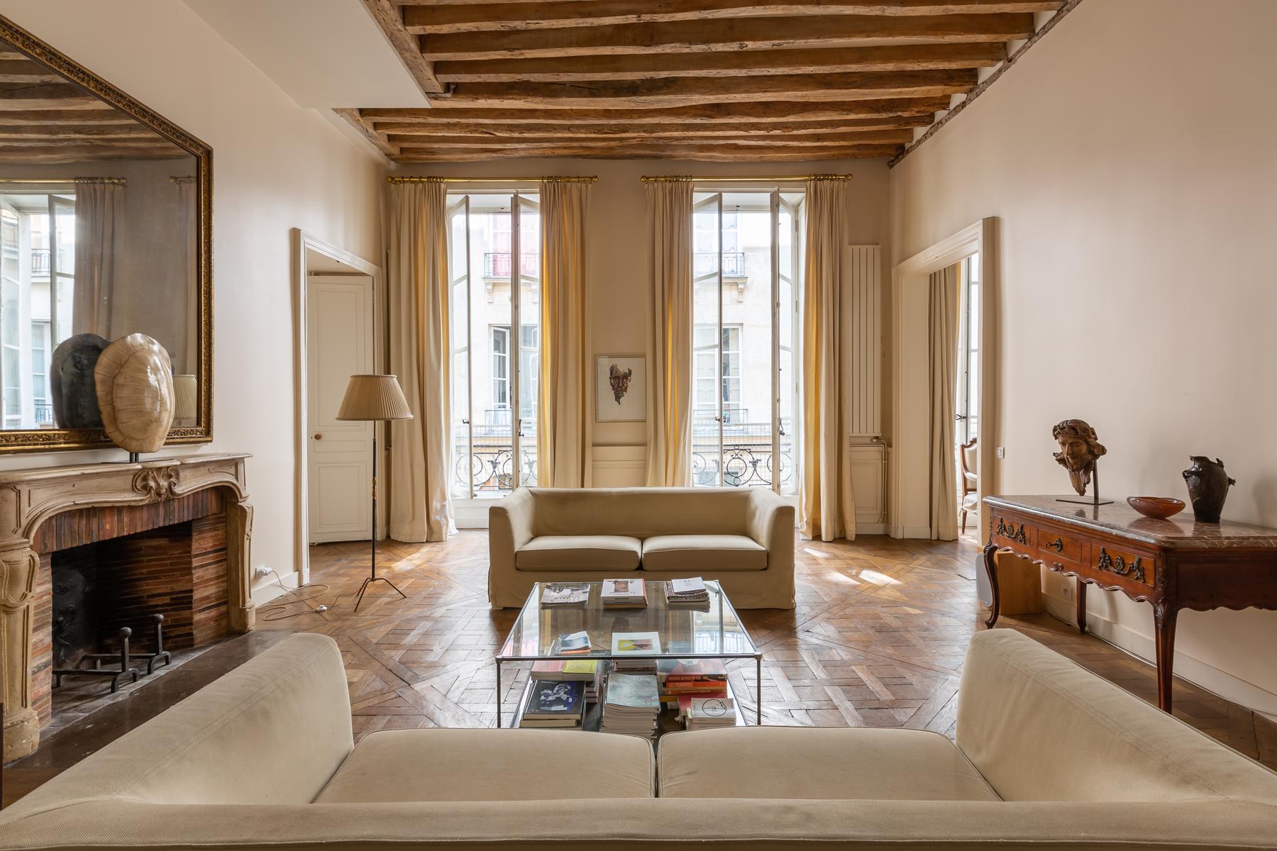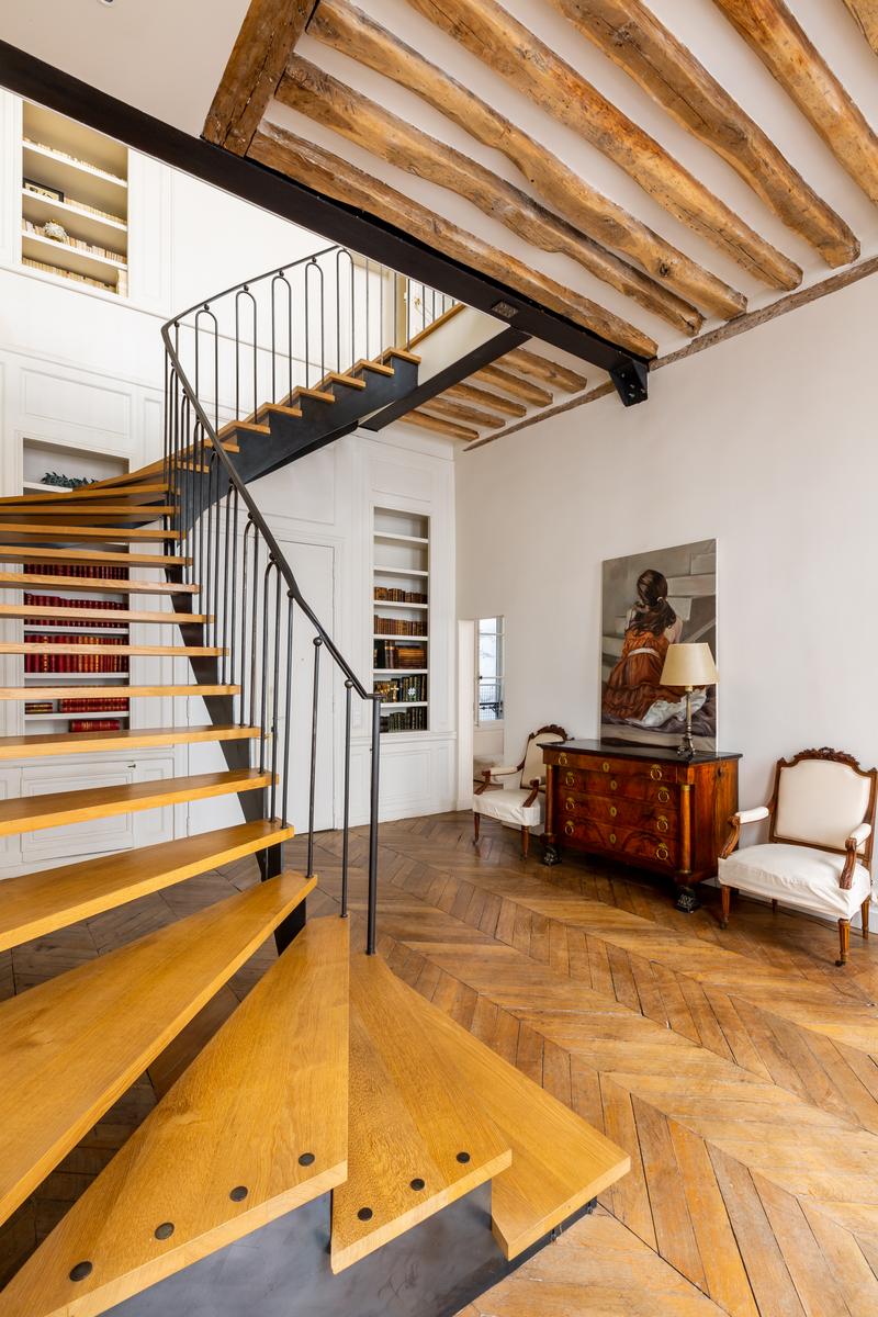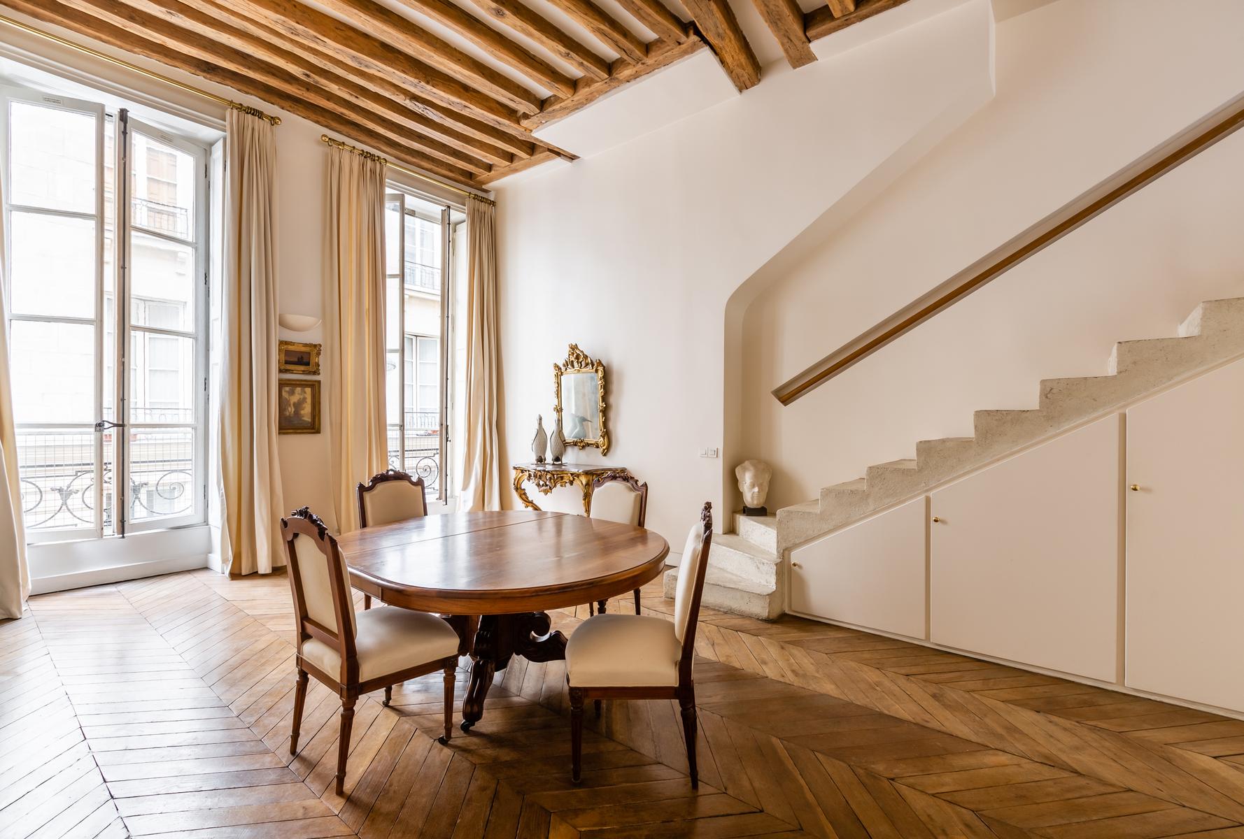 Rue de Louvois est une maison de quatre chambres à coucher, trois salles de bains à Louvre – Opéra. Parquet à chevrons, cheminées opulentes en marbre et plafonds à poutres apparentes ne sont que quelques-uns des détails originaux que vous remarquerez dans les espaces de vie de cette maison, meublés de belles antiquités et d’œuvres d’art classiques. La chambre principale, qui dispose d’un grand lit, se fait dans le même style frappant. L’emplacement est tout aussi impressionnant – vous êtes très central ici, à quelques pas du Jardin des Tuileries, du Louvre et du musée d’Orsay. Et ce n’est qu’à cinq minutes à pied de la station de métro la plus proche, Pyramides.