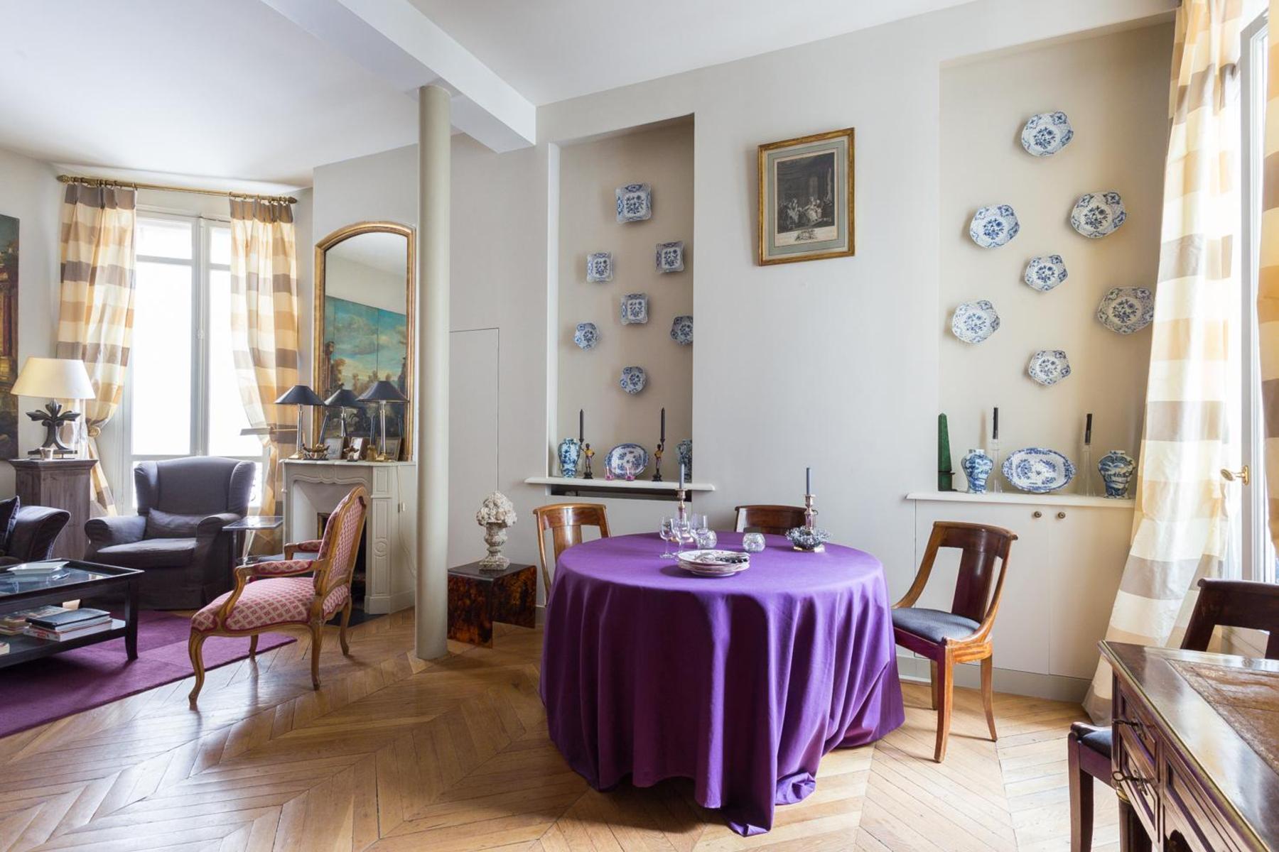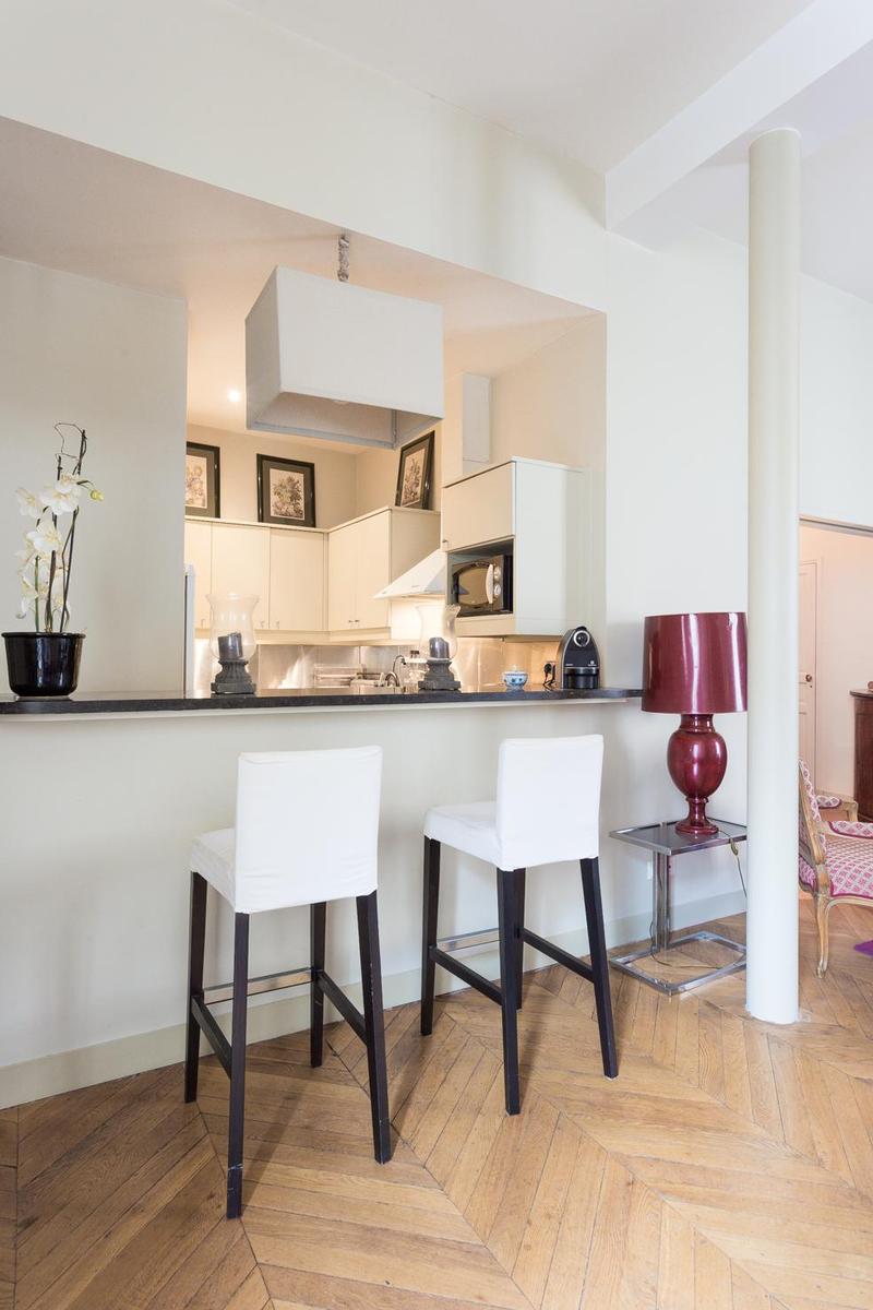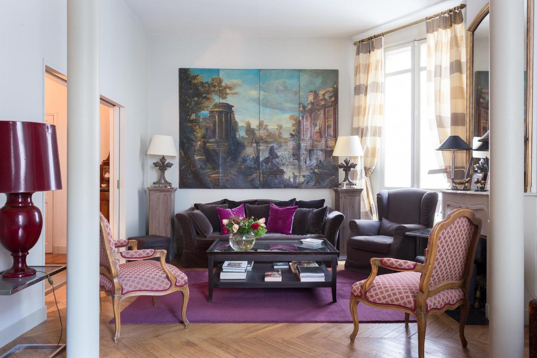Bright plum, bold red and rich burgundy – Rue de Penthievre II is richly toned, perched above Parc Monceau’s leafy shade. The sitting room is cosily arranged with soft-mauve sofas and upholstered chairs, while the dining table has seating for four, dressed in regal purple. The study is warm and inviting, with shelves of gilt-edged tomes and leather hardbacks, and an antique desk for those with business to attend to. But if your trip is more for pleasure, the iconic avenues of the Champs-Élysées are just a stroll away, while picnicking in elegant Parc Monceau is just as easy to plot.