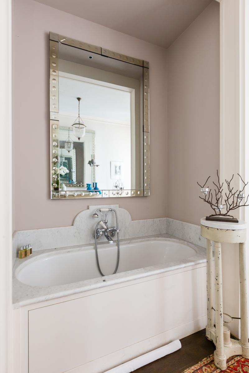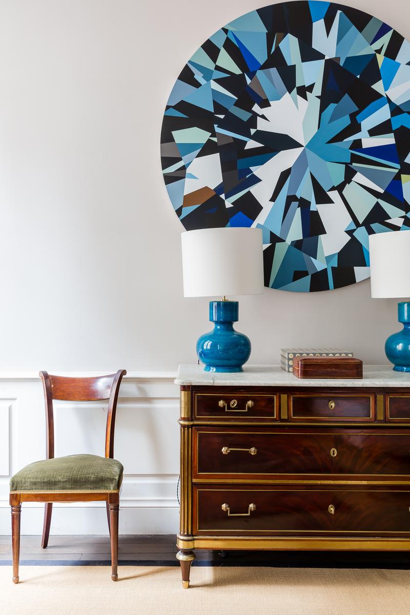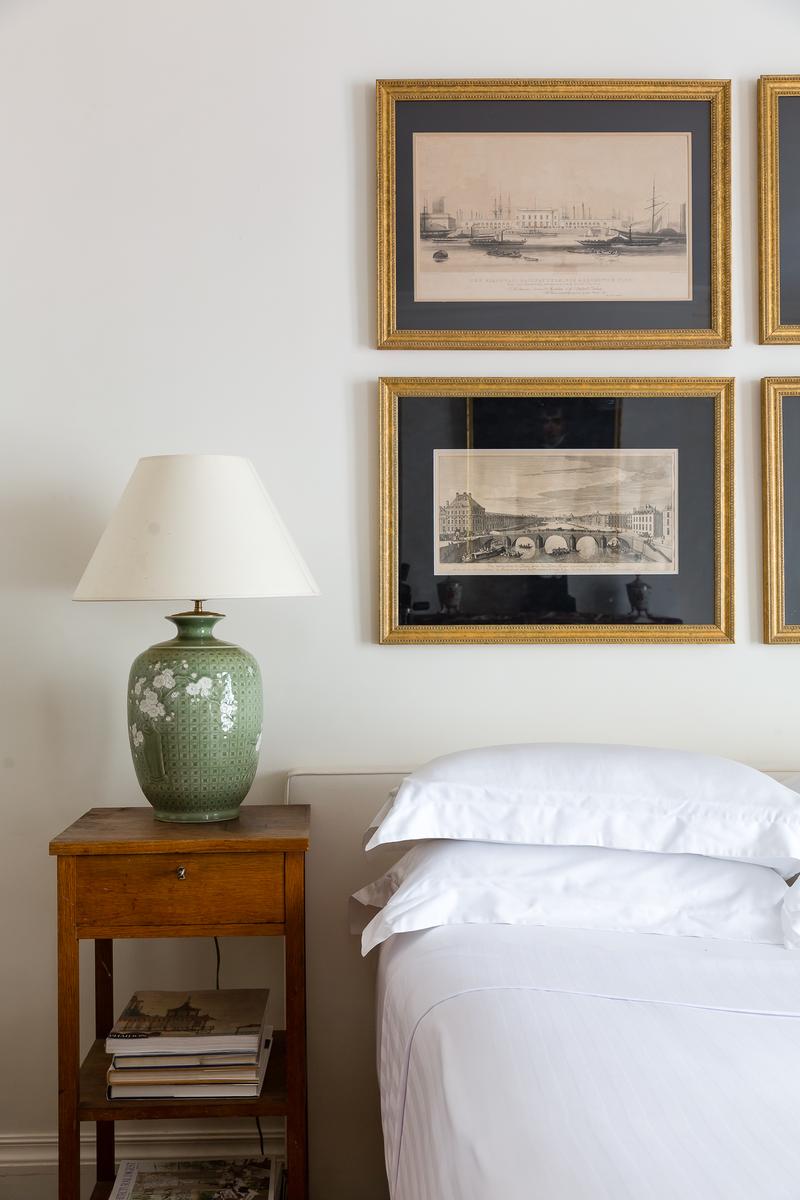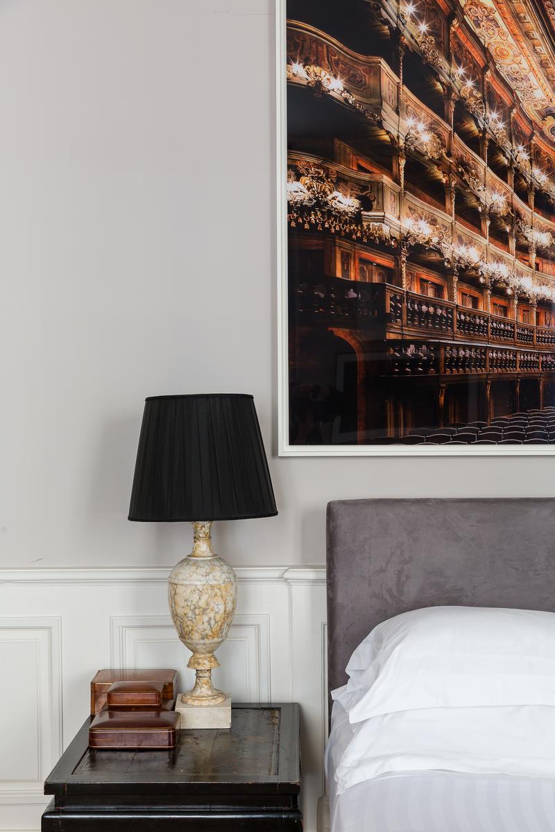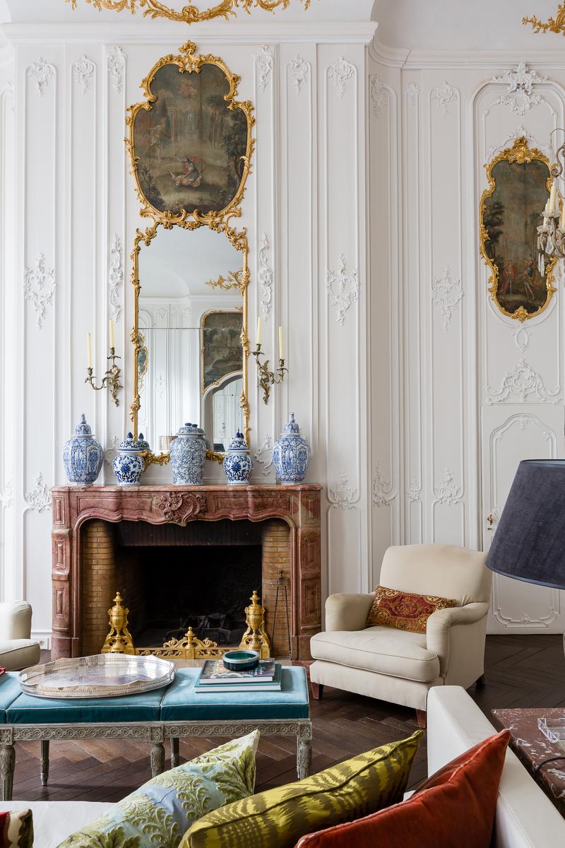 Des antiquités élaborées aux murs et plafonds dorés, tout ce qui se trouve à l’intérieur de la rue de Varenne III fait une déclaration. La porte d’entrée s’ouvre en face de la salle à manger, qui possède une longue table polie. Il jouxte un salon – richement décoré, avec de gracieux canapés et tables d’appoint et plusieurs peintures à l’huile. Puis un deuxième salon se trouve à droite du couloir. Bien que plus petit, il est tout aussi grand, avec des étagères en turquoise et en or, bordées d’anciens volumes. Une porte d’entrée vous conduit à un passage qui mène à une salle de bains, à une salle de bains et à la chambre des maîtres légèrement plus subtile (mais toujours splendide).