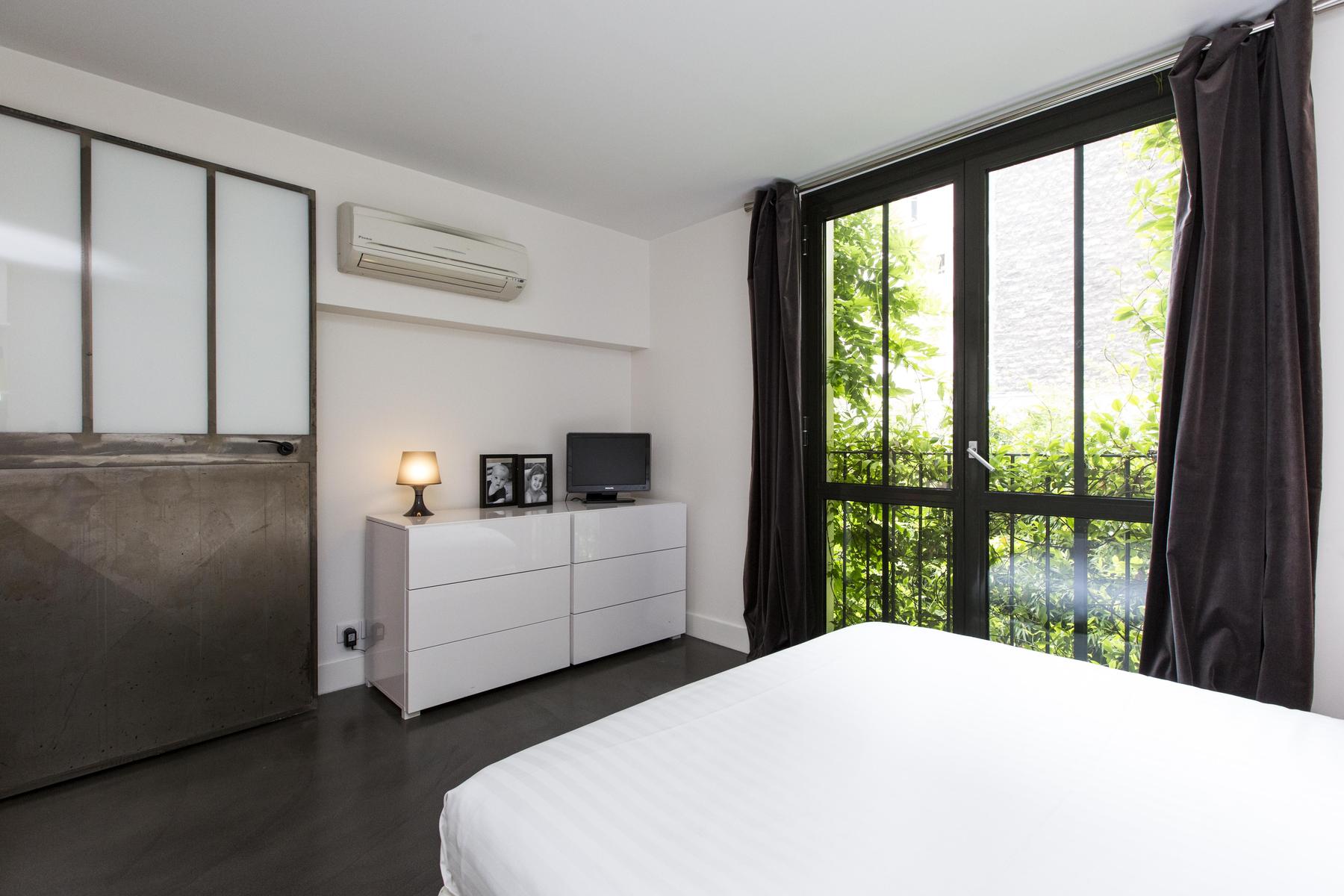 And who’s to say that something isn’t rue des Dames? Along a narrow, lively street a-bustle with character, this modern home is all lovely light and space. The ceilings are sky-high, the palette cloud-bright and, prettiest of all, you’ve a patio bearded by olive trees and bamboo. Modern, minimalist and temptingly close to Montmartre? We think any bobo might blush with envy.