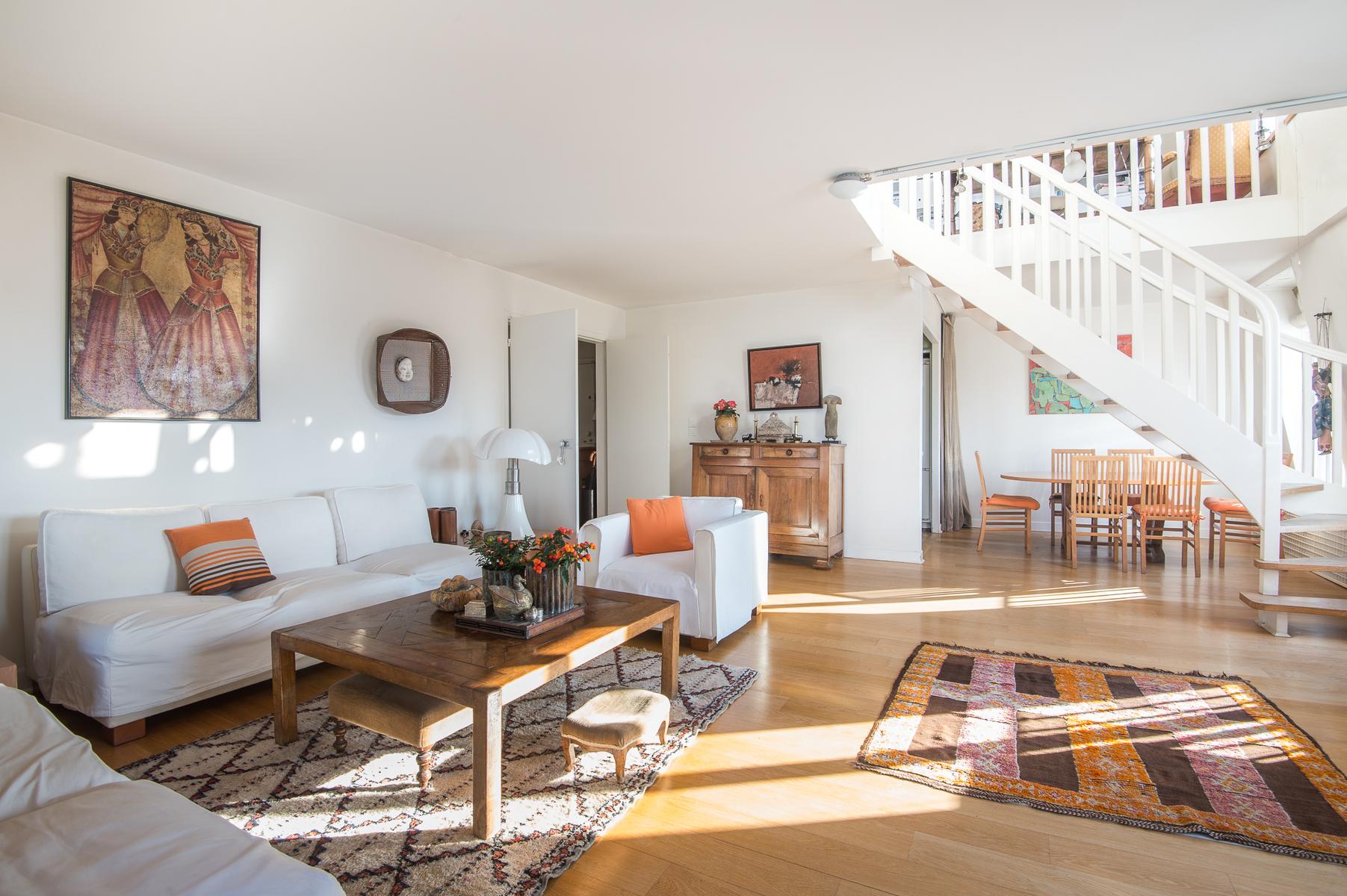 La rue des Haudriettes est un appartement de deux chambres, deux salles de bains au Marais. Les pièces peintes en blanc de cette maison sont meublées avec des pièces discrètes, mais avec des accessoires et des œuvres d’art exotiques – les figures sculptées de la chambre à coucher principale sont particulièrement frappantes. De plus, il y a une terrasse (avec vue sur le toit) à chaque étage. Les nombreux commerces, cafés et bars du Marais sont tous à proximité, et vous êtes également à proximité de la plus ancienne place de la ville, la place des Vosges. Le Centre Pompidou et le Musée Picasso sont également à quelques minutes à pied, et la station de métro Rambuteau n’est qu’à six minutes de marche.