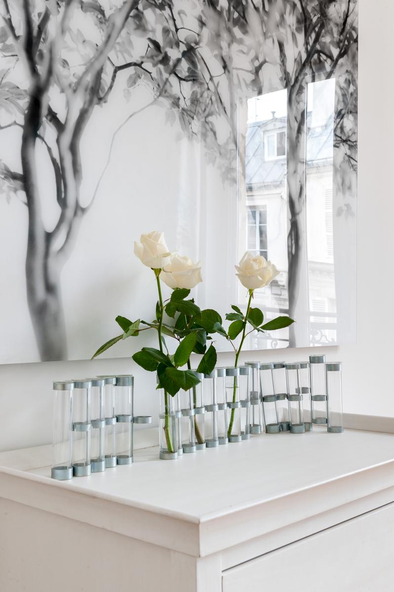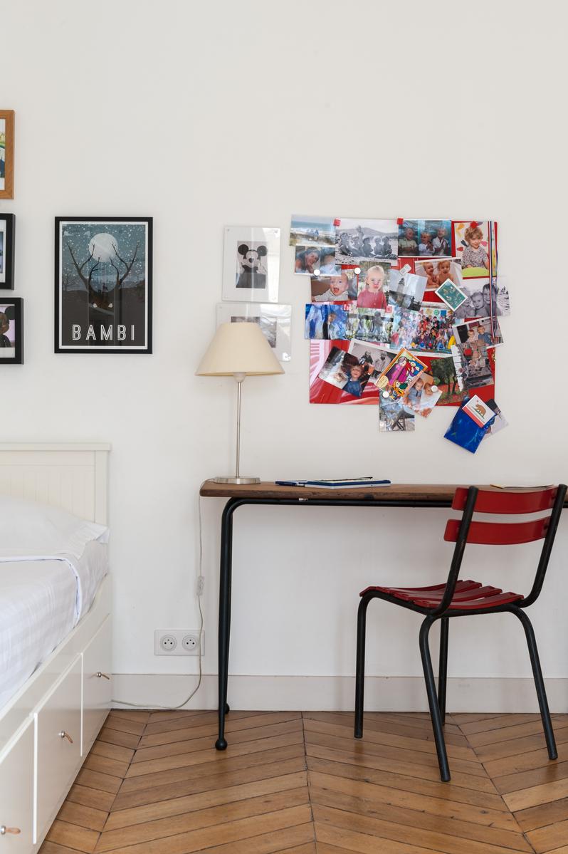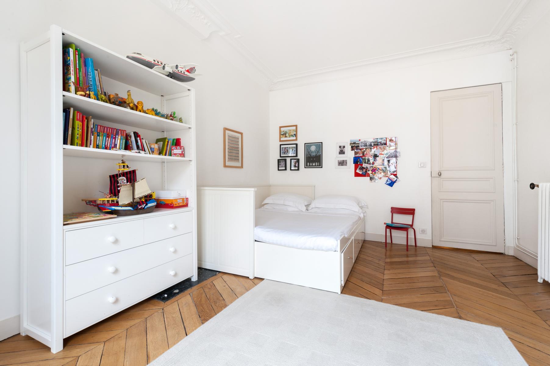 La rue des Moines II s’installe dans un bâtiment classique. A côté des parquets, des moulures élégantes et des fenêtres de balcon, vous trouverez un tapis imprimé de feuilles tourbillonnantes, du papier peint floral et des silhouettes d’arbres imprimées sur le mur de la pépinière. Dans le vaste salon, un lustre de cristal est suspendu au-dessus d’une table à manger gris ardoise, de jolis tableaux sont assis sur un foyer complexe, et une fenêtre intérieure donne sur la cuisine moderne. Essayez le fameux marché bio sur le boulevard des Batignolles, ou restez à la maison et cuisinez dans la grande cuisine