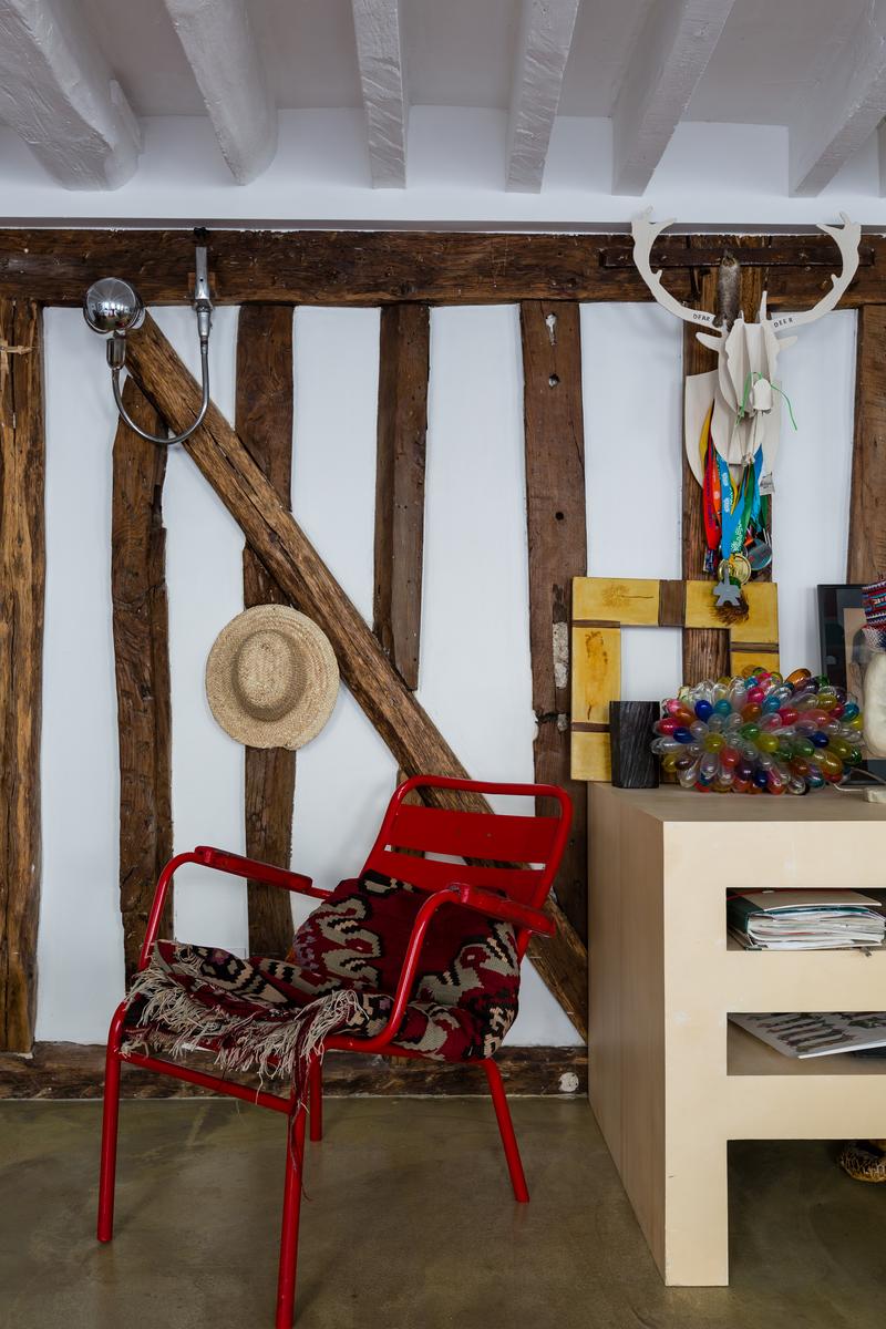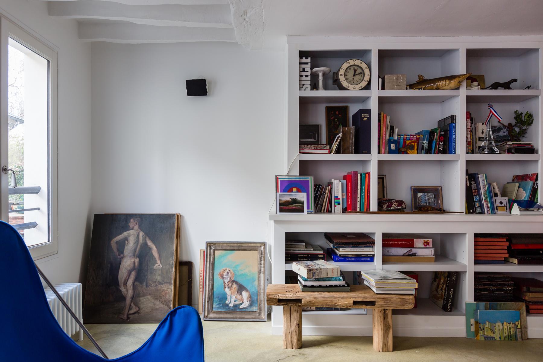 En plus d’être plein de détails originaux, le salon de caractère de cette maison est meublé de pièces mal assorties – certaines exotiques – et parsemées d’œuvres d’art colorées.