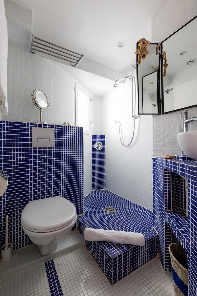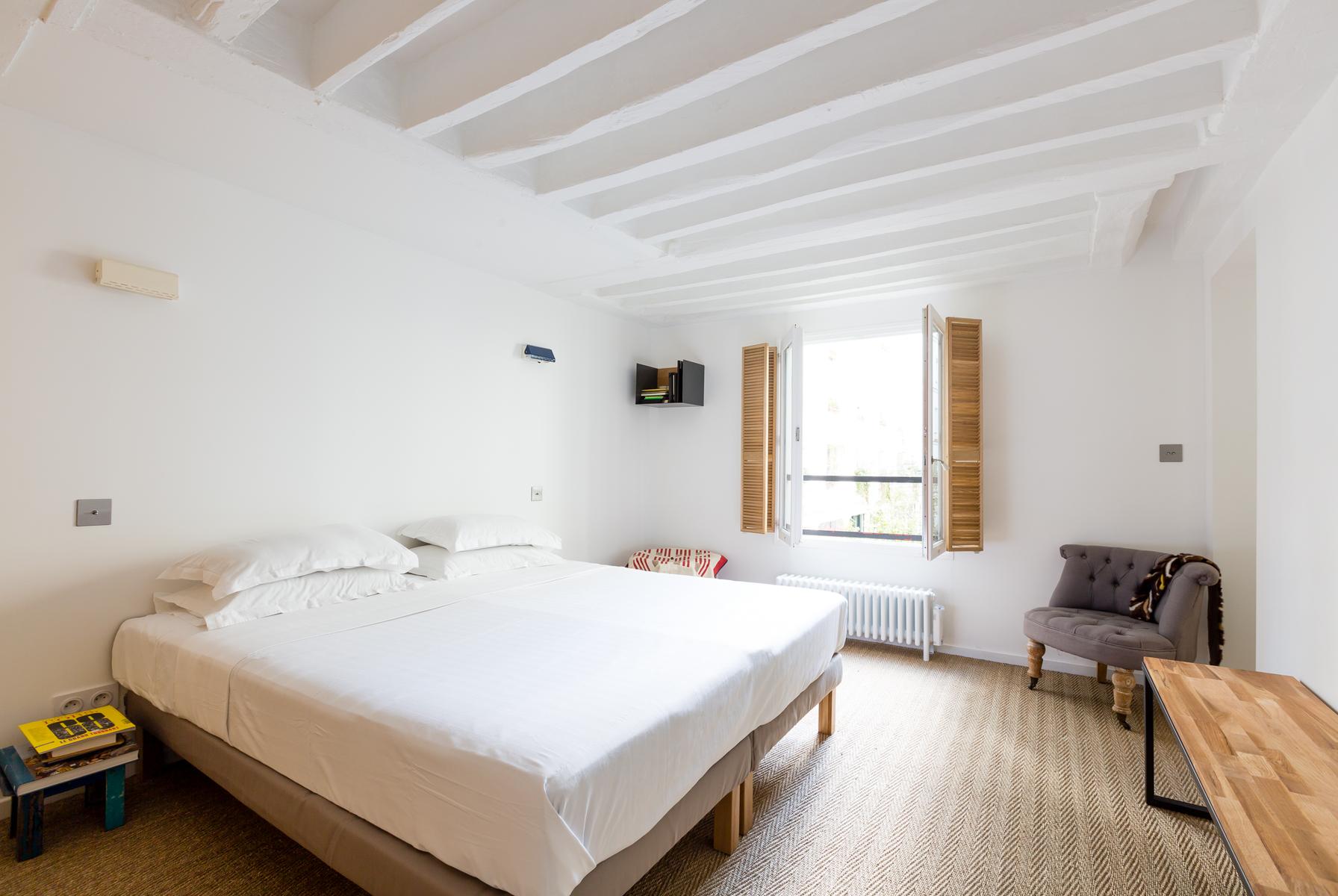 La chambre des maîtres ensuite, avec sa palette de couleurs douces et son mobilier sobre, est d’un calme contrasté. A quelques pas du Bon Marché, vous êtes également à proximité du Jardin du Luxembourg. De plus, ce quartier élégant abrite de nombreux restaurants et quelques musées.