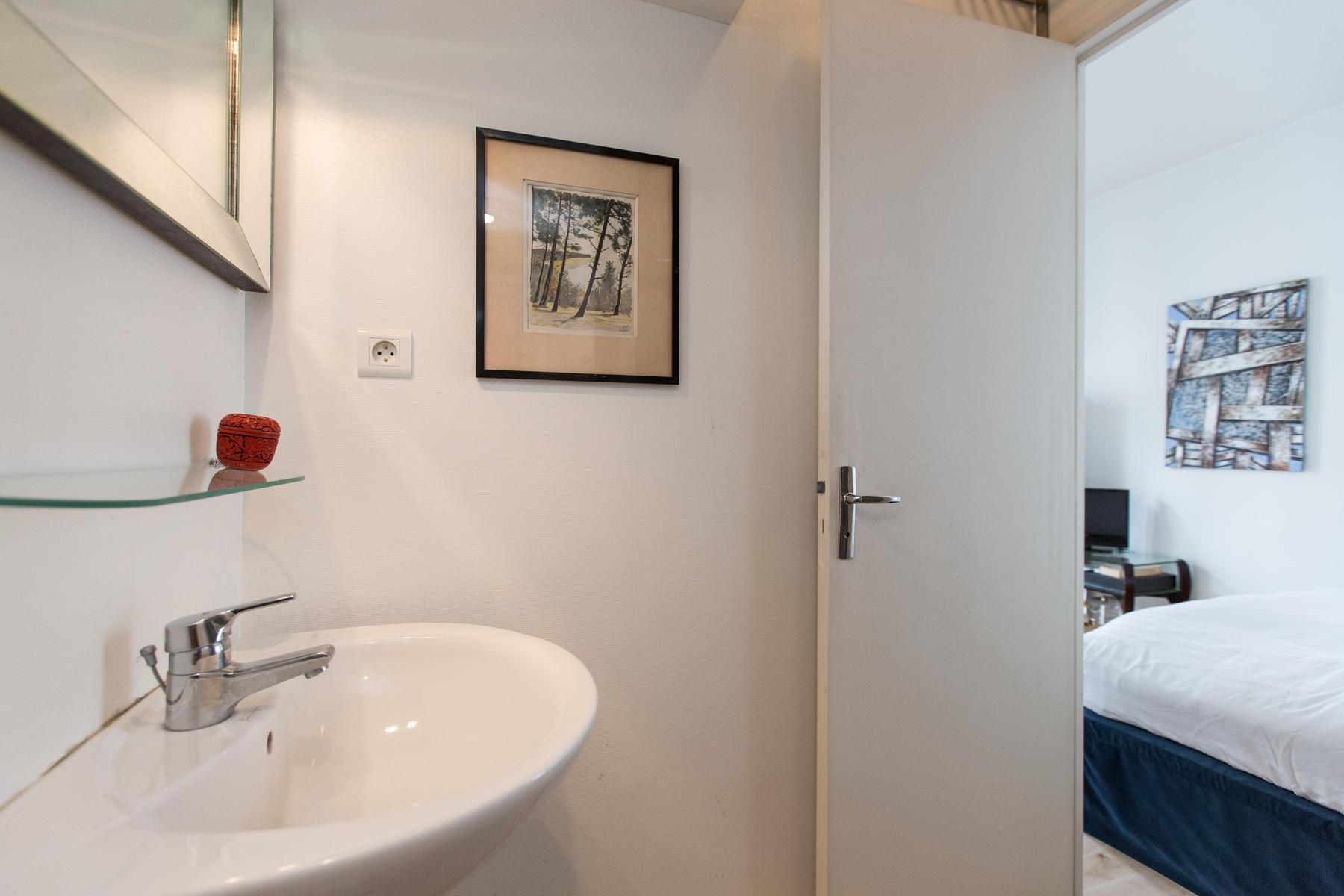 En parlant de choses uniques, il faut jeter un coup d’œil à la garde-robe métallique, utilisée par l’armée française pendant la Seconde Guerre mondiale, ainsi qu’à la courbe nuageuse du miroir de la chambre à coucher. Ouvrez la fenêtre et laissez entrer l’air de la campagne, ou rafraîchissez-vous plutôt dans la petite mais jolie salle de douche.