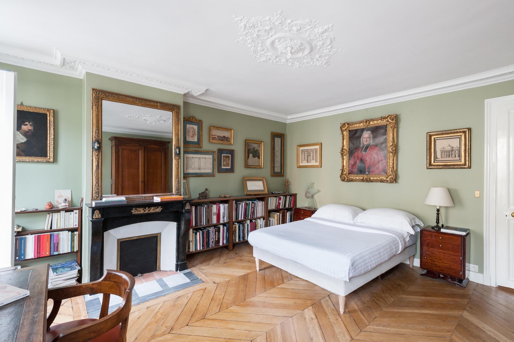 Peintures classiques dans des cadres sculptés, des tomes en cuir, des meubles anciens rembourrés – en entrant dans la rue du Faubourg Montmartre, vous découvrirez une histoire de famille qui s’étend sur un siècle. Un air royal imprègne chaque espace élégant – dans la salle à manger formelle, les chaises traditionnelles en acajou s’assoient côte à côte de la table à manger, surplombée de portraits ancestraux. Un bureau antique dans la chambre principale offre un endroit paisible pour faire une pause, tandis que l’odeur enivrante de fleur d’oranger sur la terrasse sur le toit est le complément parfait d’un petit-déjeuner à la fresque.