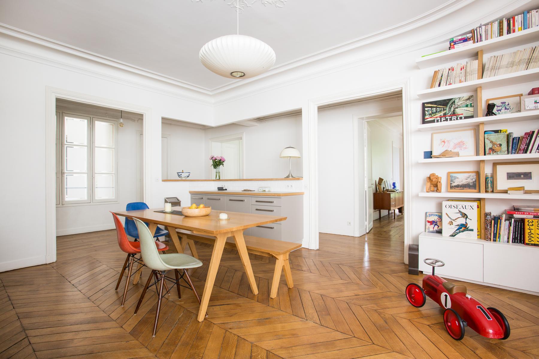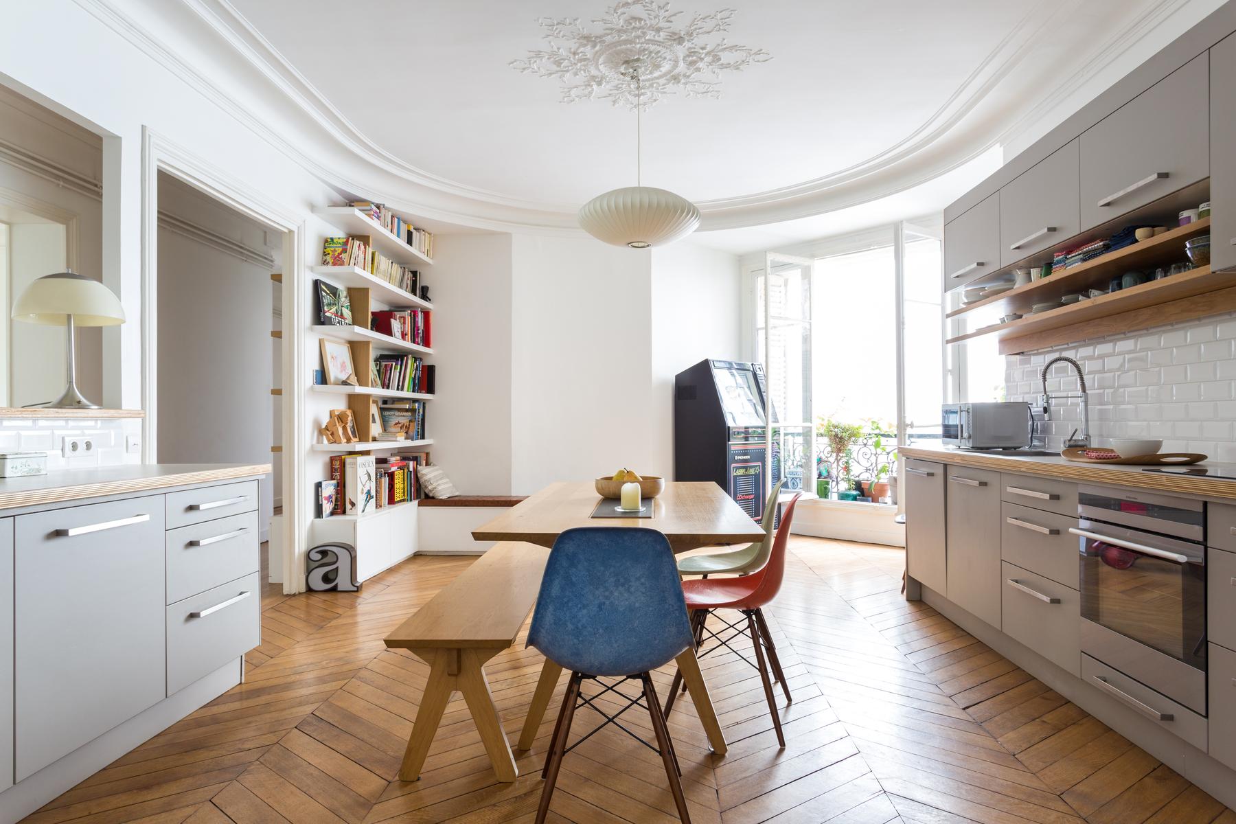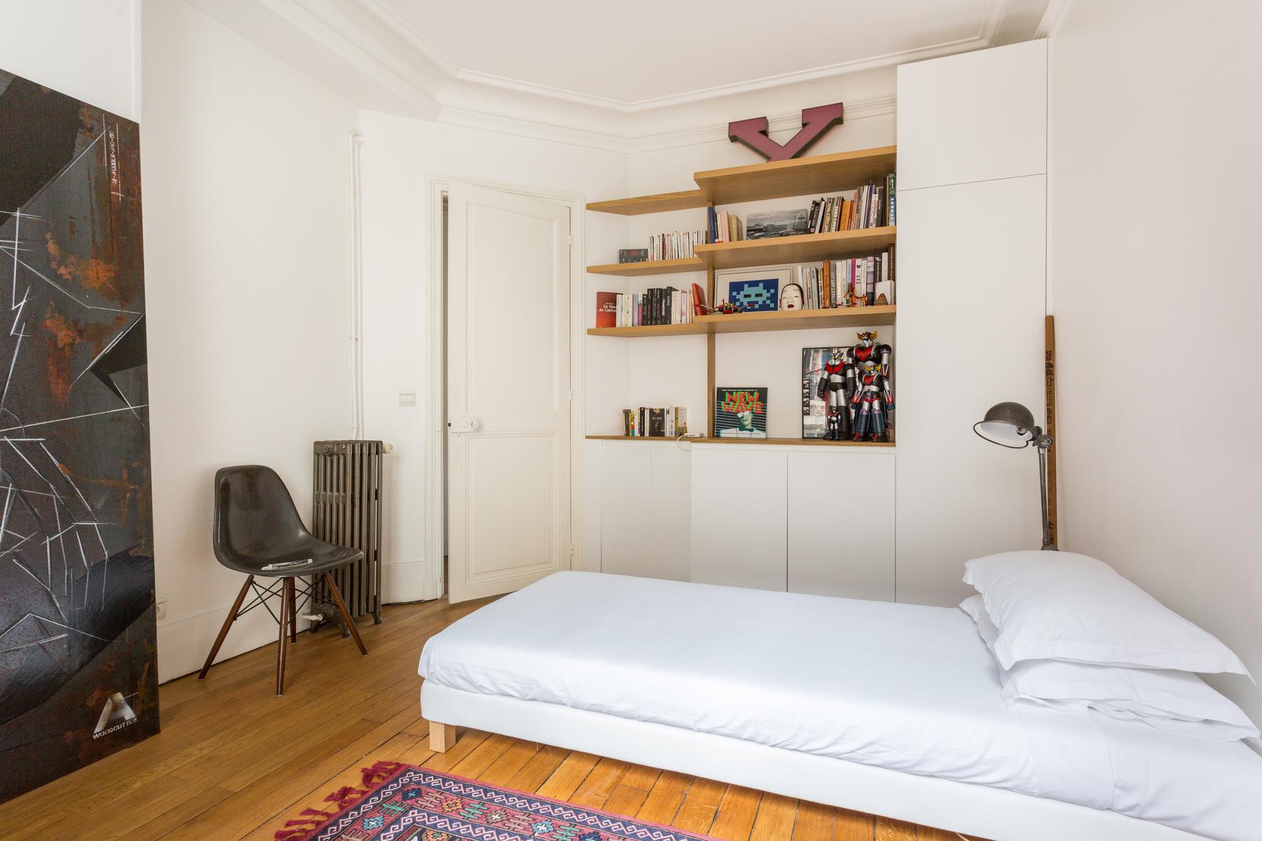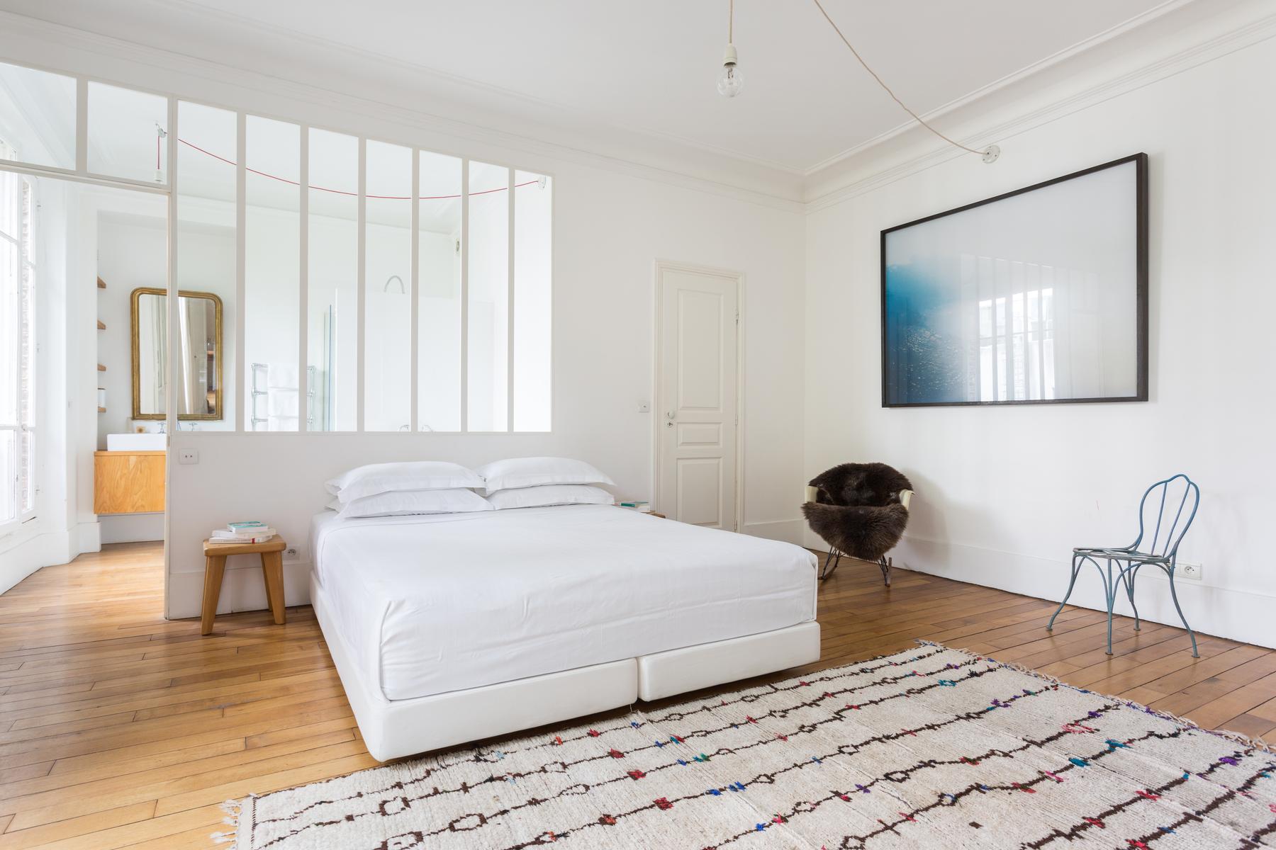 Rue du Faubourg Poissonnière III est une maison de quatre chambres, trois salles de bains à côté de Montmartre et du Sacré-Coeur – Pigalle Sud. Rendue élégante par des détails originaux, cette maison regorge également de pièces plus contemporaines, de la table à manger et du juke-box de la cuisine aux fauteuils rétro du salon, en passant par le juke-box de la cuisine (de travail). La chambre principale – une chambre d’un blanc pur avec un grand lit et une généreuse salle de bain – est plus calme et élégante. Vous êtes à proximité de Montmartre et de l’Opéra, très fréquenté et animé, et vous trouverez les rues environnantes parsemées de bars et de brasseries. La station de métro la plus proche, Barbès-Rochechouart, est à quatre minutes à pied.