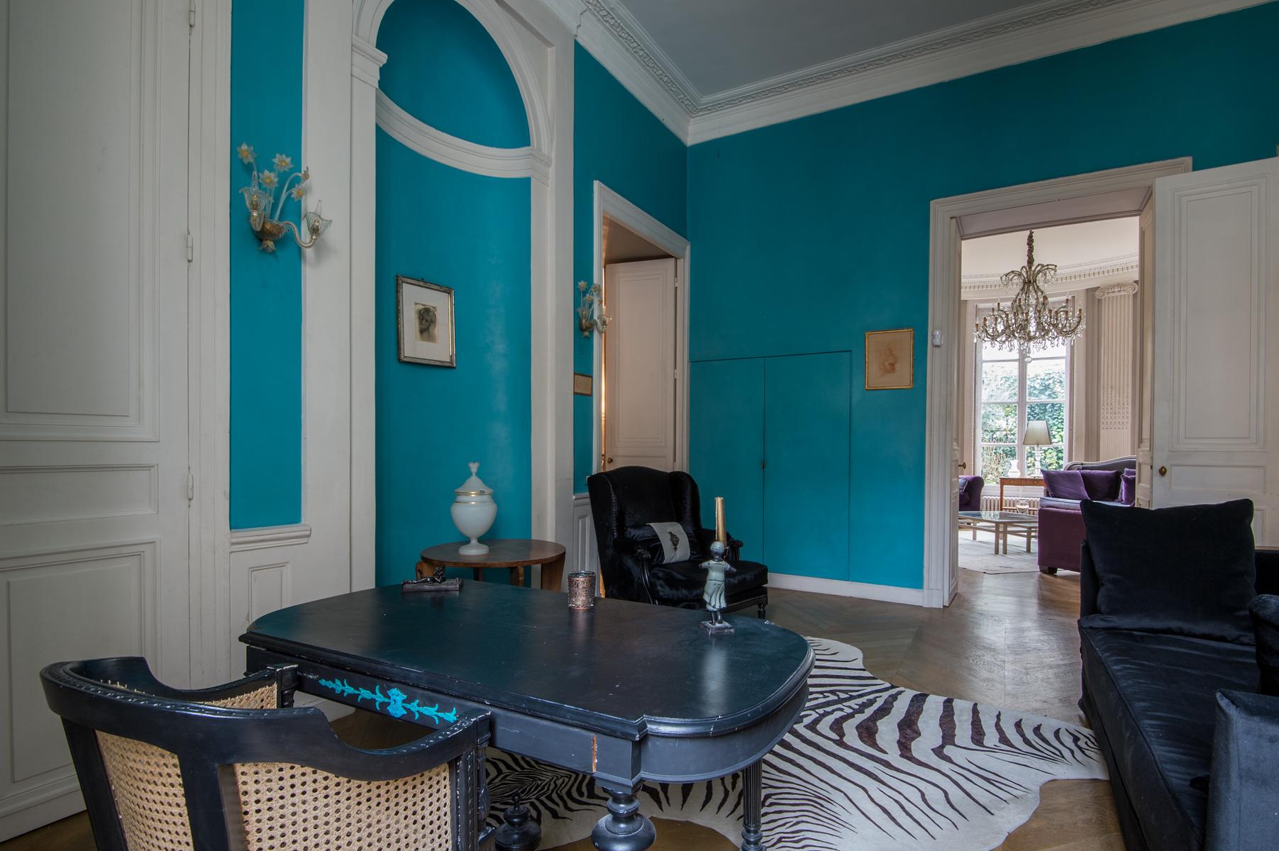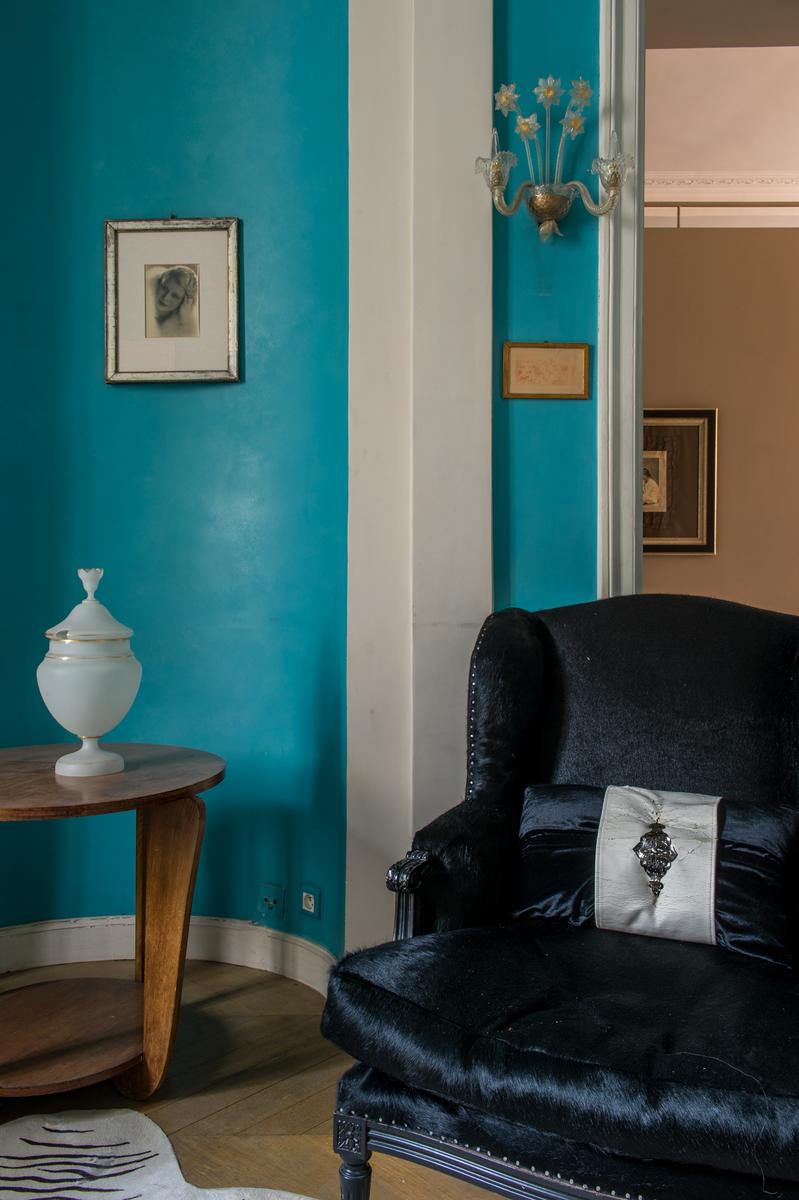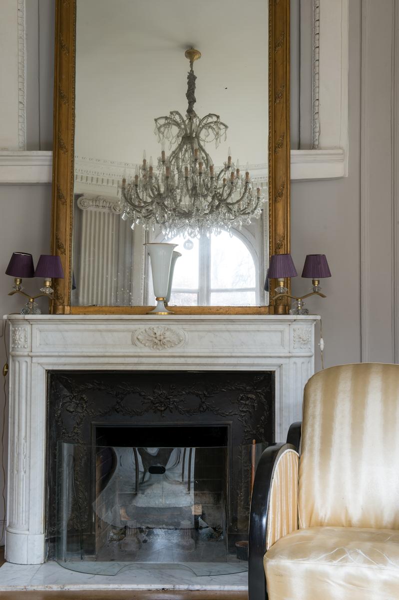 Du magnifique salon, une pièce circulaire aux moulures classiques aux frappants canapés violets et de très belles