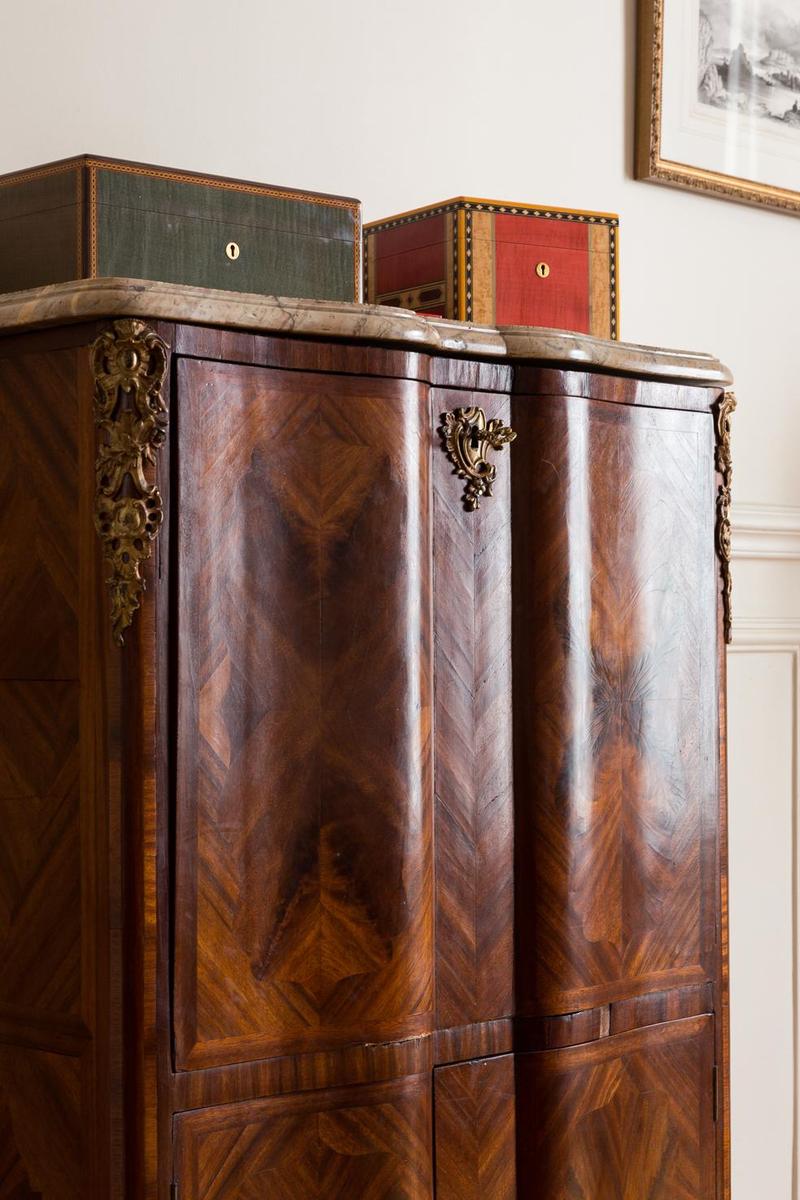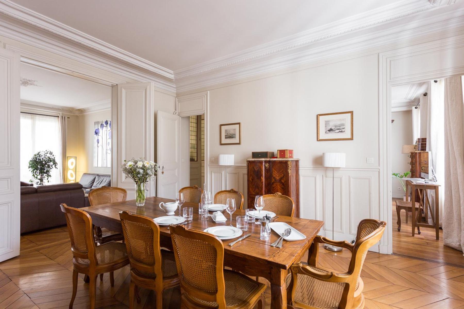 L’extérieur de la rue du Général Foy est fait de pierre miellée avec des fleurs haussmanniennes, et à l’intérieur l’histoire continue. Hauts plafonds, lambris traditionnels et peints dans des tons crème subtils, ses pièces sont une toile de fond élégante pour une collection de meubles Louis XV. Il y a une garde-robe ornée dans la chambre double – héritée il y a longtemps par votre hôtesse – ou vous pourriez admirer la poitrine ornée d’or dans la grande salle à manger. Et que vous tiriez les rideaux de soie avant de vous rassembler à la table polie ou que vous vous retrouviez dans l’un des fauteuils en cuir à côté de la cheminée en marbre, vous constaterez que dans un environnement aussi riche, les heures passent d’autant plus agréablement.
