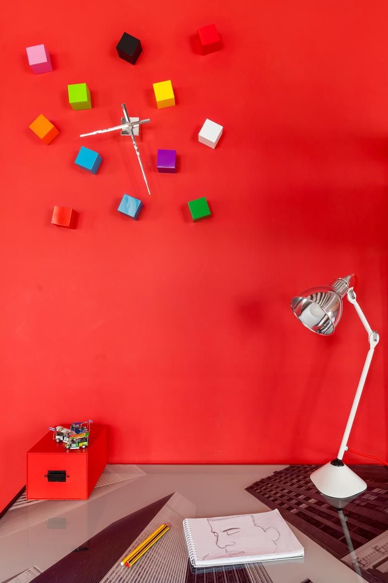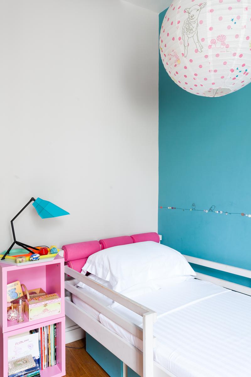 Des tapis de fourrure et des coussins recouvrent le large canapé à côté de la table basse, et d’ici un couloir à gauche mène à une cuisine à panneaux de bois, la chambre des maîtres et la première de deux chambres d’enfants, celle-ci avec des bébés oiseaux décorant un mur bleu. La salle de bains se trouve au bout de ce couloir, et vous trouverez la chambre des autres enfants, et son ensemble de lits superposés, à travers la porte du mur droit du salon.