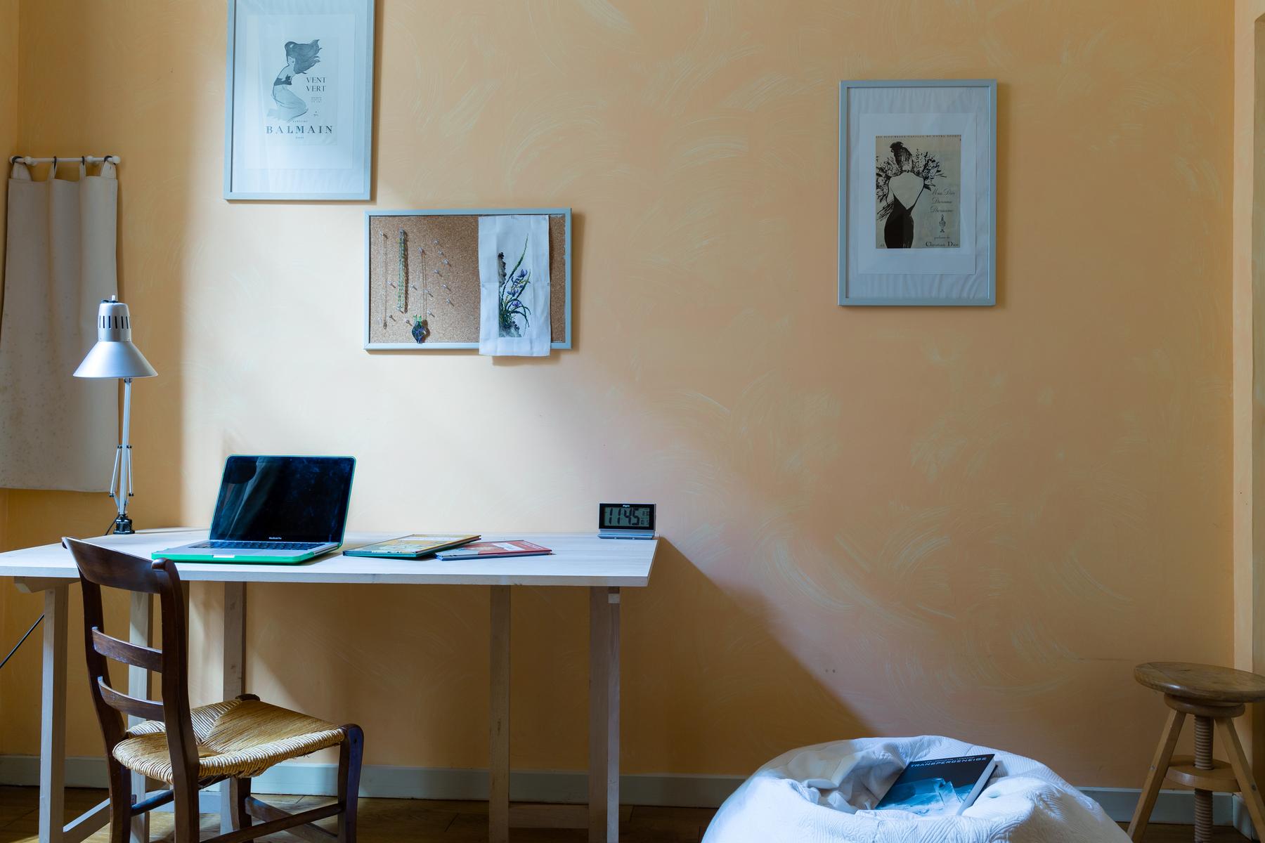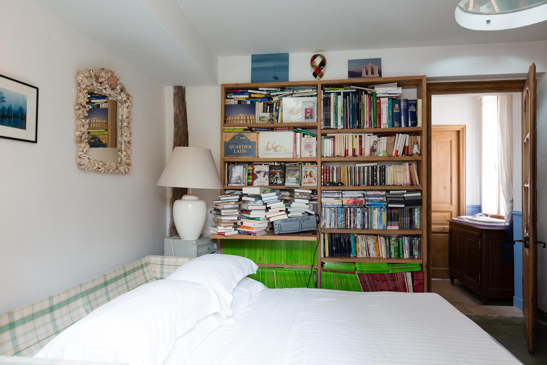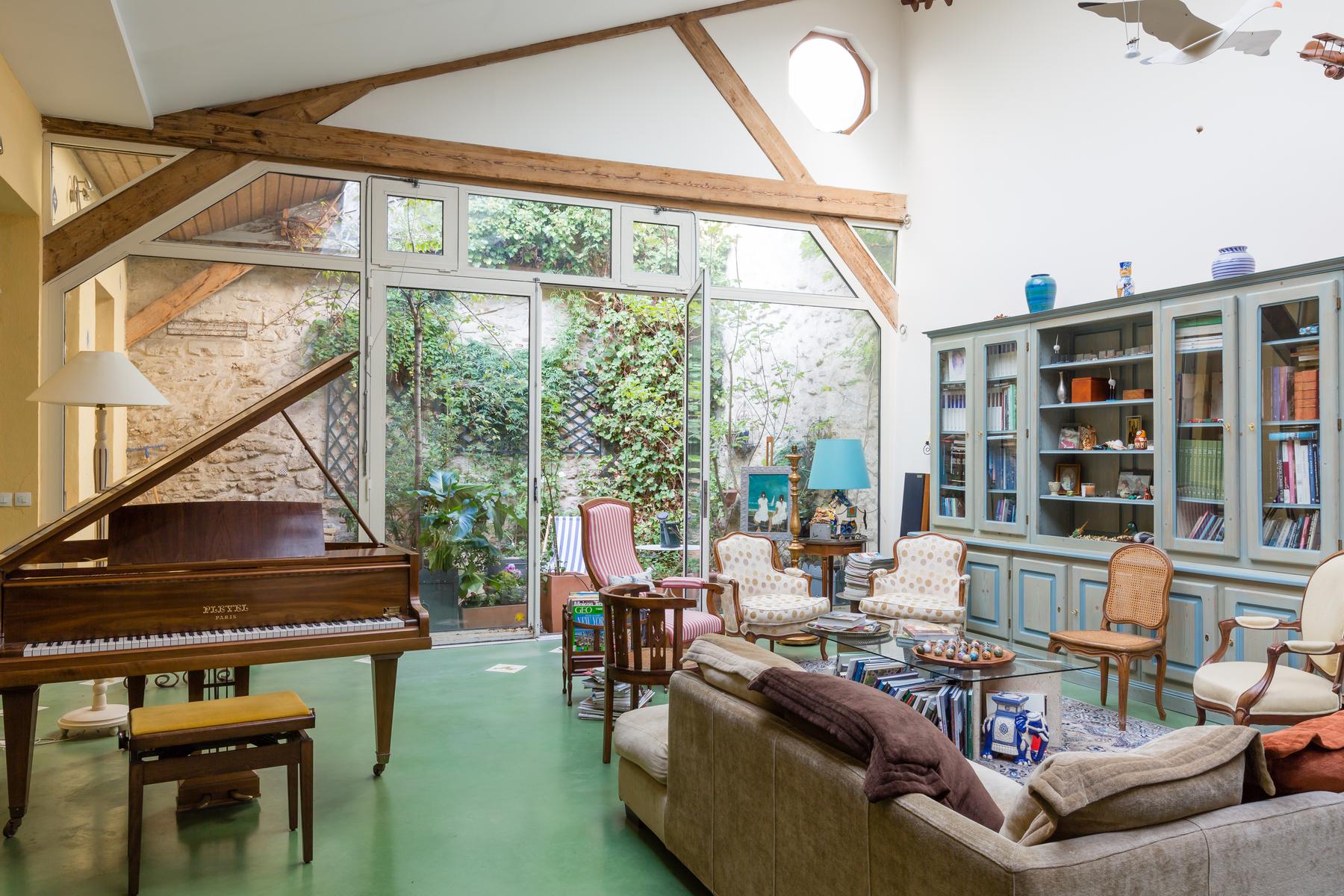 Le passé de la rue Godefroy Cavaignac est varié – c’était autrefois une fabrique de lustres à l’époque industrielle de la Bastille, et plus tard, une église évangélique a rassemblé sa congrégation dans les pièces hautes de la maison. Maintenant il est peint avec des tons vifs et il y a des pièces d’antiquités flamboyantes, y compris une immense table à manger et un joli bureau. Le salon est extraordinairement bien conçu – vous trouverez des fauteuils bien garnis et un piano à queue sous les poutres du grenier. Et l’escalier courbe mène à une mezzanine bordée de tomes.