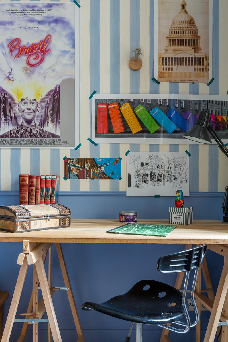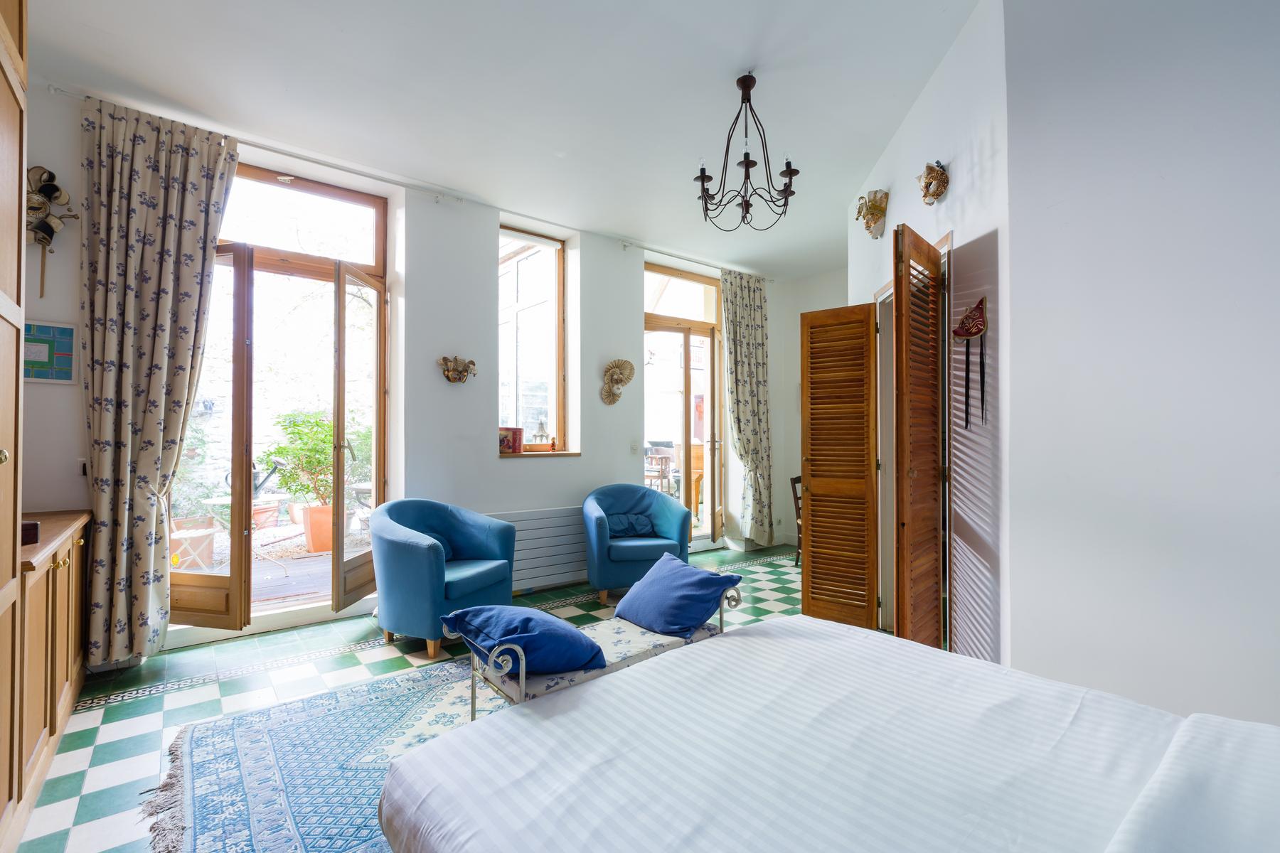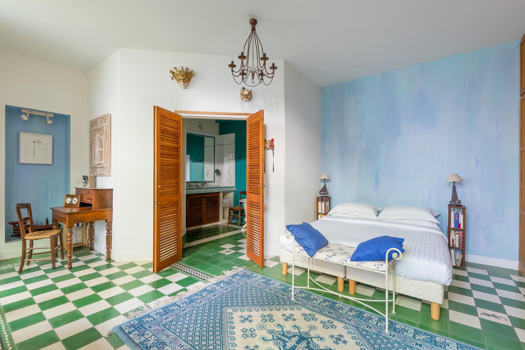 Le passé de la rue Godefroy Cavaignac est varié – c’était autrefois une fabrique de lustres à l’époque industrielle de la Bastille, et plus tard, une église évangélique a rassemblé sa congrégation dans les pièces hautes de la maison. Maintenant il est peint avec des tons vifs et il y a des pièces d’antiquités flamboyantes, y compris une immense table à manger et un joli bureau. Le salon est extraordinairement bien conçu – vous trouverez des fauteuils bien garnis et un piano à queue sous les poutres du grenier. Et l’escalier courbe mène à une mezzanine bordée de tomes.