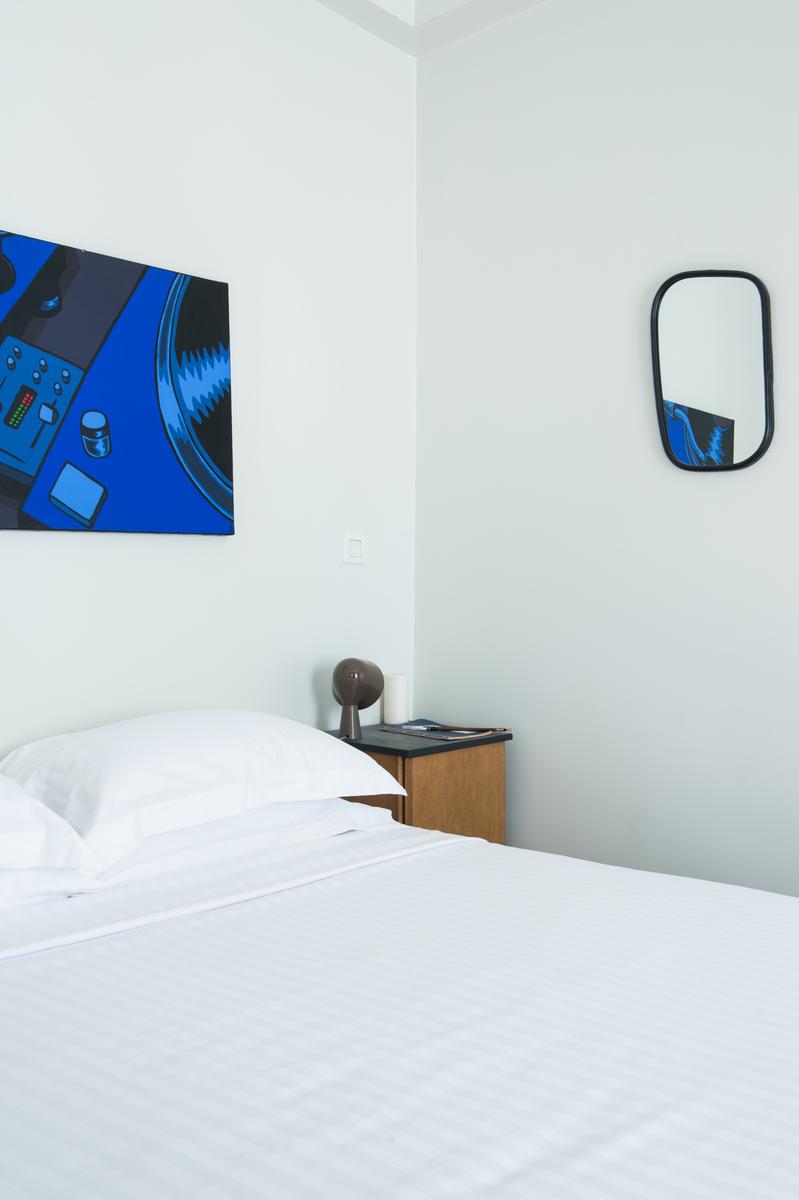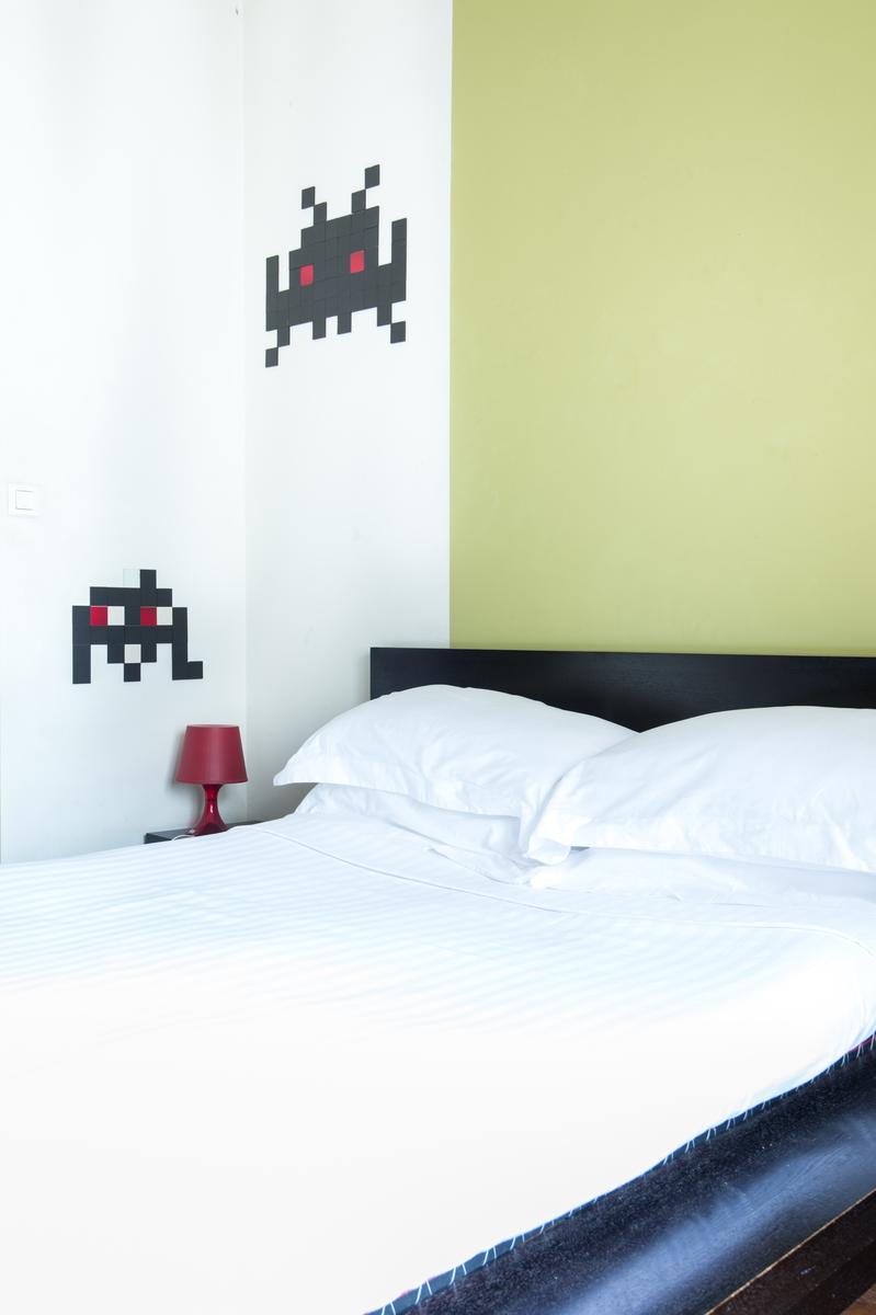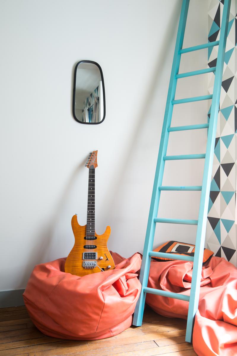 La façade ornée de cette maison fait allusion à son intérieur flamboyant. Une fois à l’intérieur, vous arriverez d’abord au rez-de-chaussée inférieur, où il y a un deuxième salon plutôt suave sur la gauche. Tout droit devant, il y a une salle de bains, une cuisine et une salle à manger accueillantes, sa table ultra-contemporaine placée sous un élégant plafond carrelé de verre. Ensuite, c’est le salon principal, qui est en partie lambrissé en vert et or, et qui possède plusieurs œuvres d’art originales, une table de billard et un piano à queue. Il y a aussi un bureau sophistiqué, ainsi qu’une terrasse éclairée par des lampadaires d’époque (découverts par les hôtes d’un marché aux antiquités).