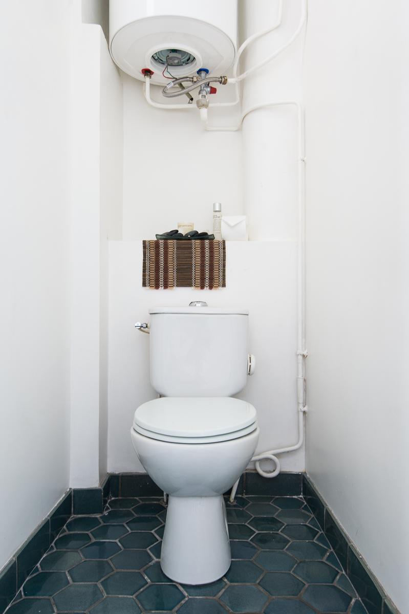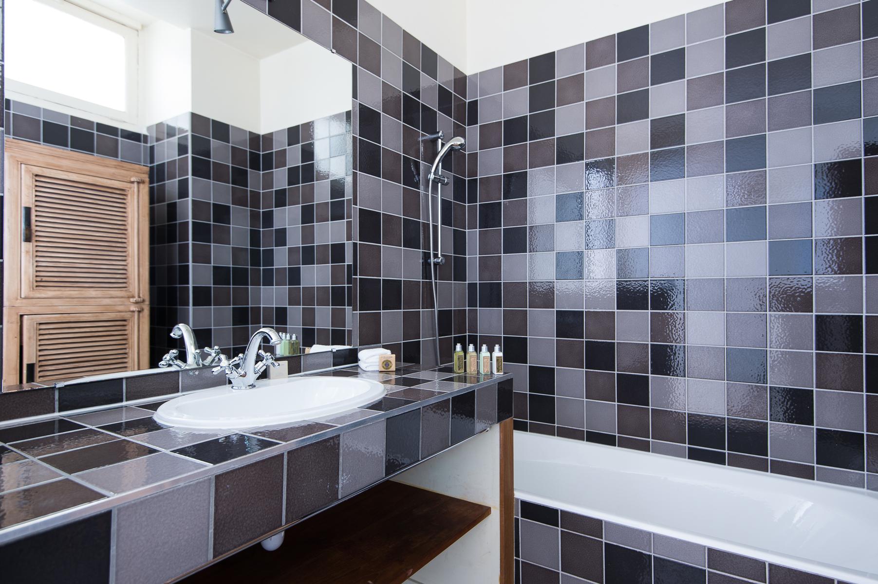 A côté du salon se trouve une salle de bains, qui mène à la deuxième chambre rouge et blanche. Au-delà, il y a une salle de toilette, puis en revenant vers l’entrée, vous arriverez à une cuisine avec des armoires rouges et un dosseret bleu. Et juste après, il y a la chambre principale. Cette salle est un lieu intrigant – plein de détails classiques, mais aussi d’œuvres d’art exotiques, d’armoires et de vases. Il dispose d’un lit queen et d’une salle de bain avec douche.