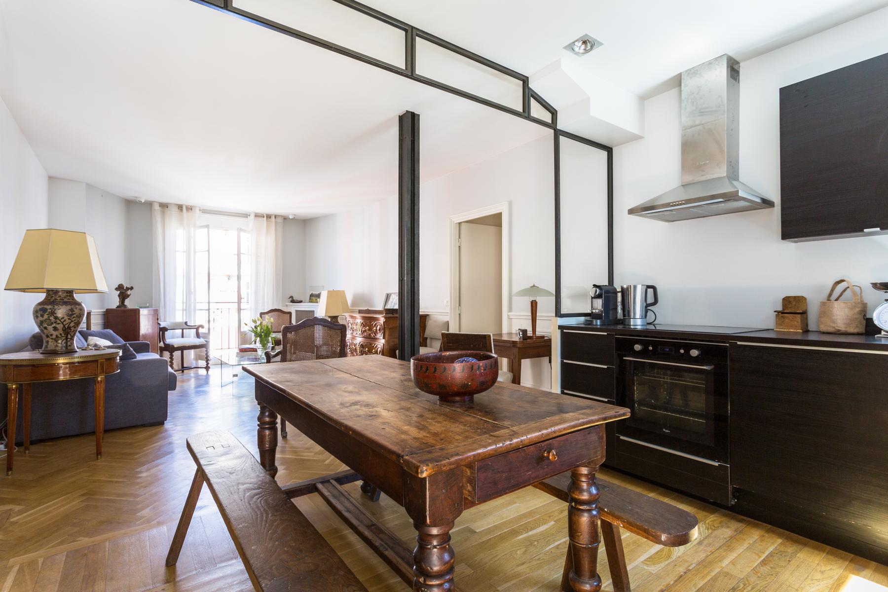 La rue Saint-Romain II est une maison de deux chambres à coucher, deux salles de bains à Saint-Germain-des-Prés. Décorée dans des couleurs subtiles, avec de beaux parquets, l’espace de vie ouvert de cette maison est meublé avec de charmantes pièces historiques – la table à manger antique de la cuisine et la poitrine sculptée du salon sont particulièrement belles. Les chambres à coucher sont toutes les deux simplement faites, le maître se distingue par sa suite soignée. La rue elle-même est calme, mais vous trouverez de nombreux cafés et restaurants locaux à proximité, et vous êtes à proximité du Bon Marche et du magnifique Jardin du Luxembourg. La station de métro Vaneau n’est qu’à deux minutes de marche d’ici.