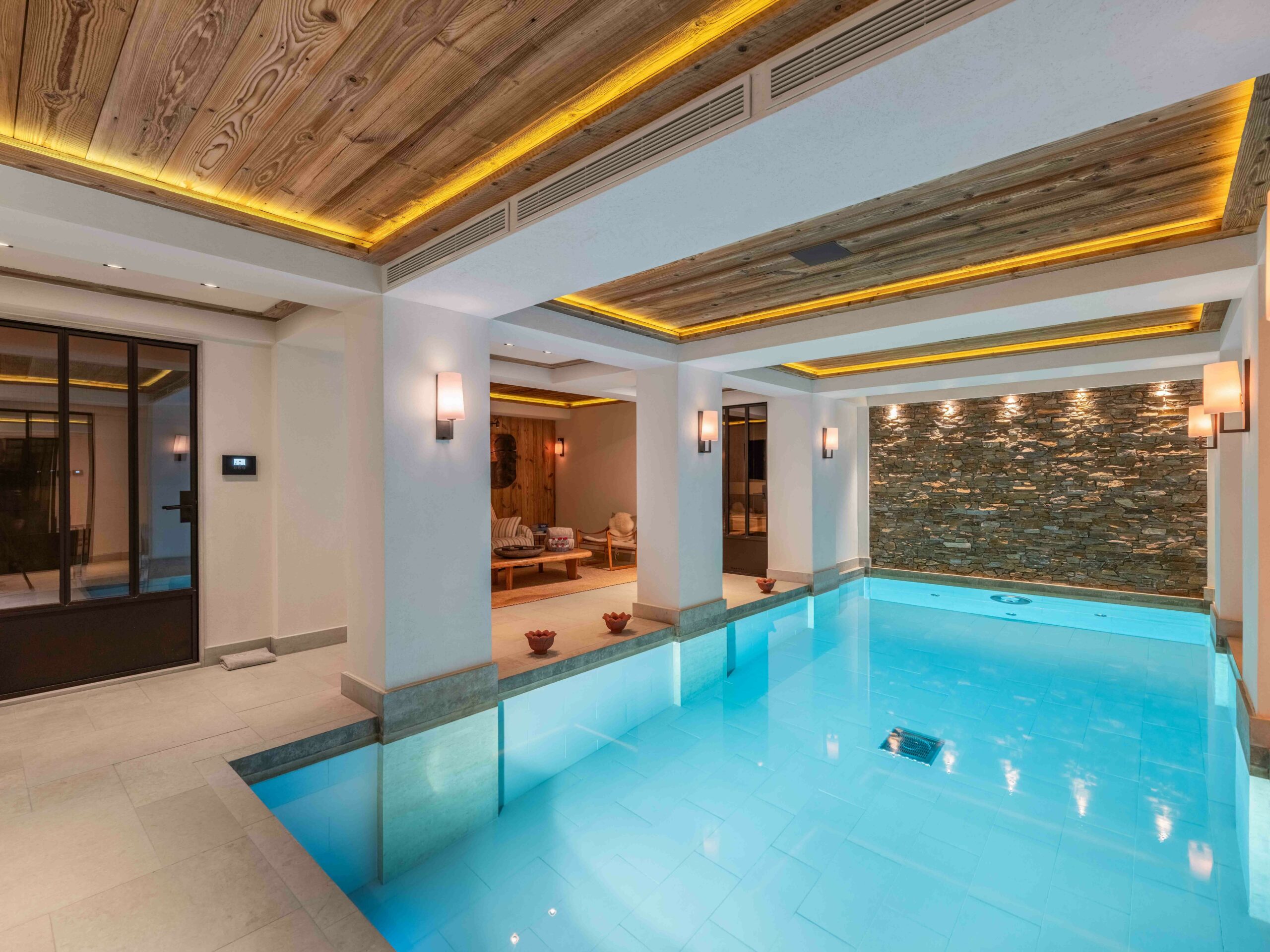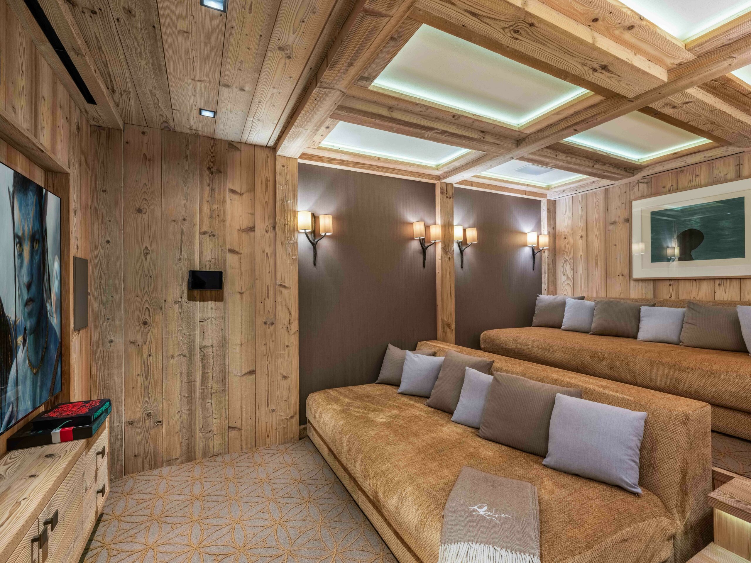 Après une journée de ski, le spa du chalet Manu devient un sanctuaire de détente. La piscine chauffée reflète la lumière douce des bougies, le hammam diffuse des senteurs d’eucalyptus, la salle de sport réveille l’énergie du corps. Plus loin, un salon de cinéma, une bibliothèque et un billard rappellent que la détente se décline aussi dans la convivialité. Tout ici respire le confort et la sérénité d’une vie alpine d’exception.