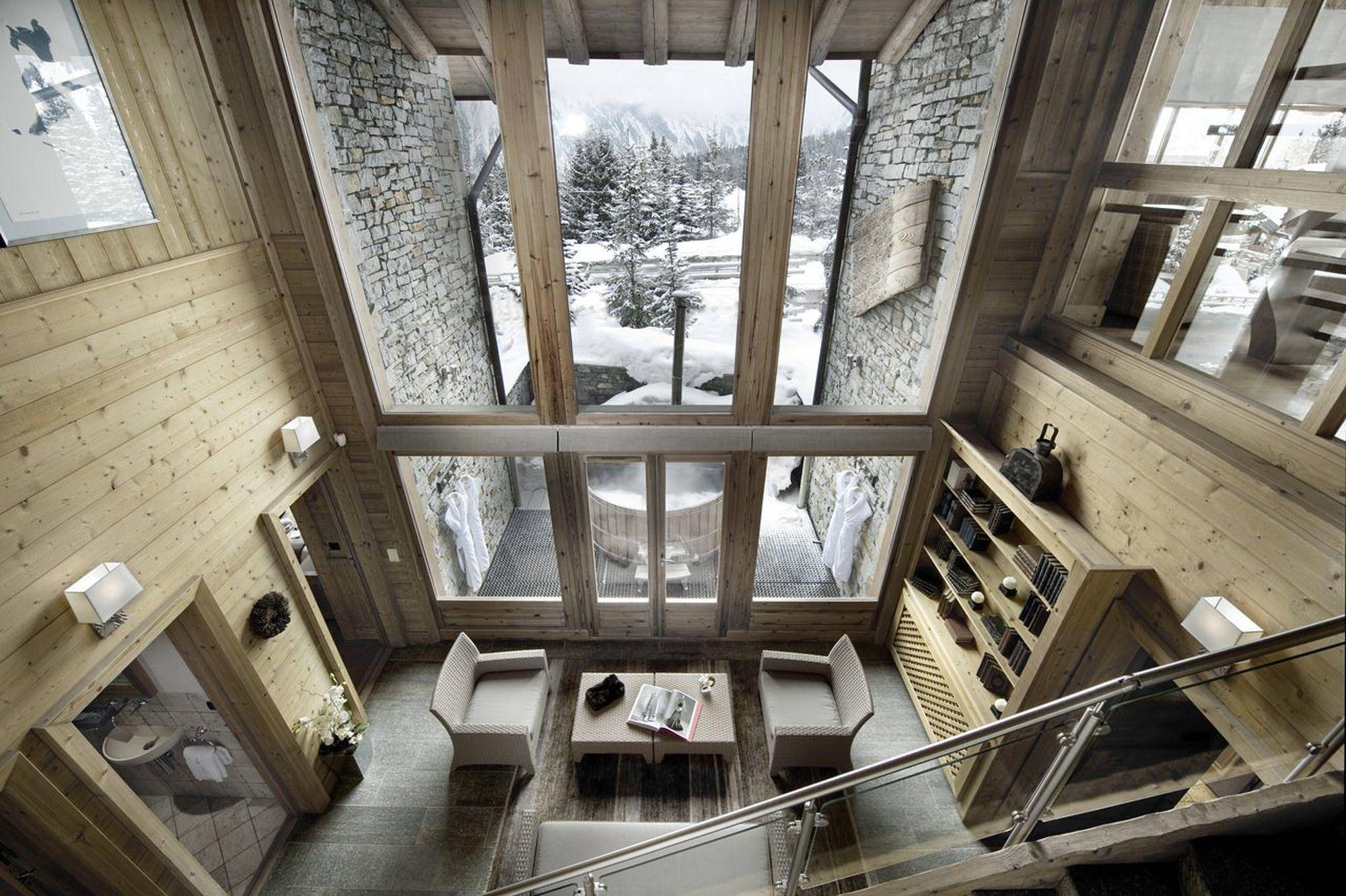 Ce chalet d’exception bordé de sapins et situé à quelques mètres des pistes. Une décoration chaleureuse avec sa cheminée centrale au beau milieu de cette belle pièce de vie salon, salle à manger. Un équipement de loisir et de sport que l’on apprécie après une journée de ski.